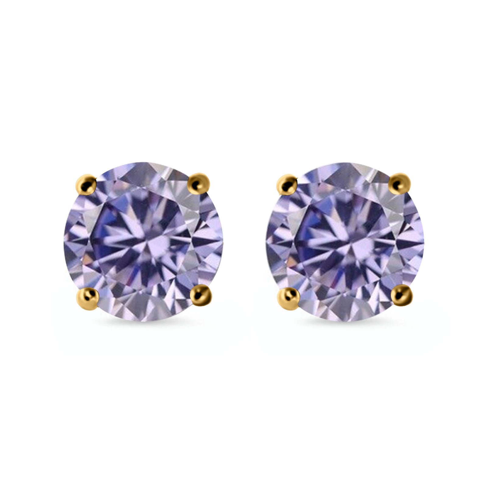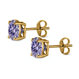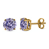 Stud Earrings Round Simulated Cubic Zirconia 925 Sterling Silver (3mm-12mm)