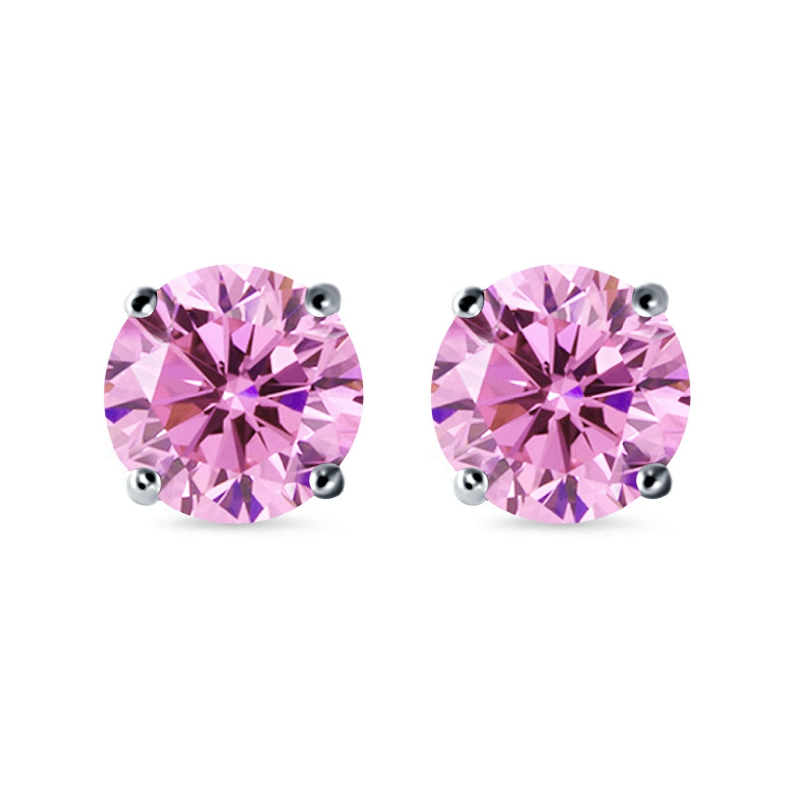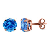 Stud Earrings Round Simulated Cubic Zirconia 925 Sterling Silver (3mm-12mm)