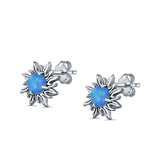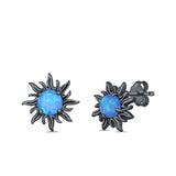 Sun Stud Earrings Lab Created Opal 925 Sterling Silver (14mm)