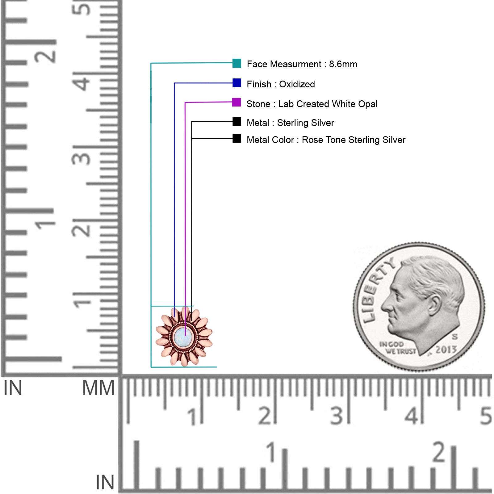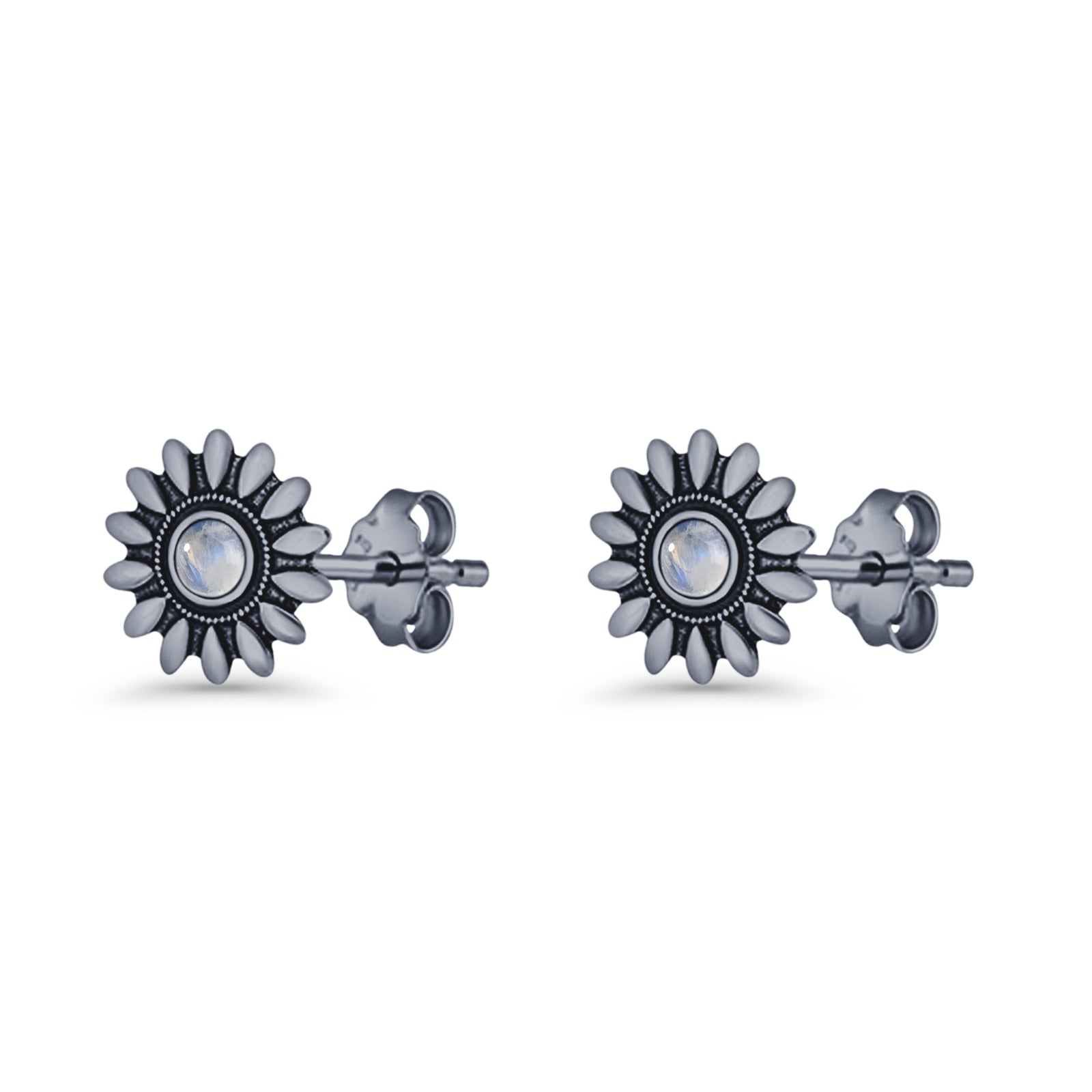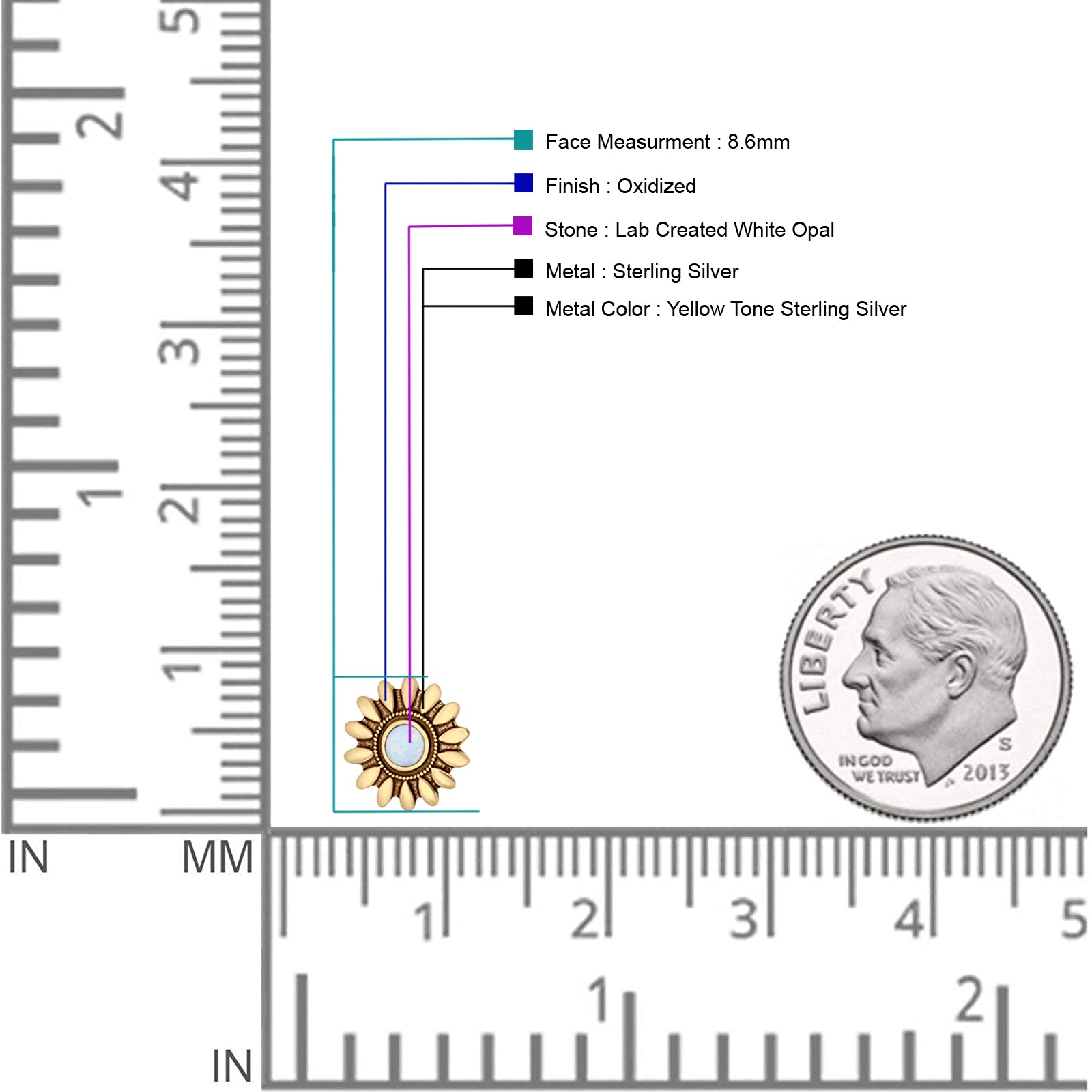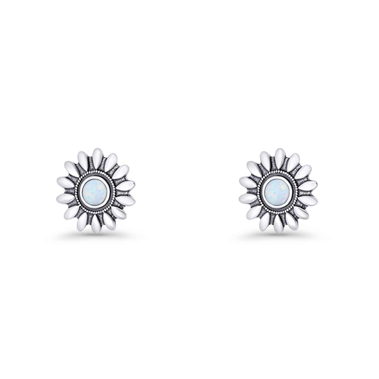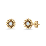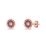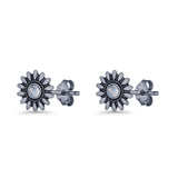 Sunflower Stud Earring 8.6mm Lab Created Opal Oxidized 925 Sterling Silver