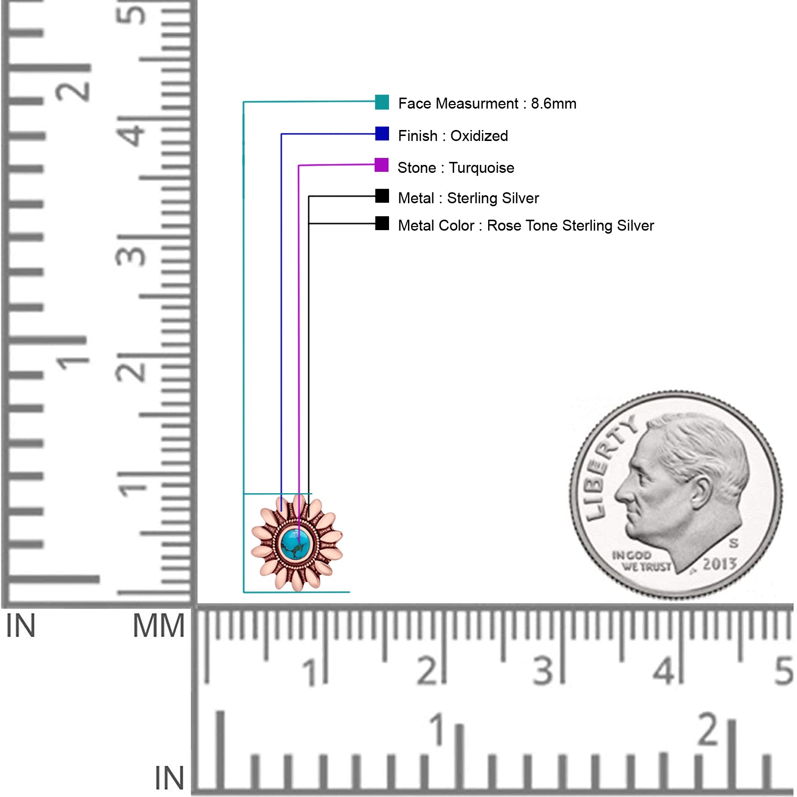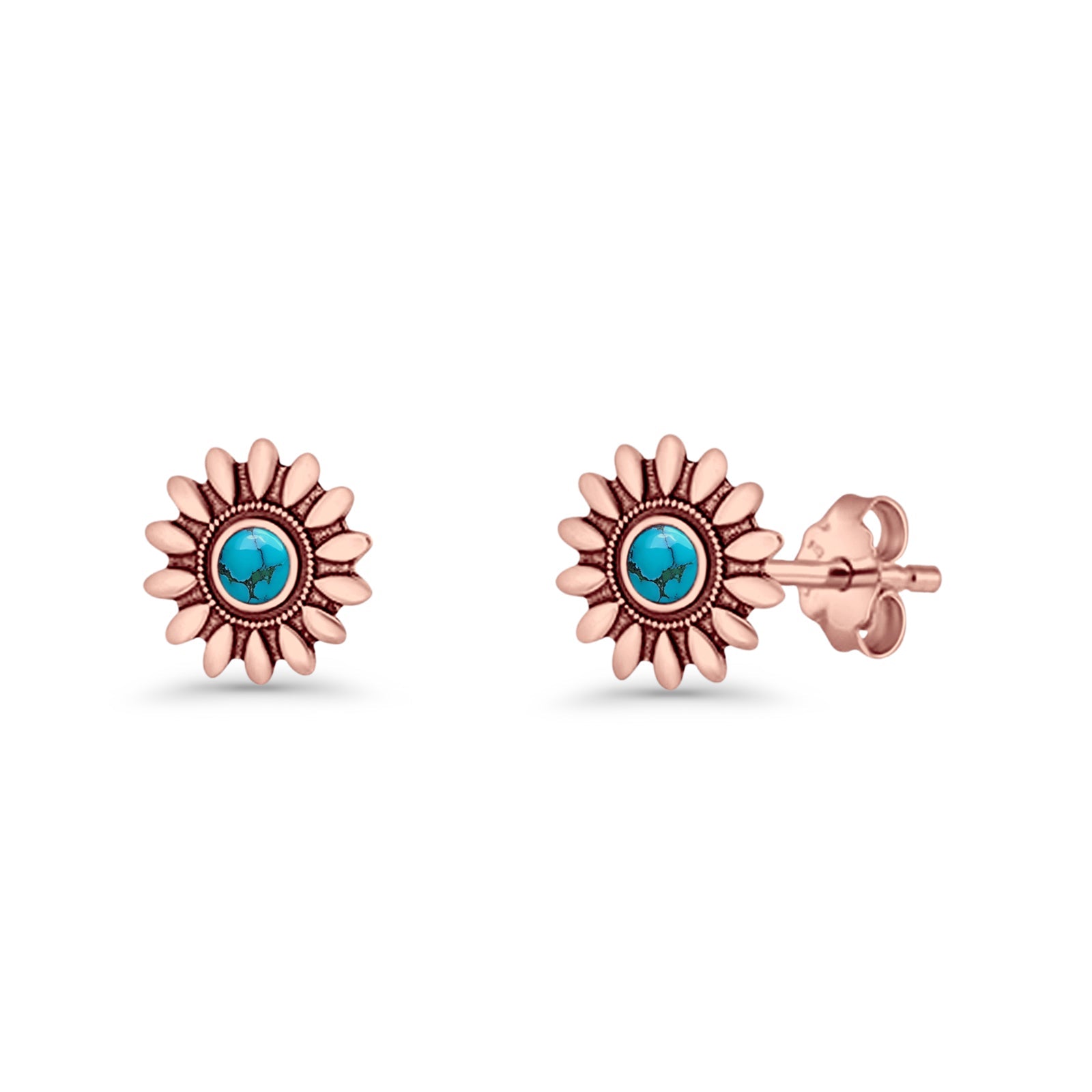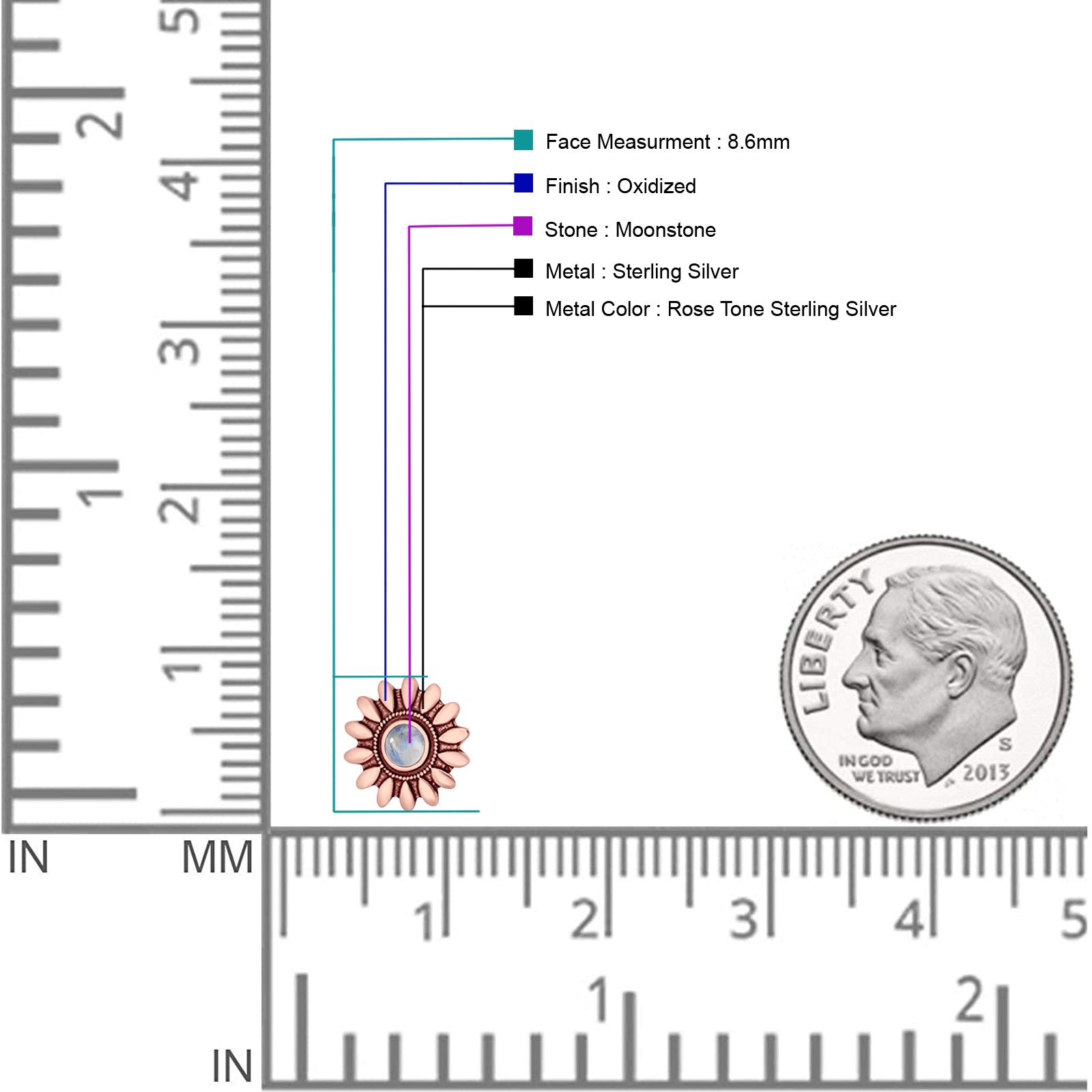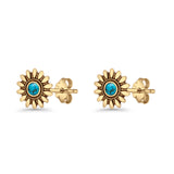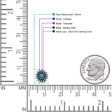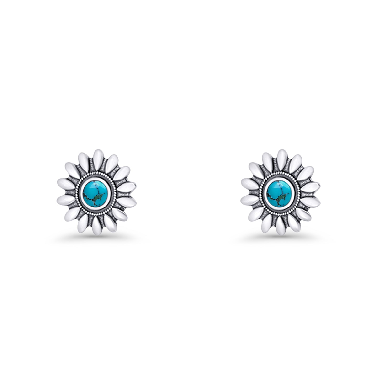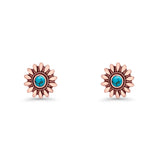 Sunflower Stud Earring 8.6mm Lab Created Opal Oxidized 925 Sterling Silver