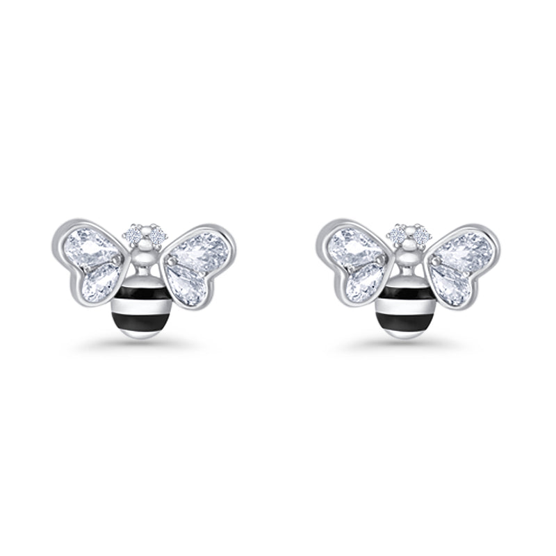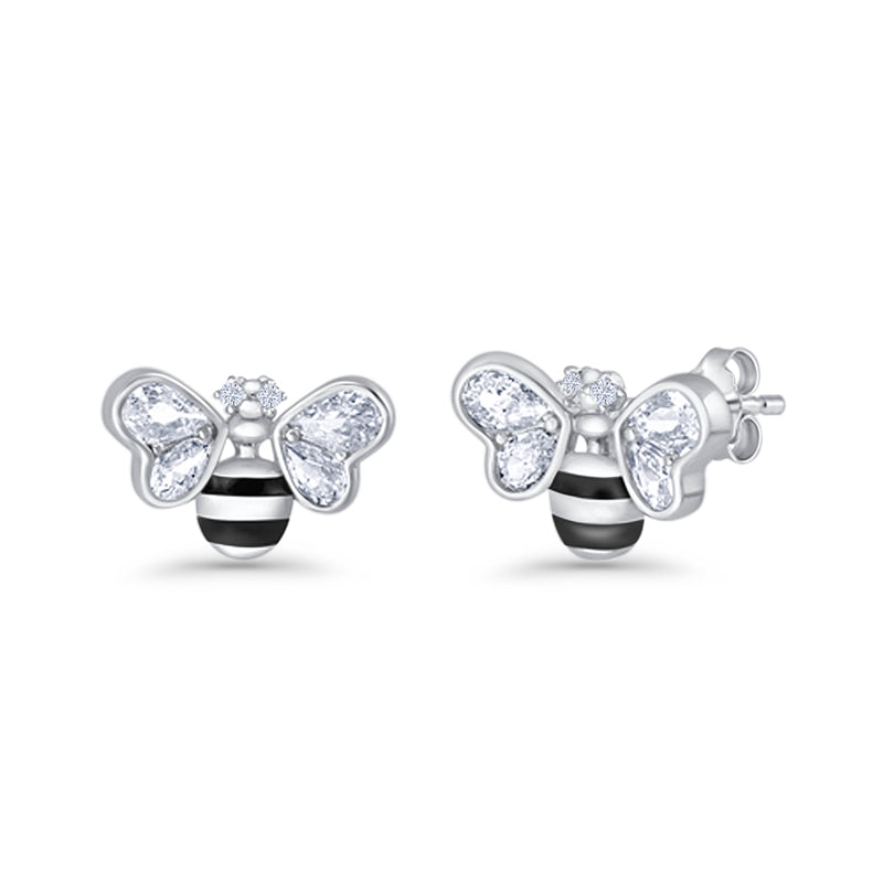 Item Specifications: Metal Type: Sterling Silver.Metal Stamp or Hallmark: .925Metal Purity: 92.5% Sterling.Gemstone Creation Method: Lab CreatedFace Measurements From South To North: 10mm(0.39").Earring Type: Oxidized Stud Earring. Design: Bee Butterfly CZ Stud Earring.