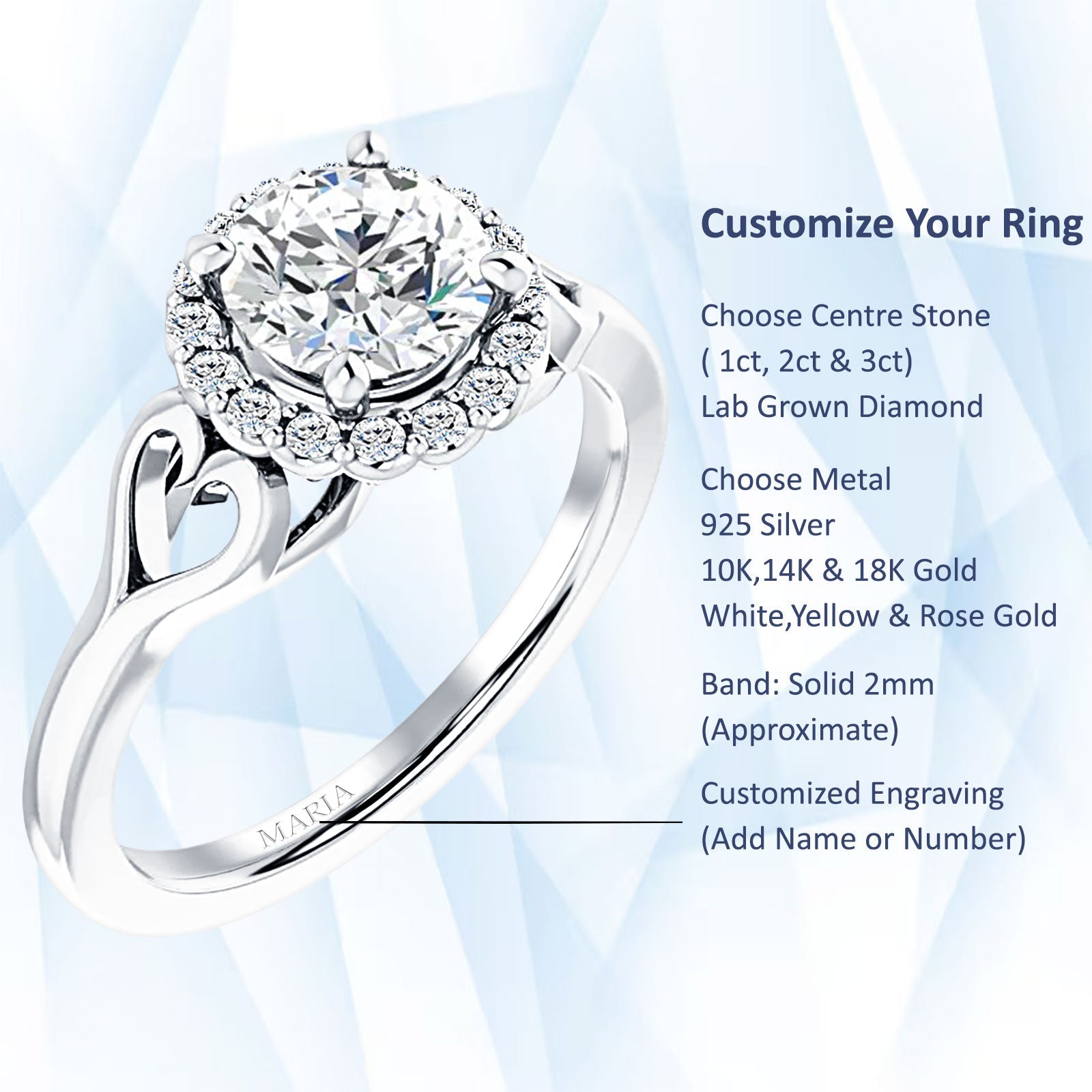 This lab grown diamond ring is available in three different carat weights and also comes in a choice of various metal types.(Tarnish Resistant Sterling Silver, 10K Gold & 18K Gold)