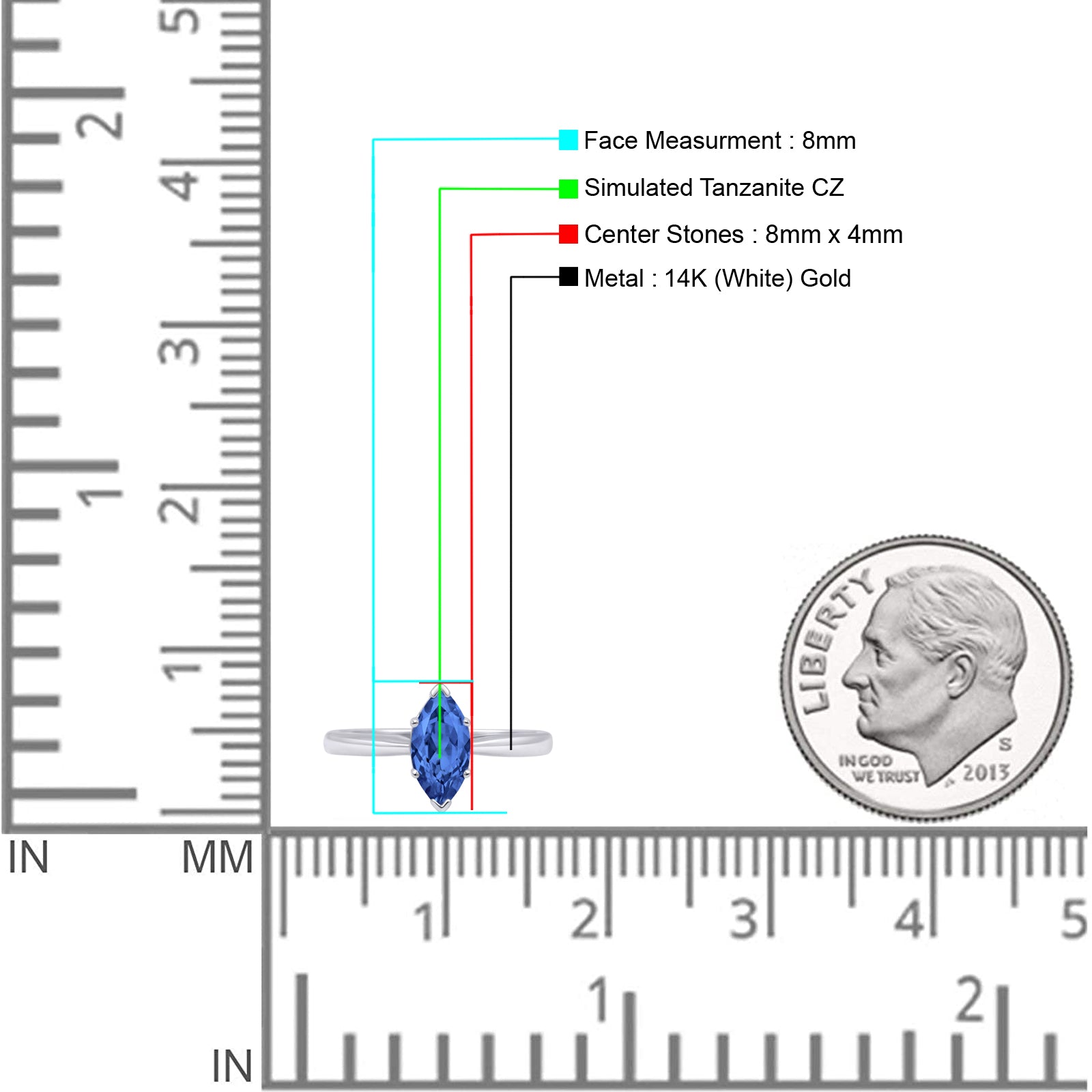Tanzanite CZ 14K White Gold