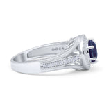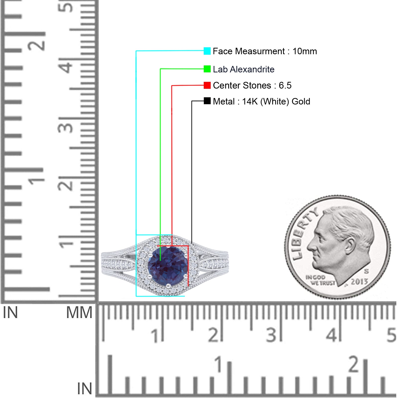 14K White Gold Art Deco Round Halo Split Shank Lab Alexandrite Bridal Ring