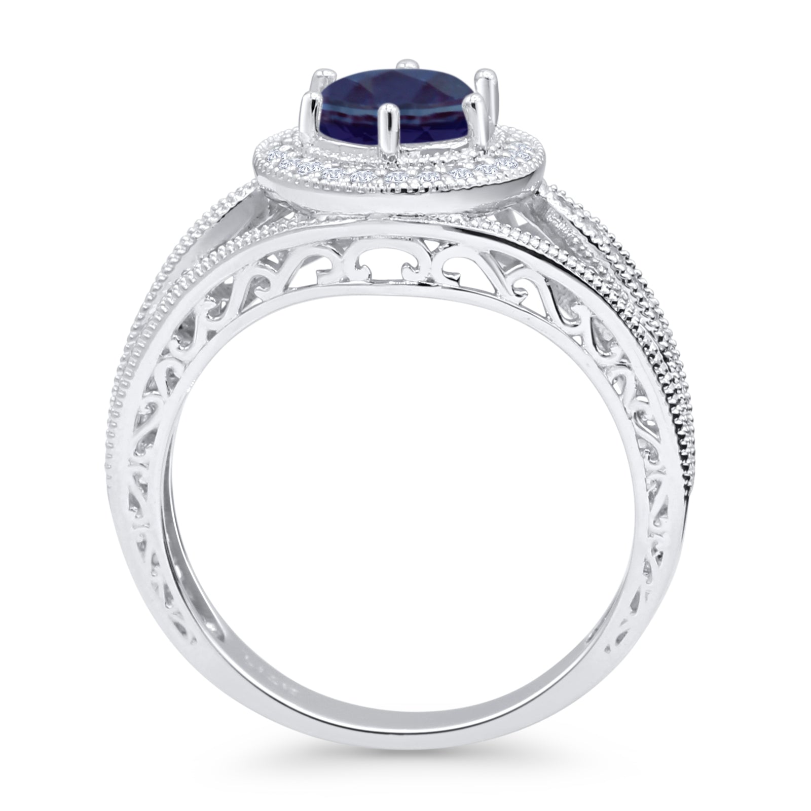 14K White Gold Art Deco Round Halo Split Shank Lab Alexandrite Bridal Ring