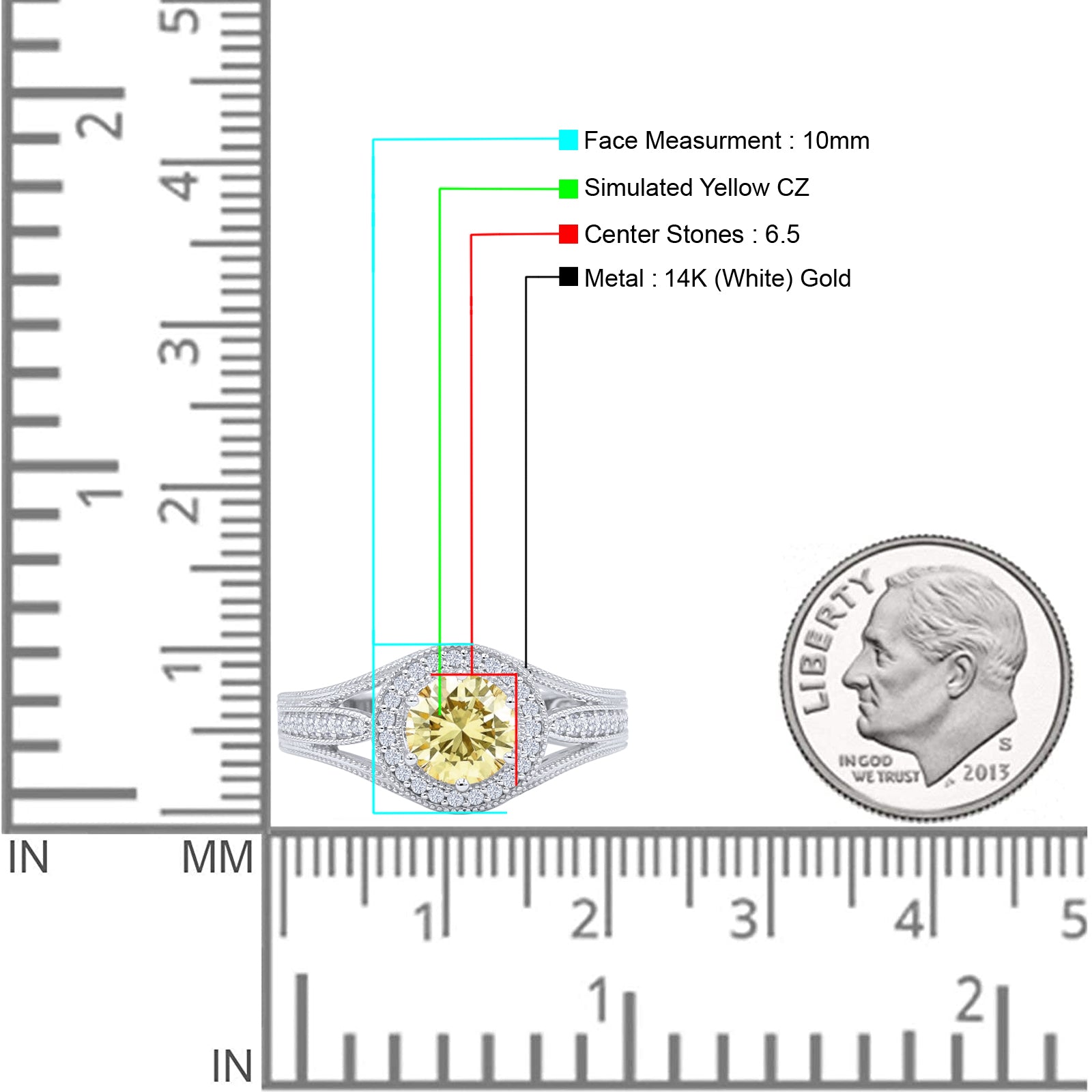 Yellow CZ 14K White Gold