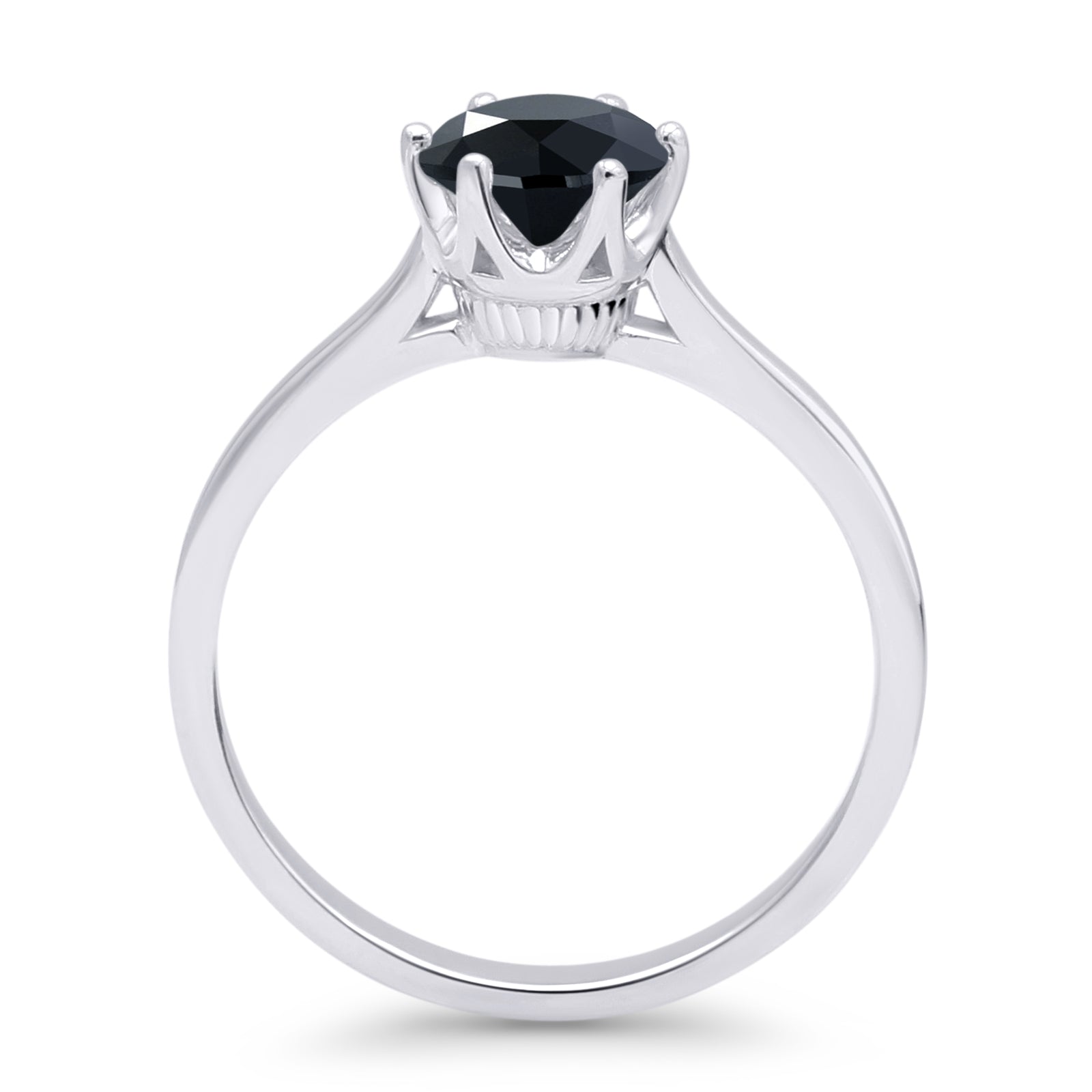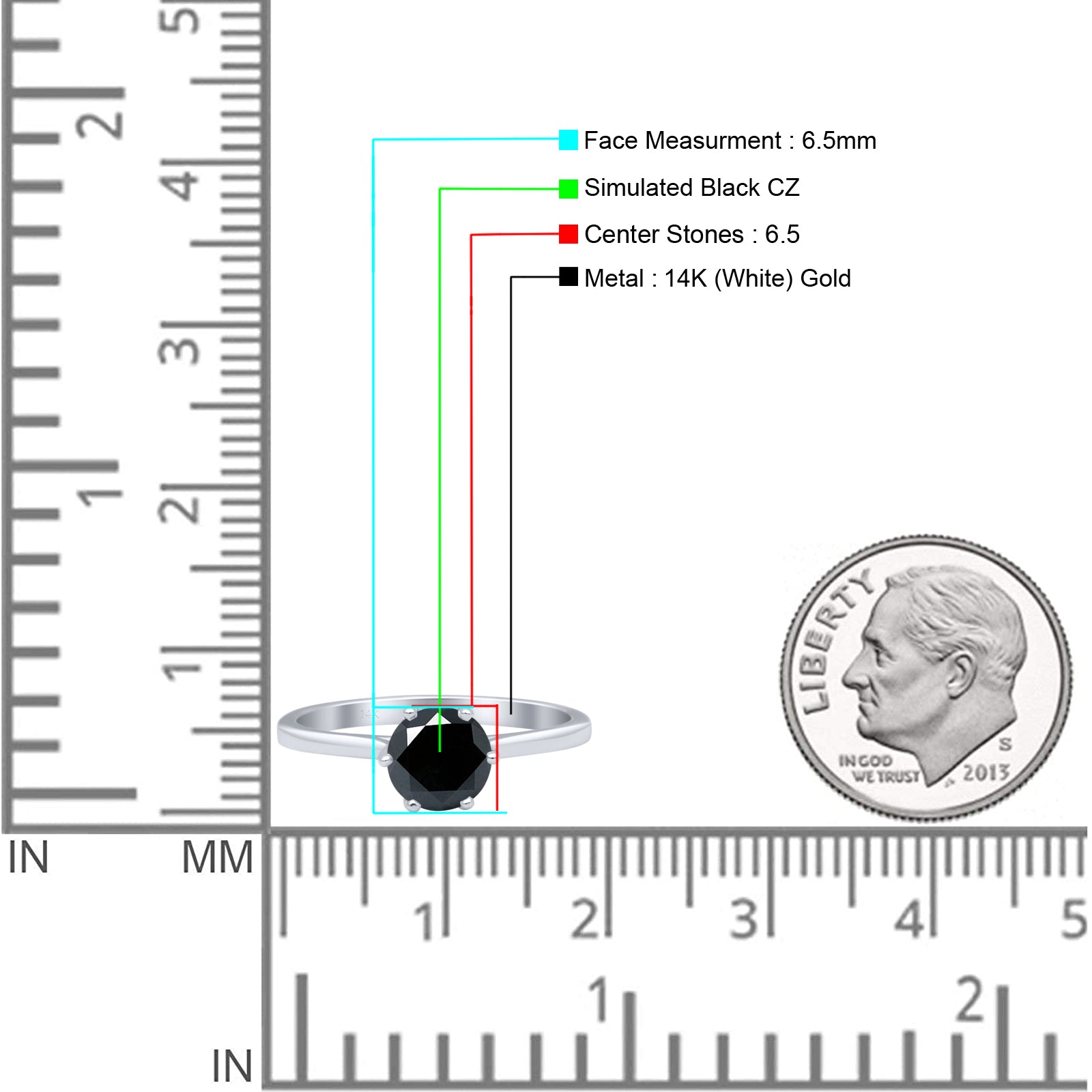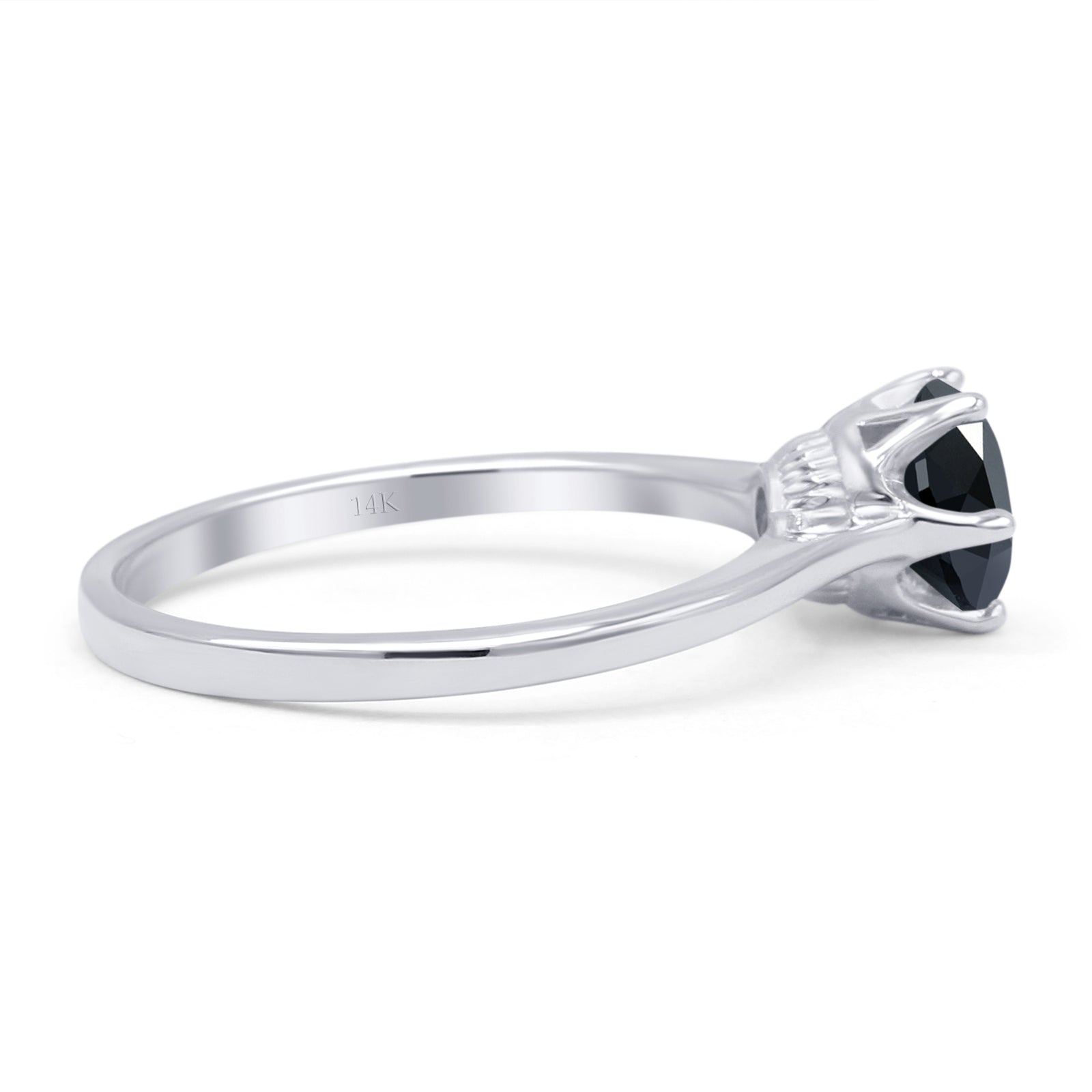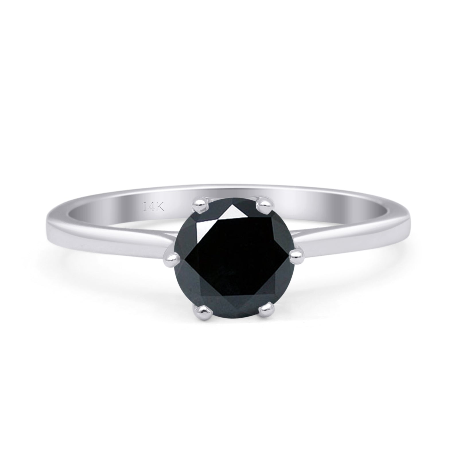 14K White Gold Art Deco Round Solitaire Black CZ Vintage Style Ring