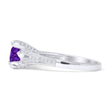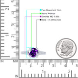 14K White Gold Round Natural Amethyst Split Shank Diamond Ring