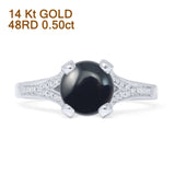 14K White Gold Round Natural Black Onyx Split Shank Diamond Ring