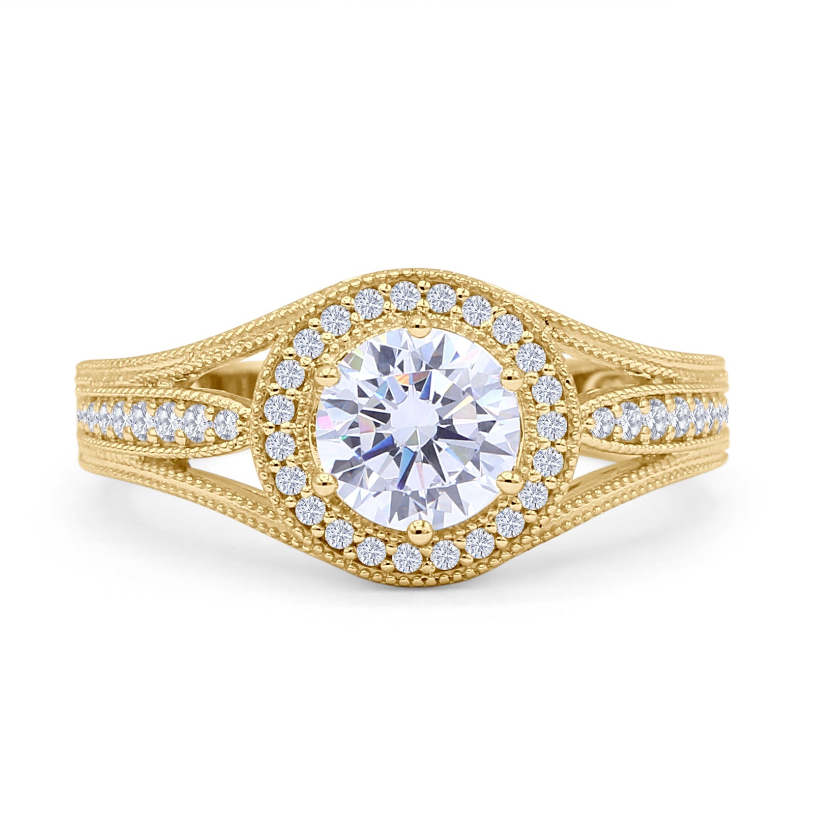 Ring Type: Round Halo Split Shank Beaded Designer Ring.