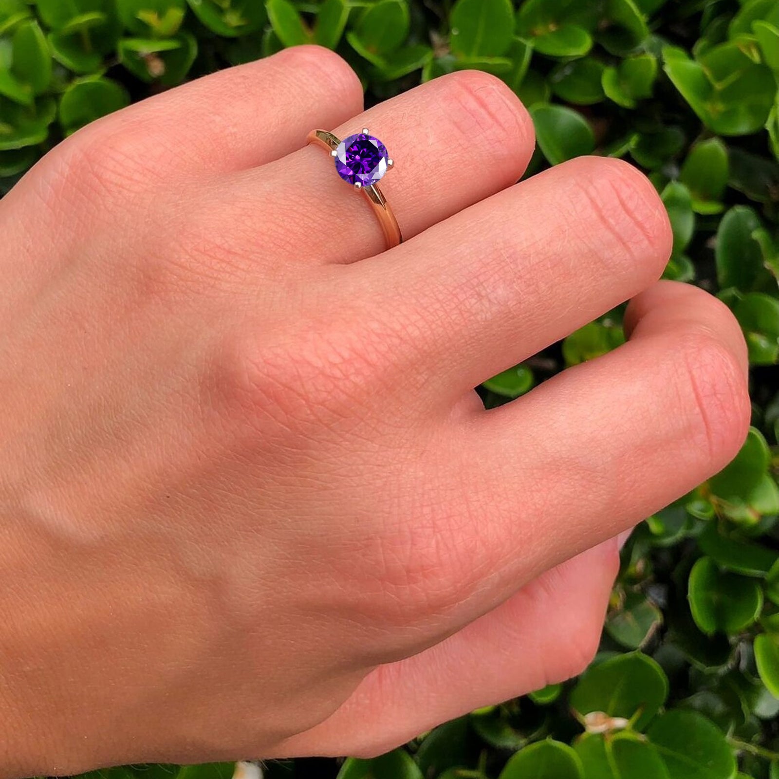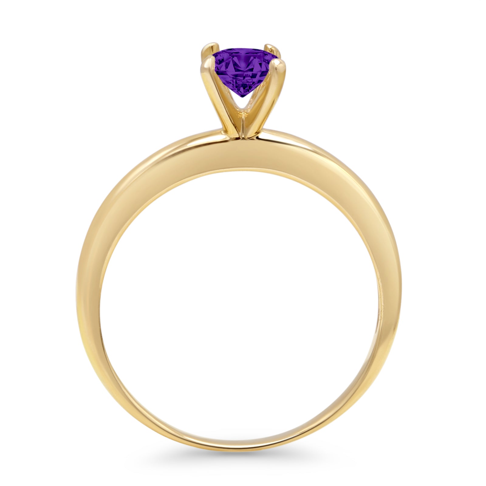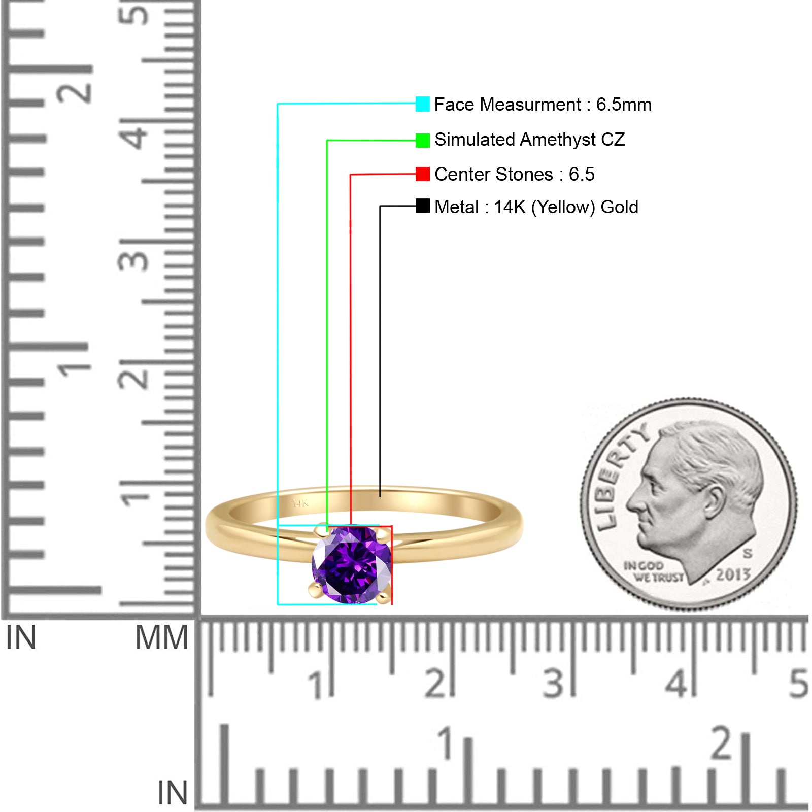 14K Yellow Gold Minimalist Round Amethyst CZ Solitaire Ring