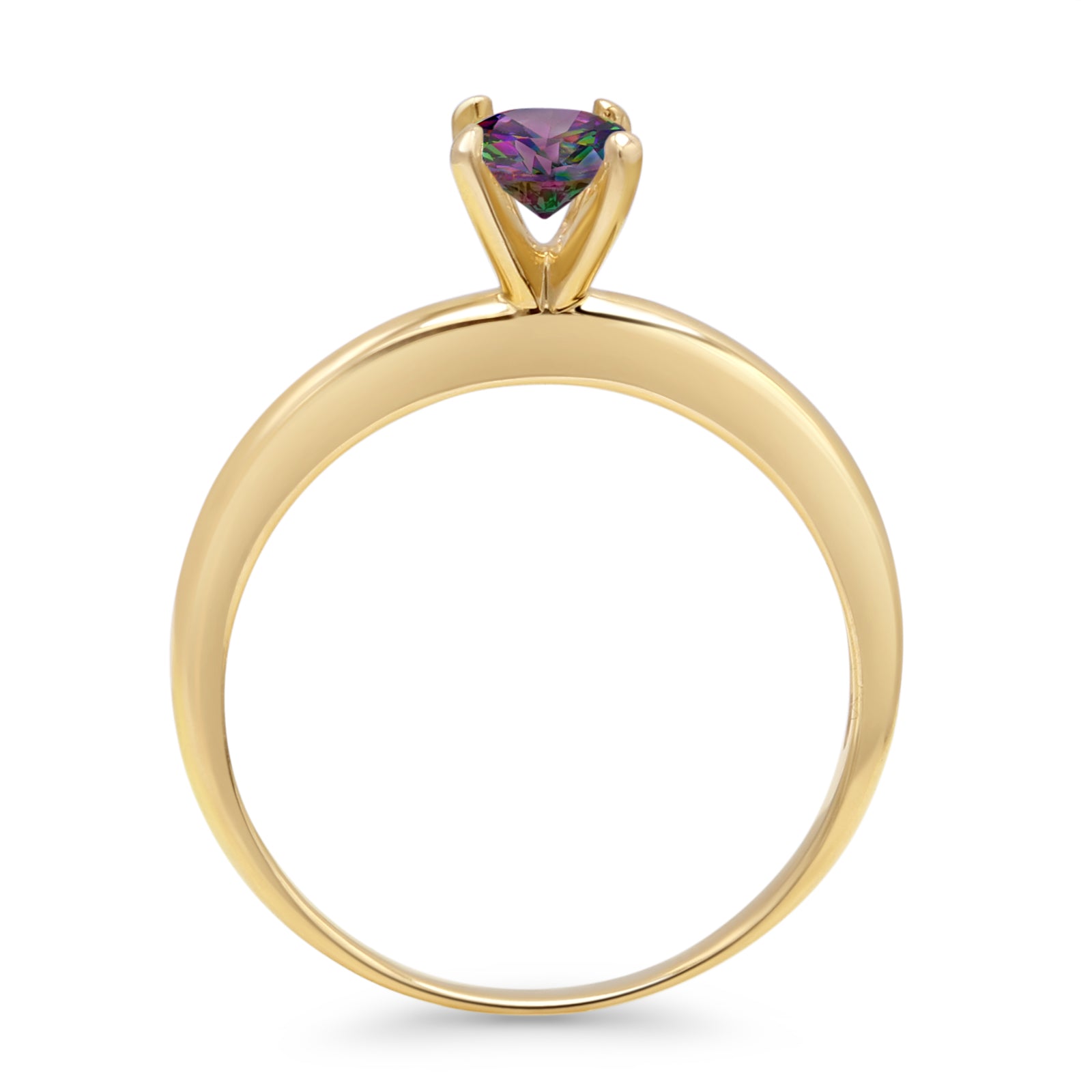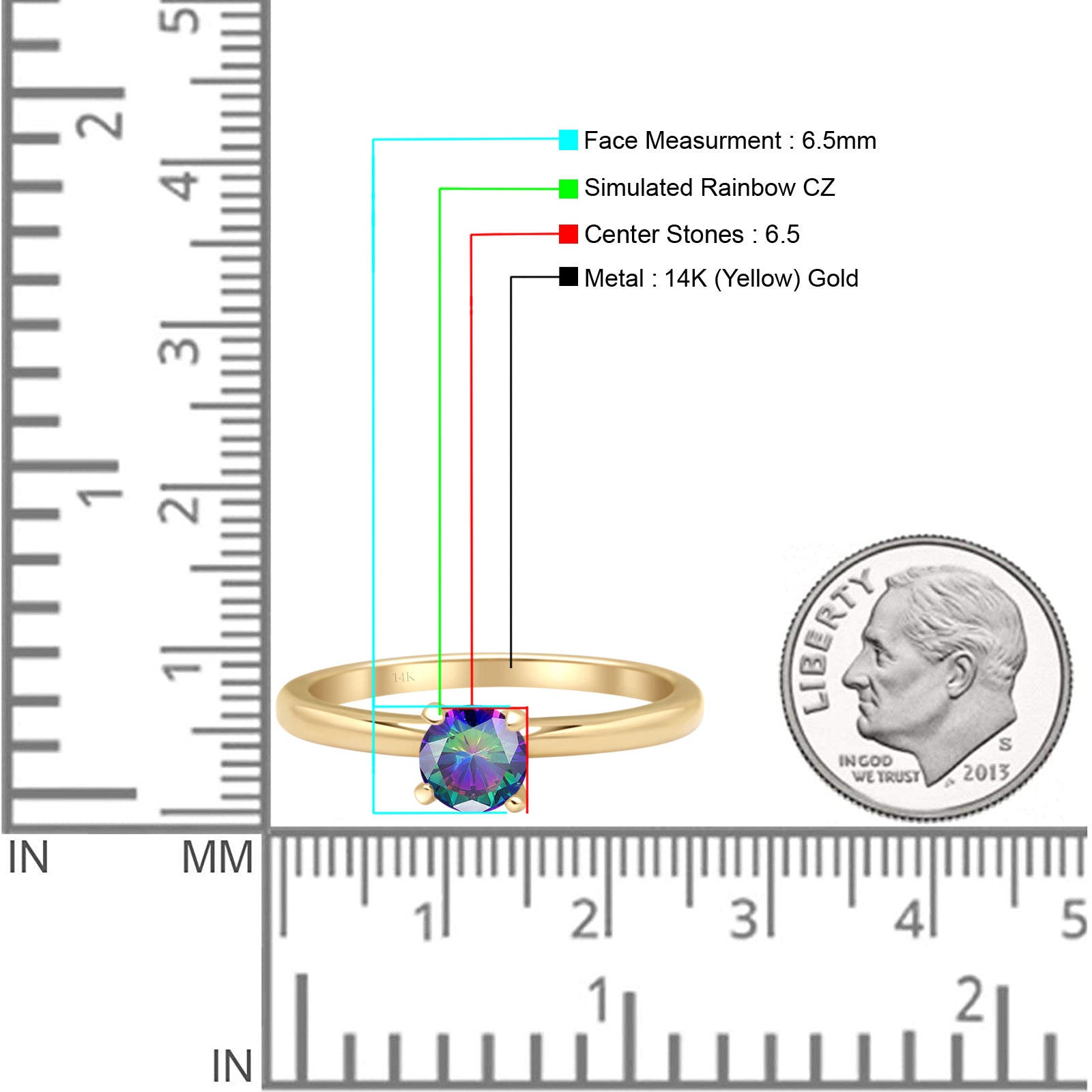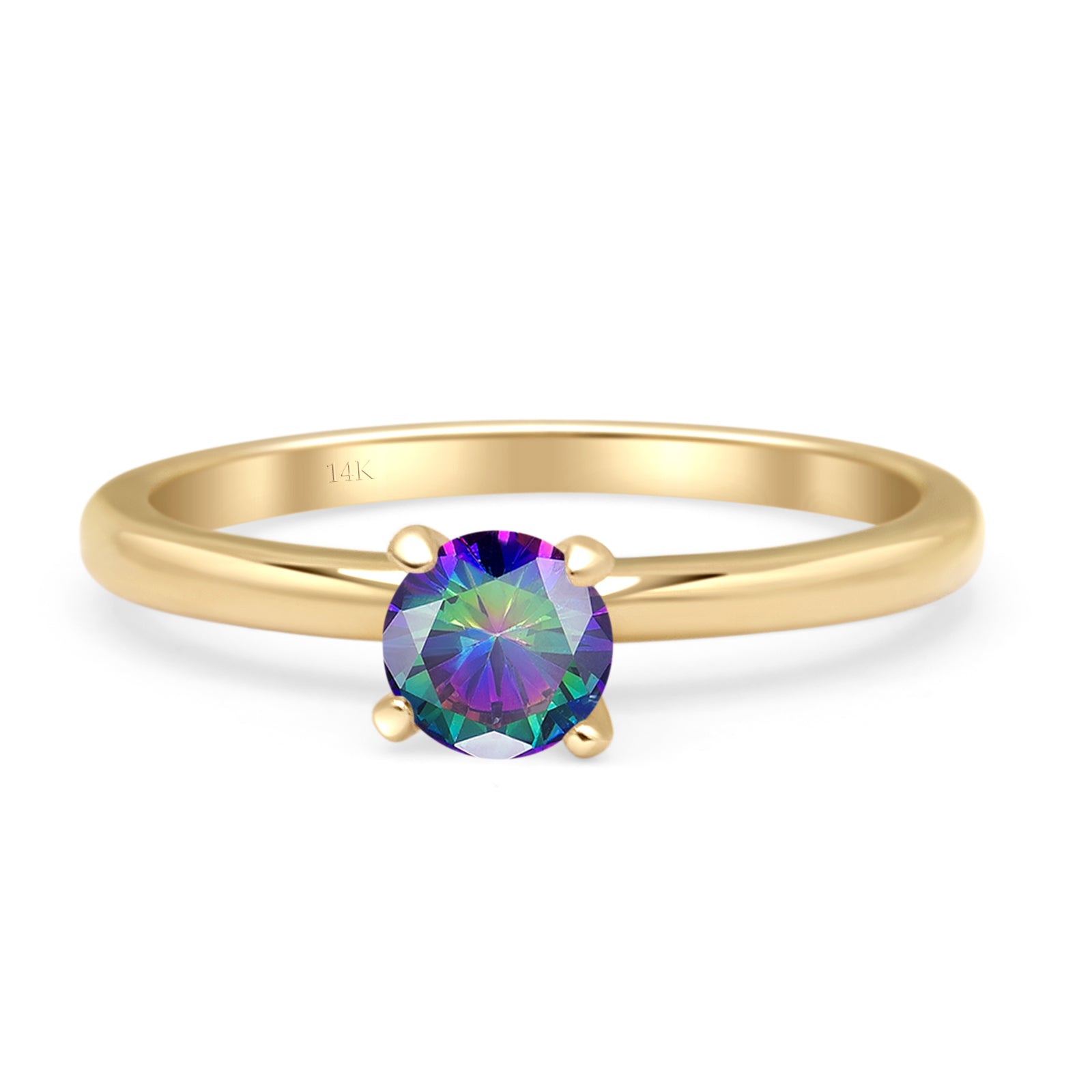 14K Yellow Gold Minimalist Round Rainbow CZ Solitaire Ring