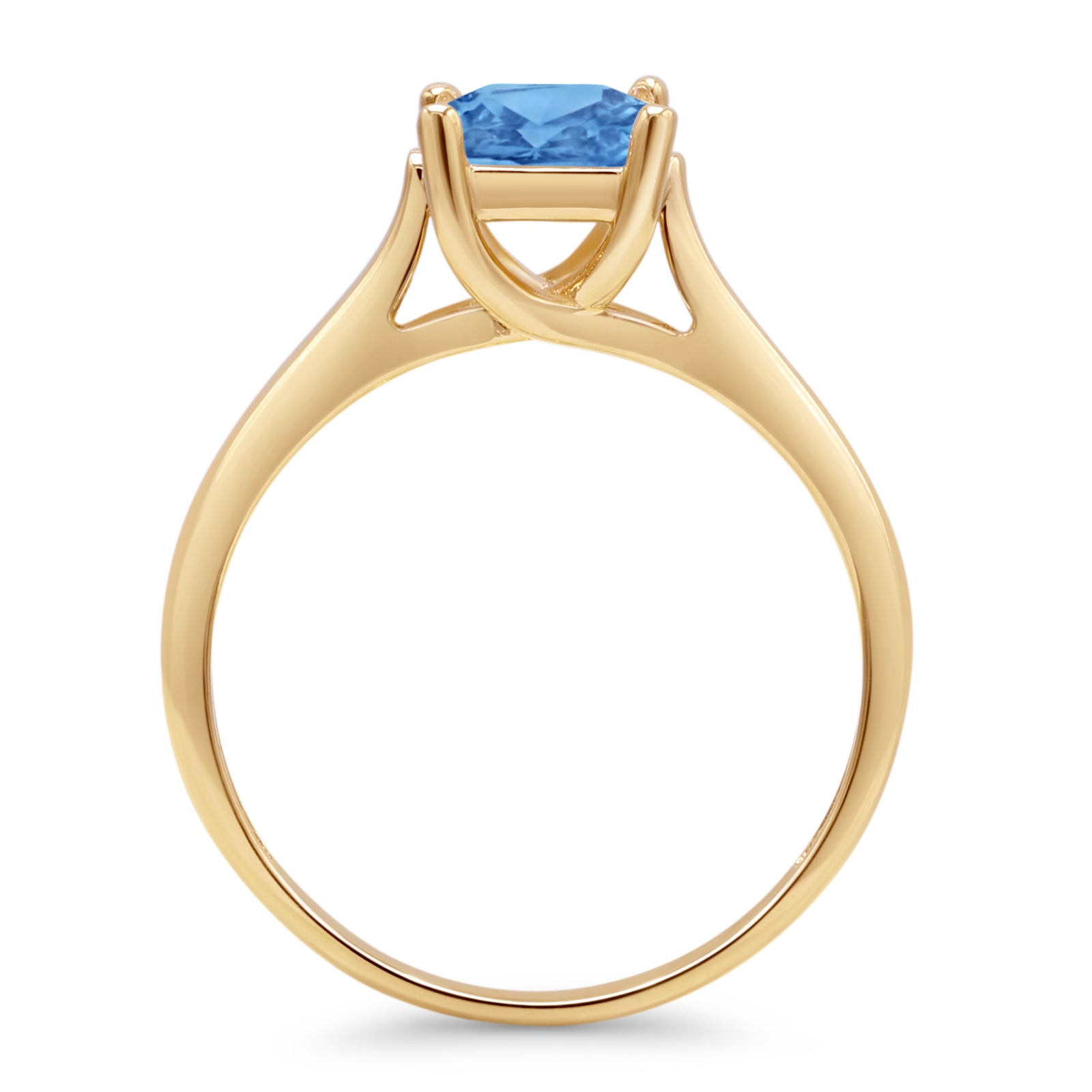 14K Yellow Gold Princess Cut Blue Topaz CZ Solitaire Ring