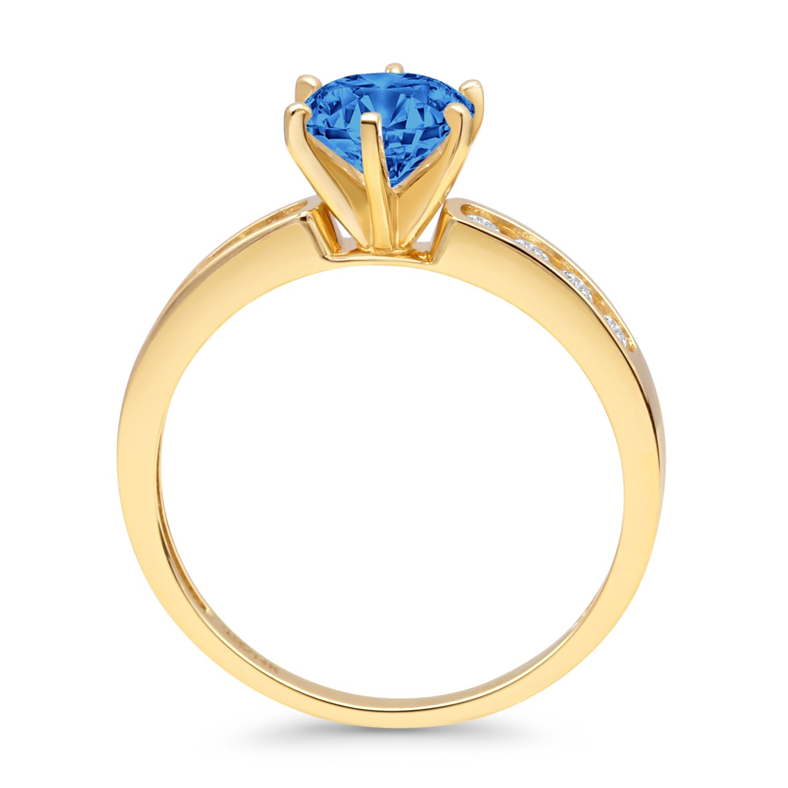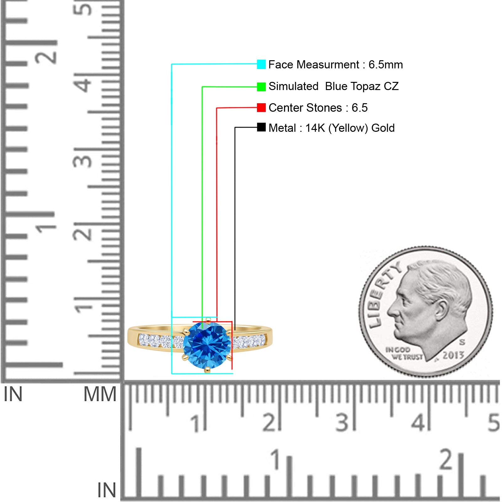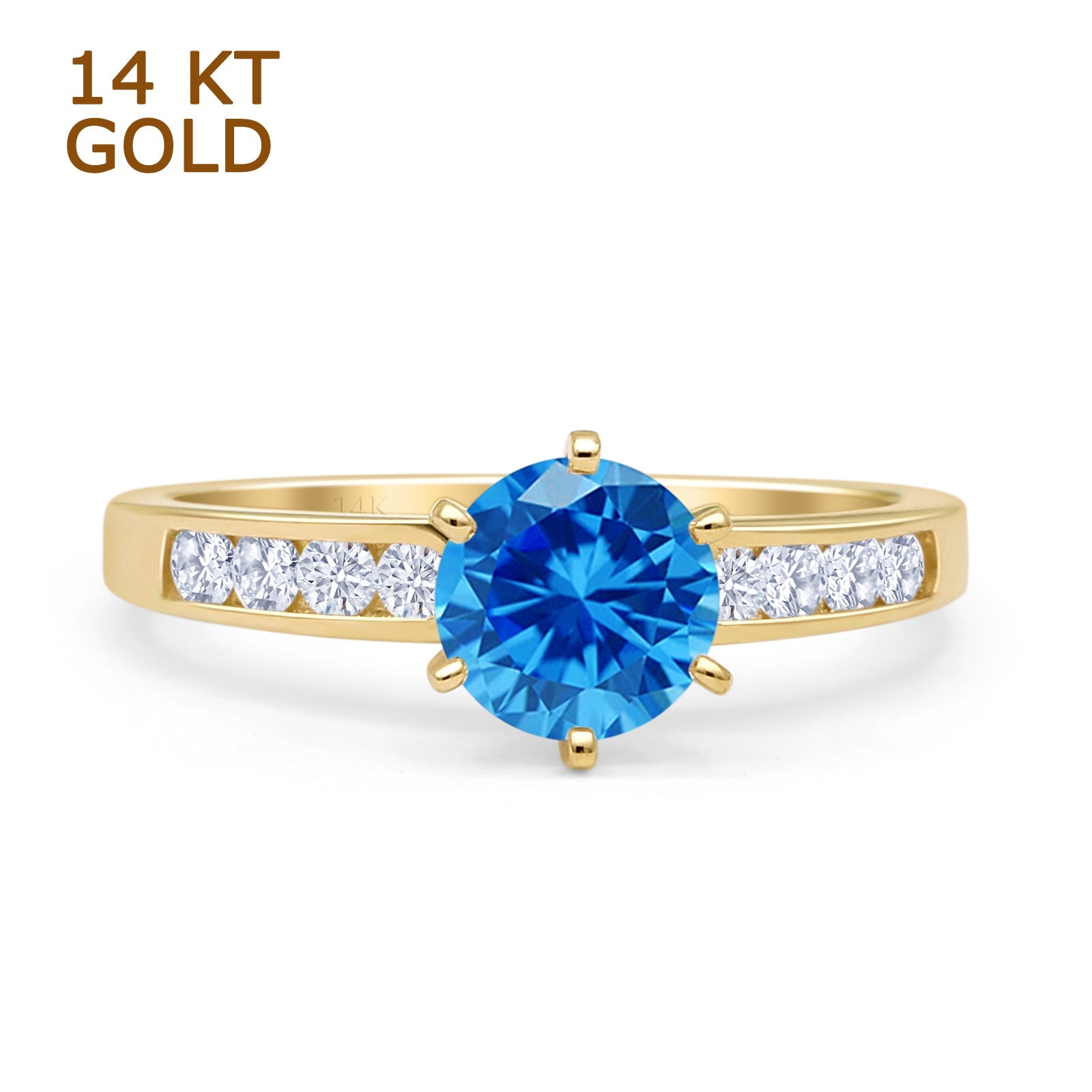 14K Yellow Gold Round Blue Topaz CZ Cathedral Ring