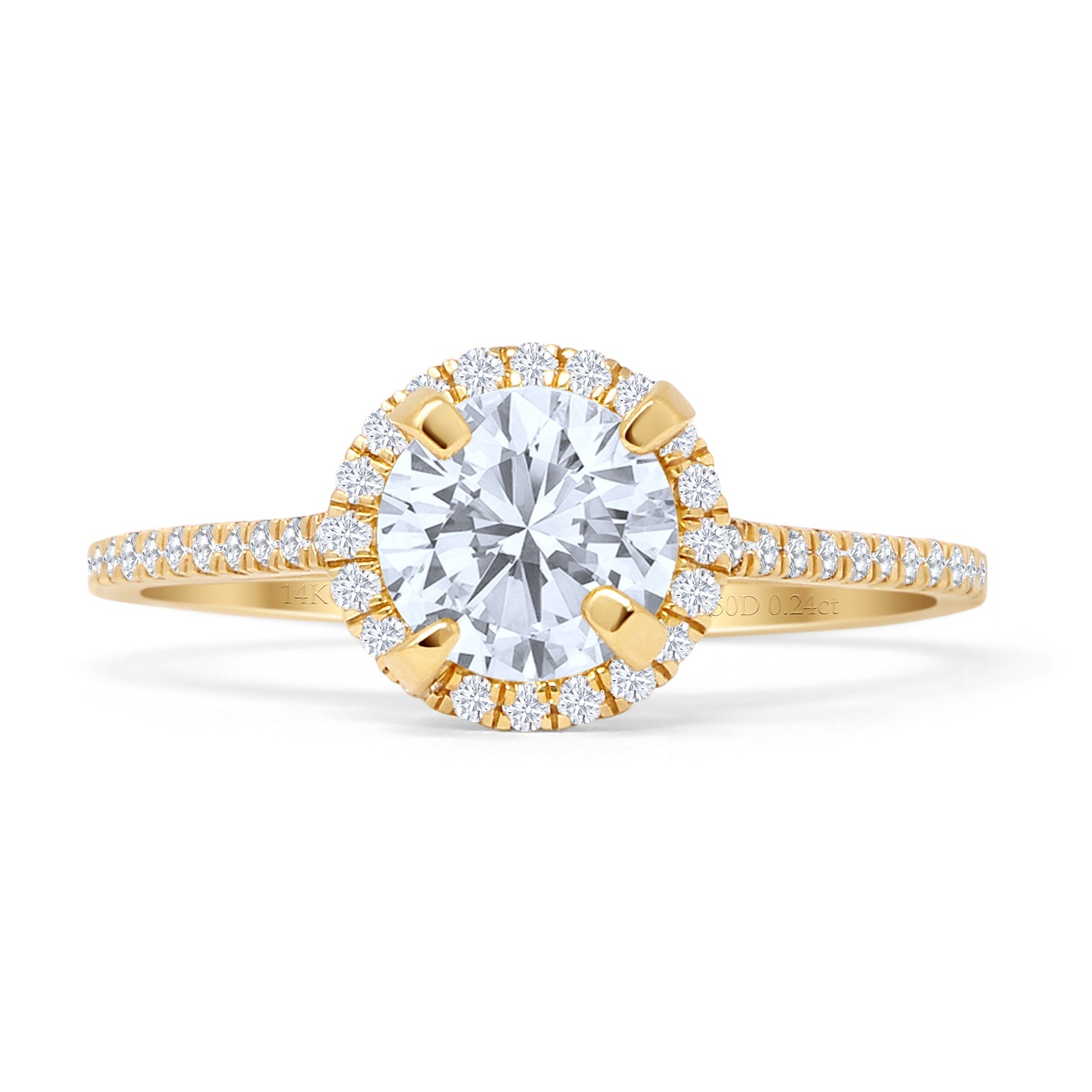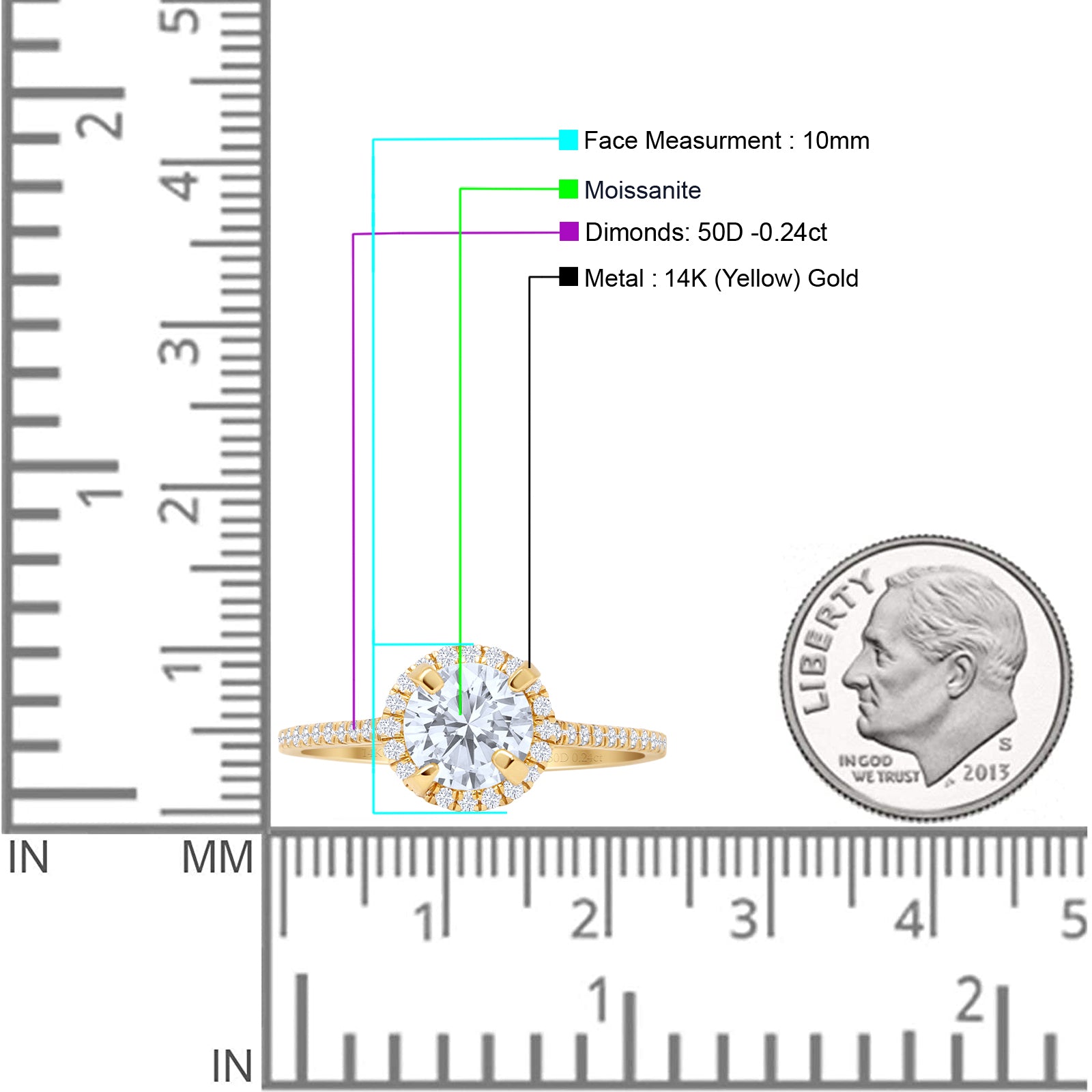 Product Description:Achieve timeless grace with our 14k Yellow gold round halo Moissanite diamond ring. A truly luminous beauty, this magnificent Moissanite is the center for our vintage-inspired ring.