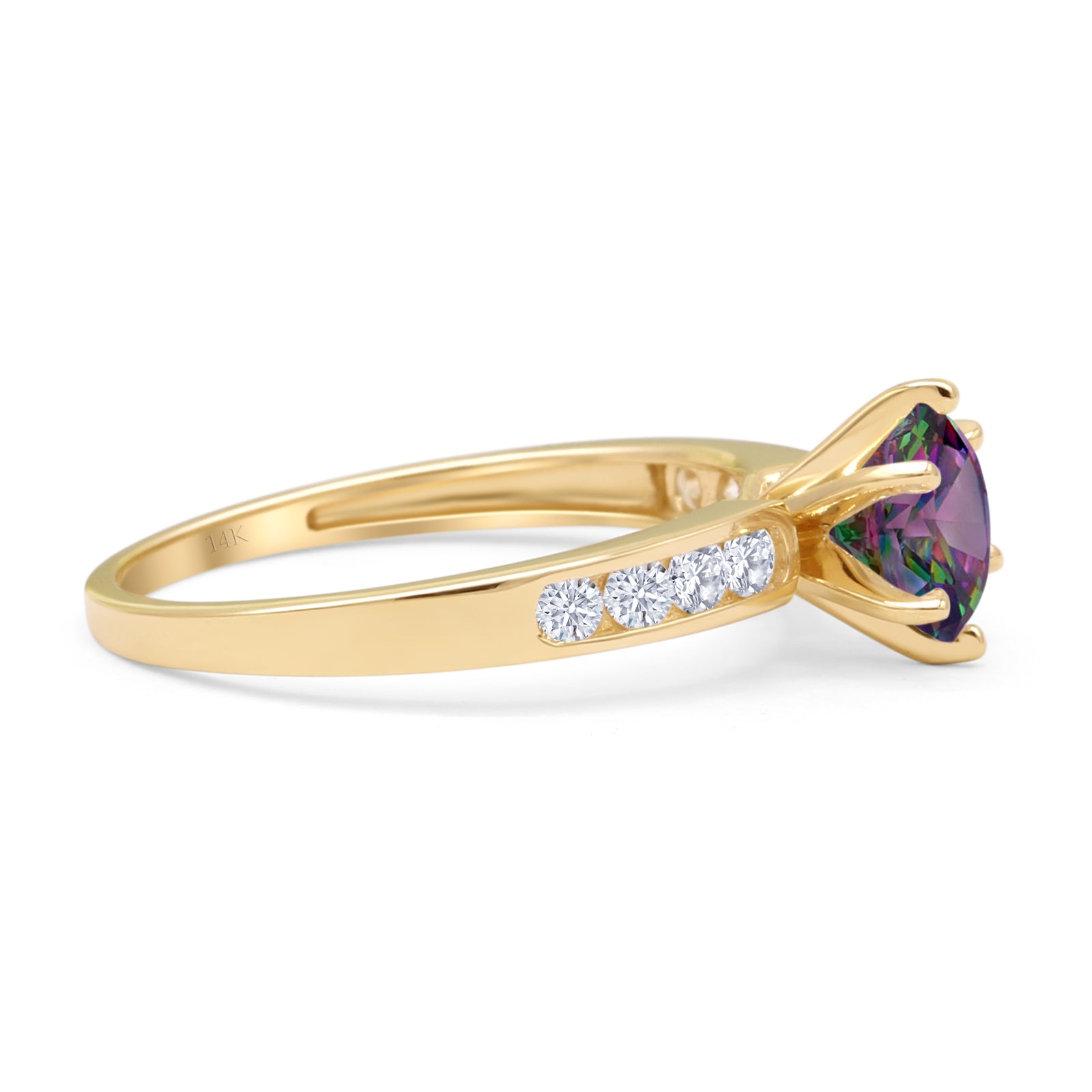 14K Yellow Gold Round Rainbow CZ Cathedral Ring