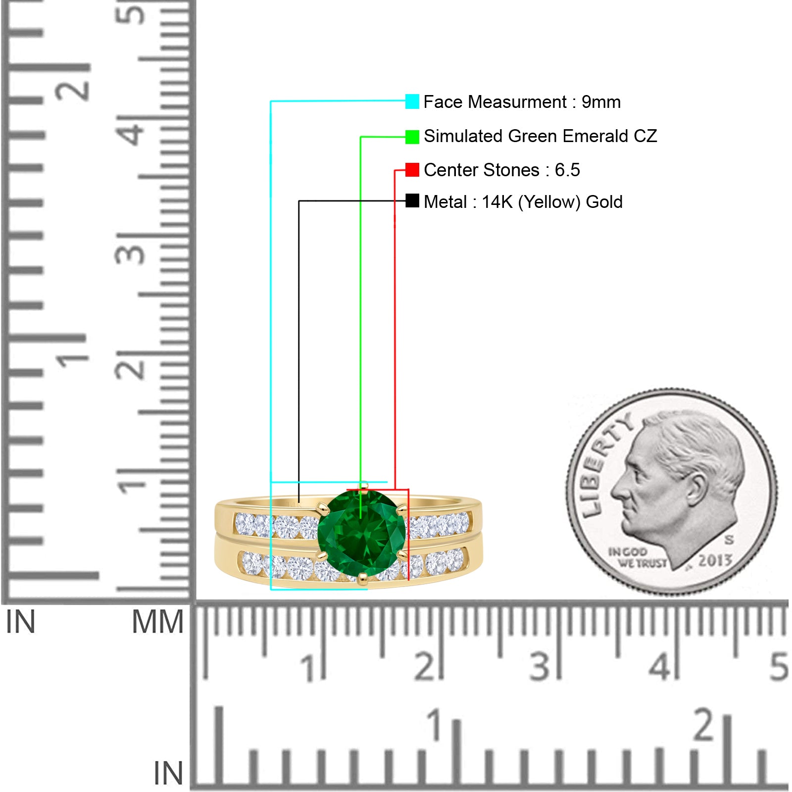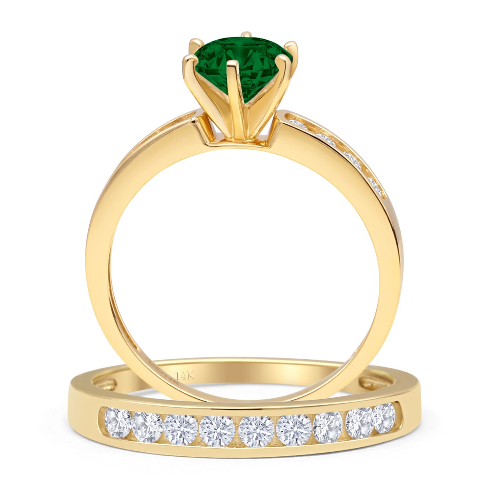 14K Yellow Gold Two Piece Half Eternity Round Emerald CZ Cathedral Ring