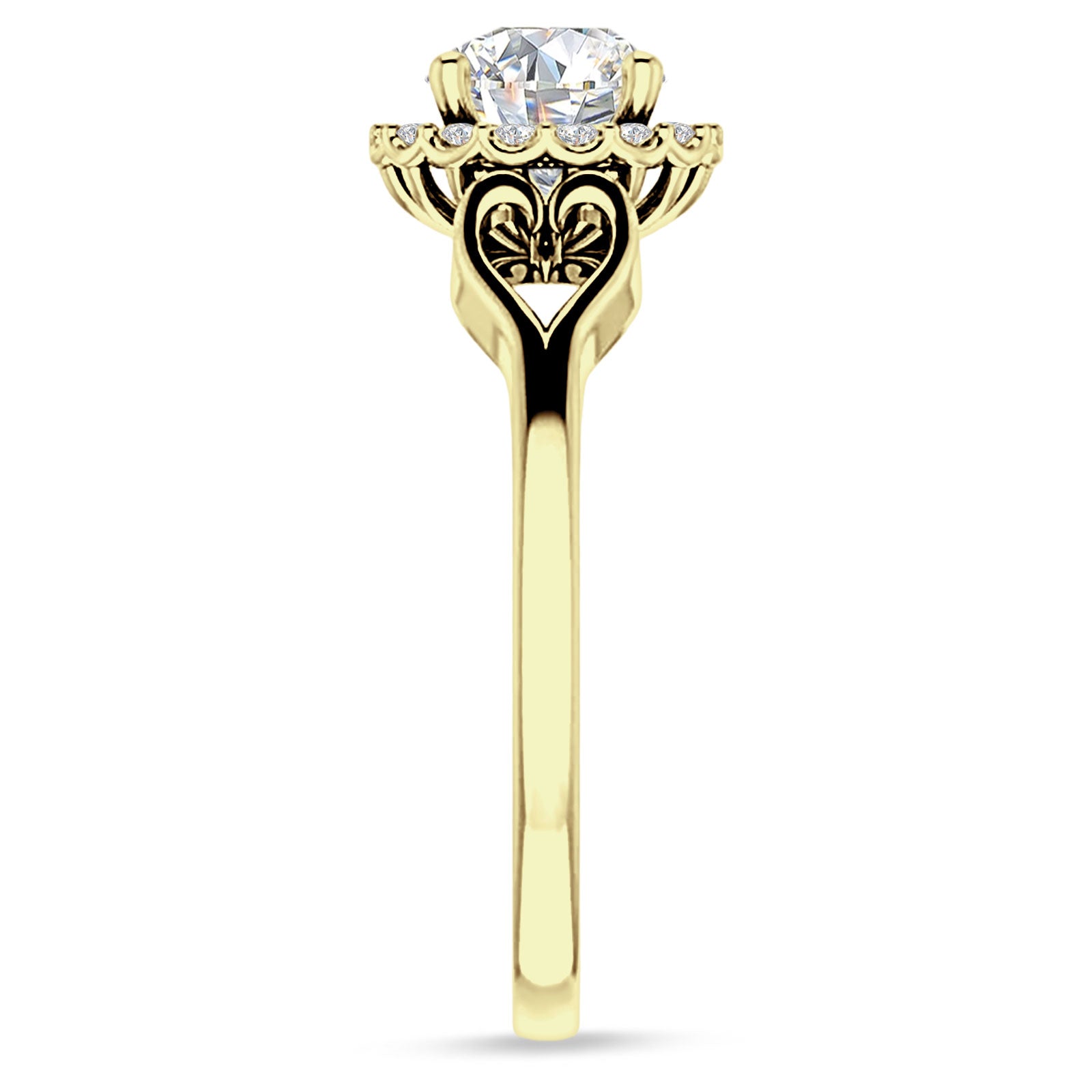 18K Gold IGI Certified Round 2 Carat Lab Grown Diamond Art Deco Heart Halo Ring