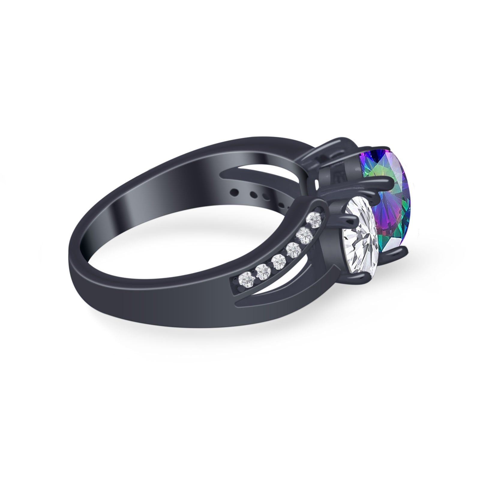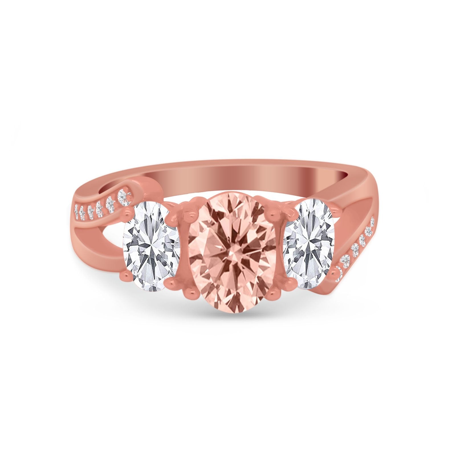 CZ & Blue Sapphire CZ Rose Tone Silver