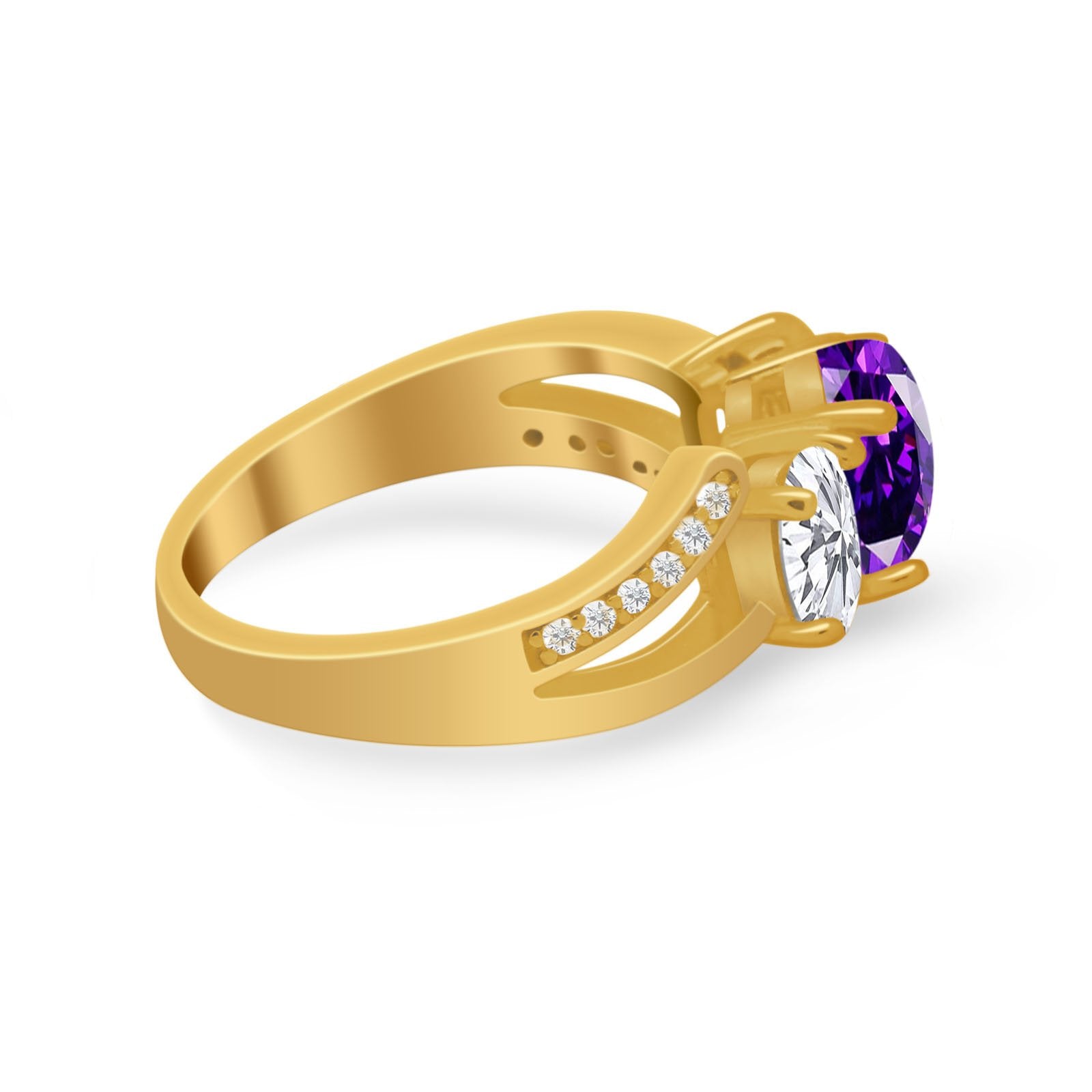 CZ & Blue Sapphire CZ Yellow Tone Silver
