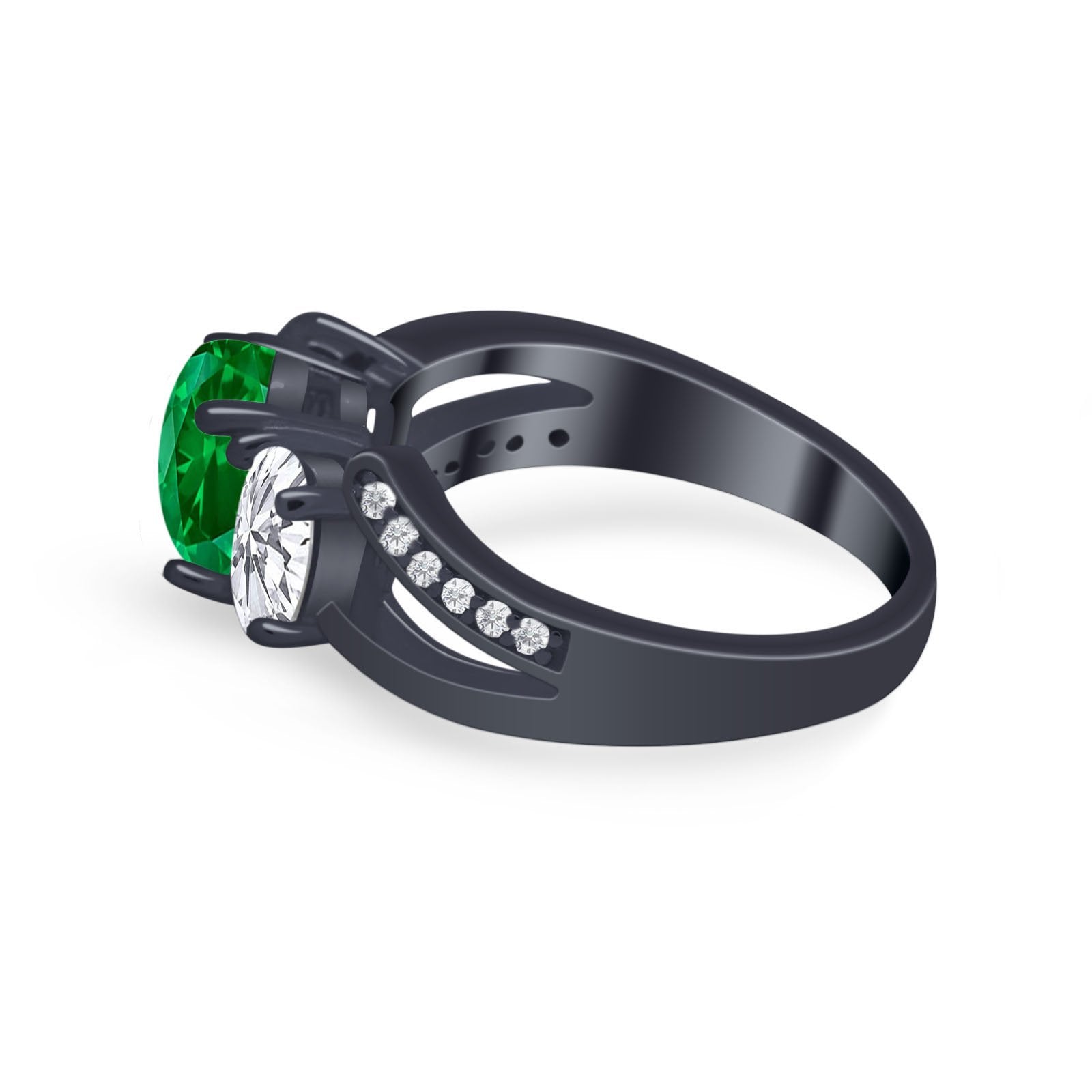 Minimalist 2.5mm Full Eternity Band CZ & Green Emerald CZ 925 Sterling Silver