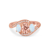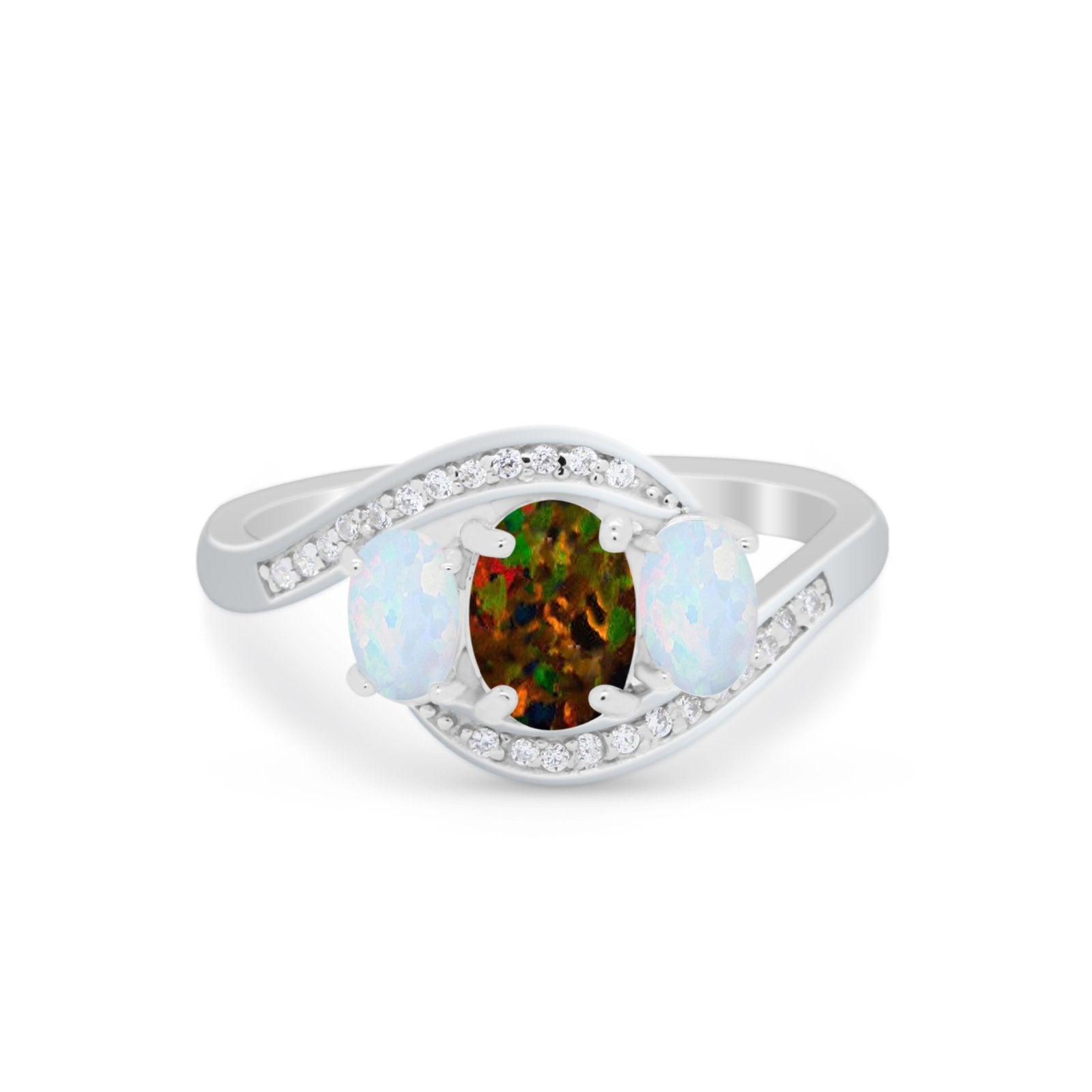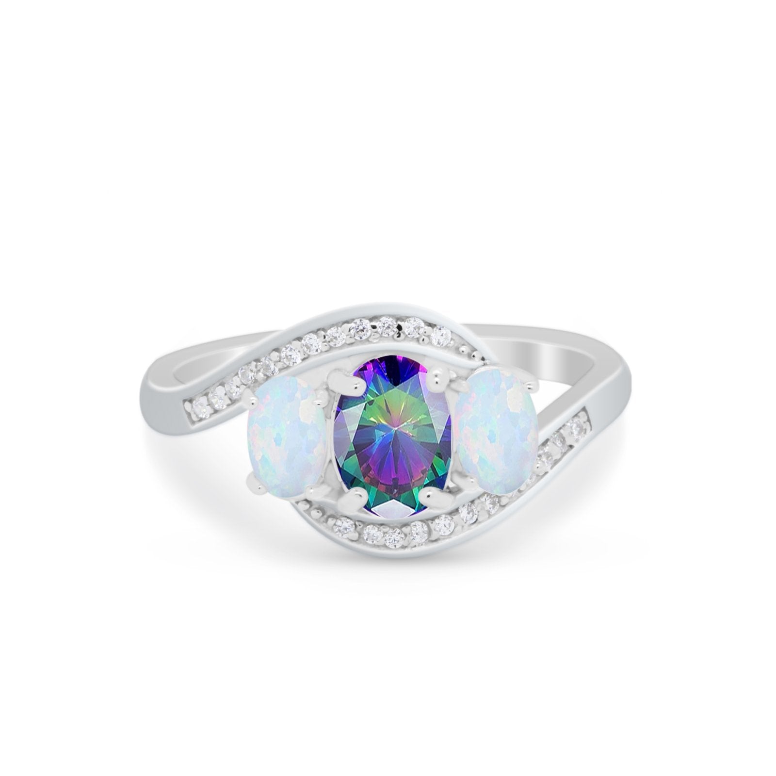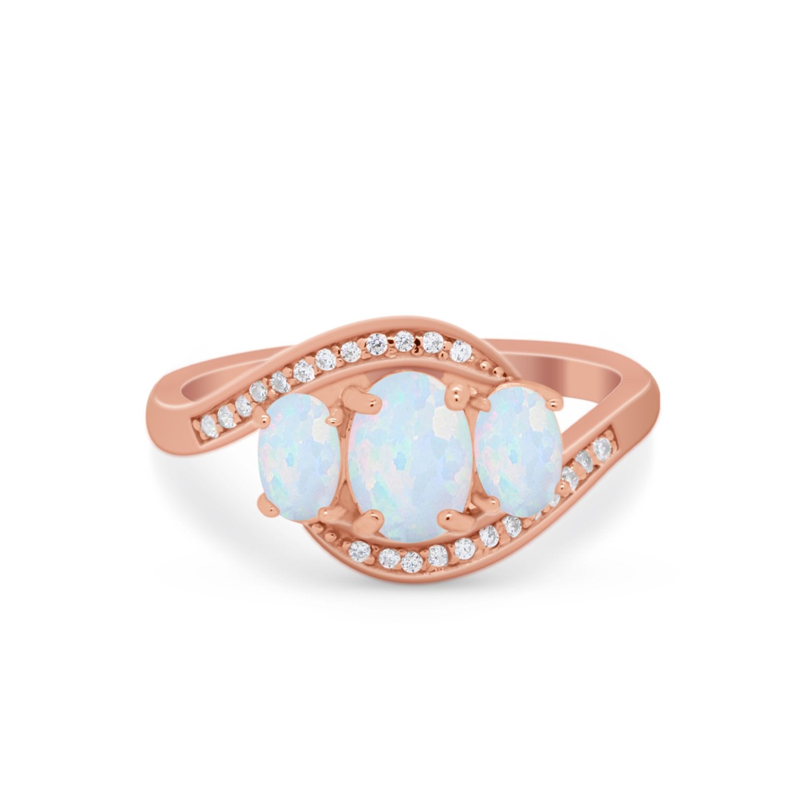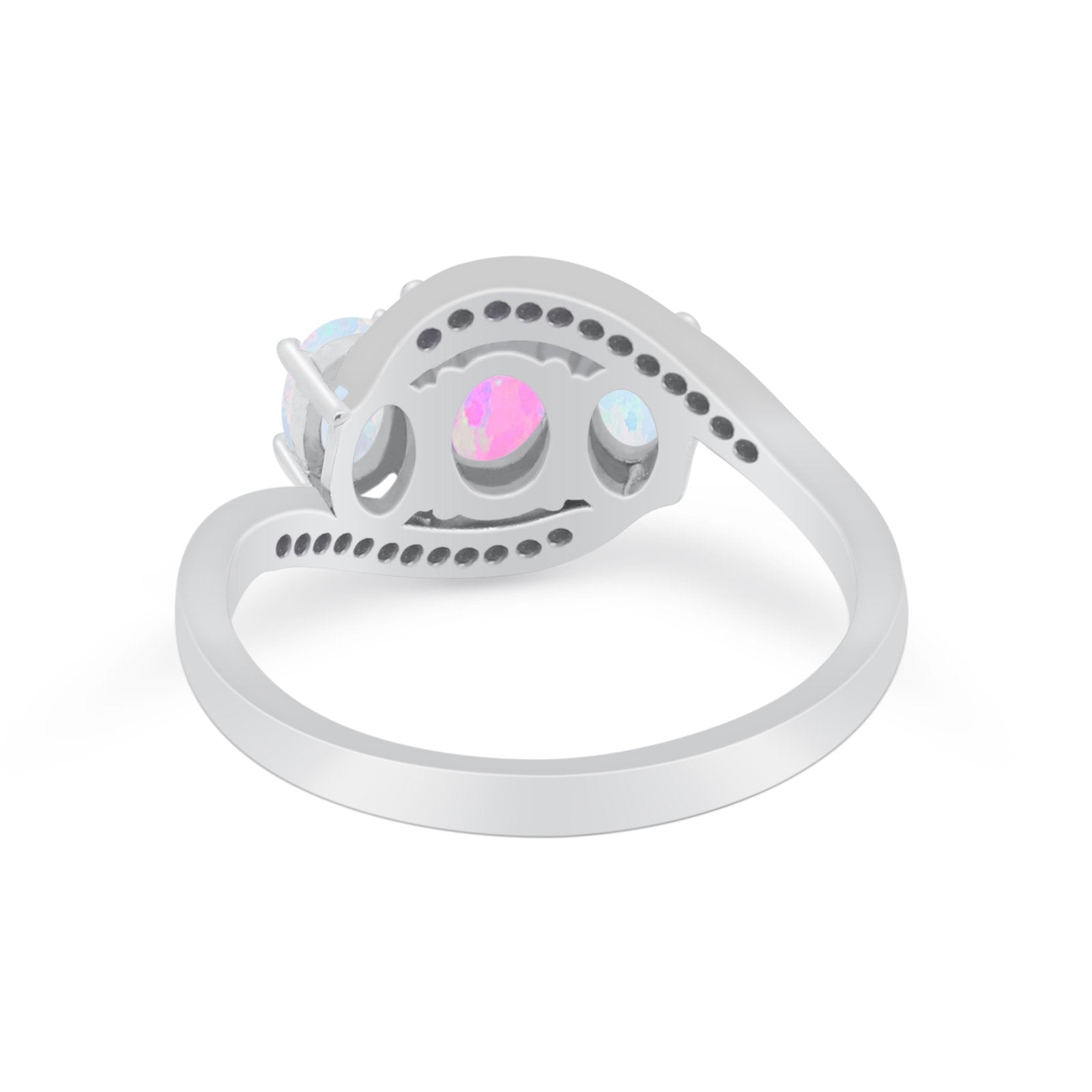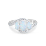 3-Stone Swirl Wedding Ring Round Simulated Cubic Zirconia 925 Sterling Silver