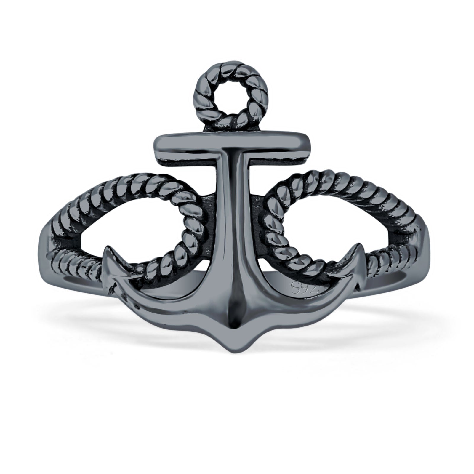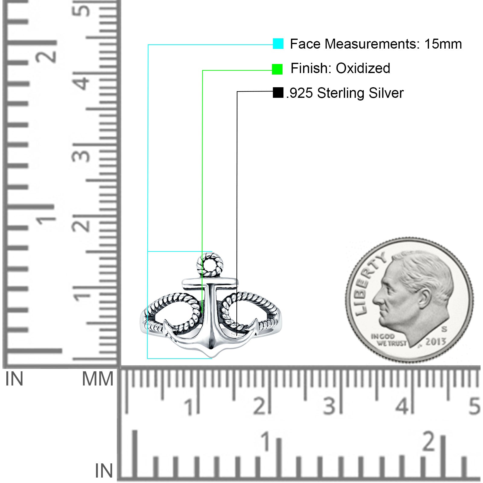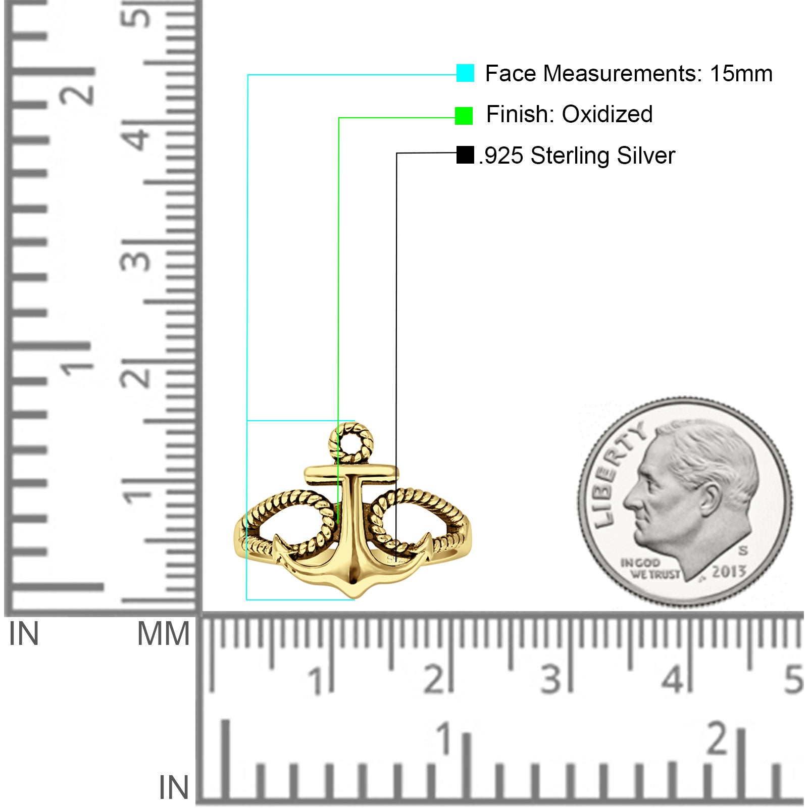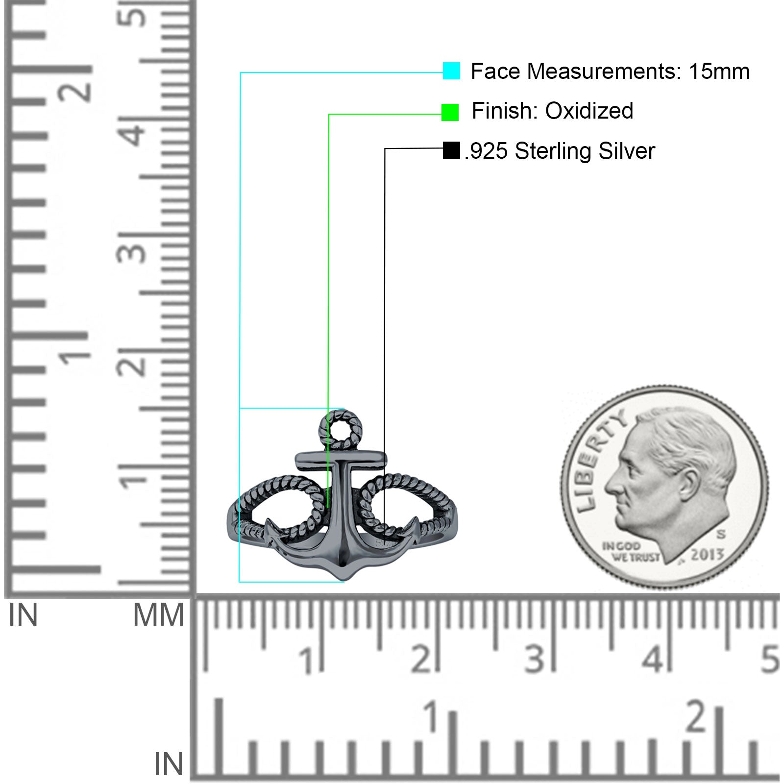 Anchor Ring 15mm Oxidized Twisted Rope 925 Sterling Silver