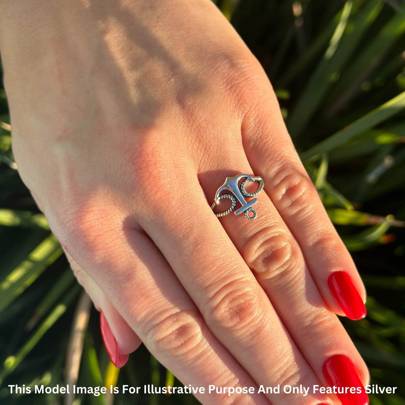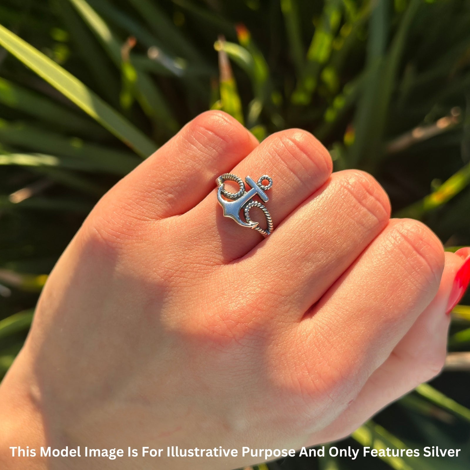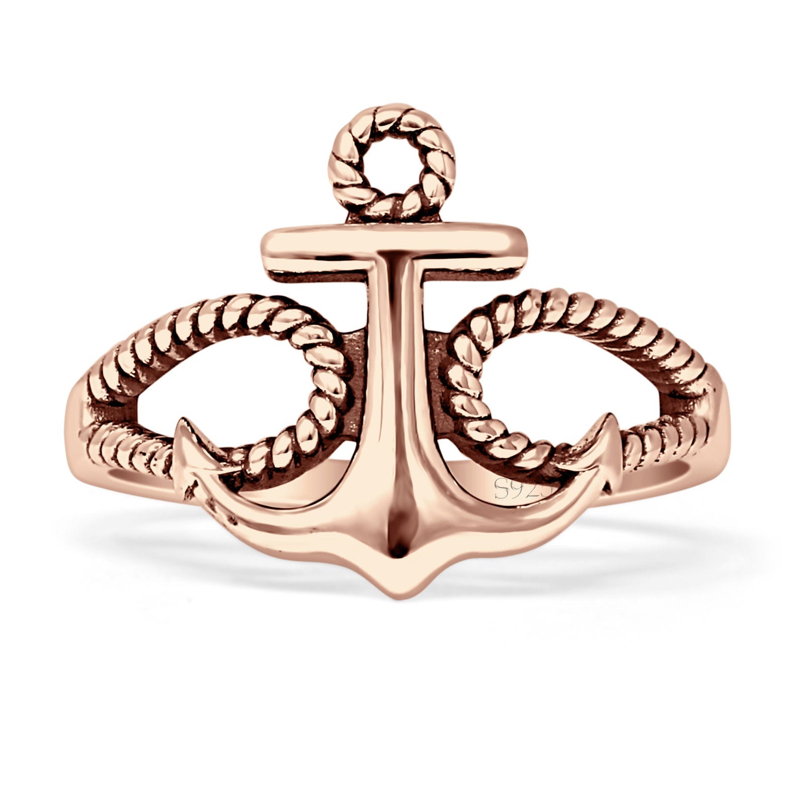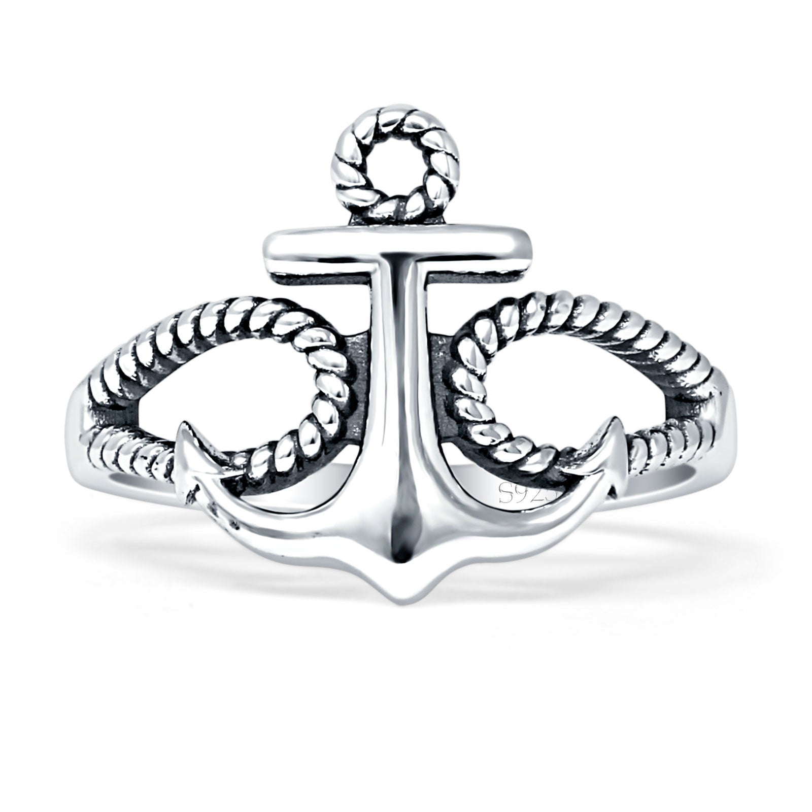 Anchor Ring 15mm Oxidized Twisted Rope 925 Sterling Silver