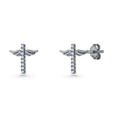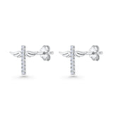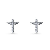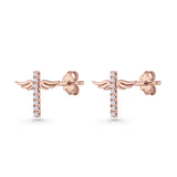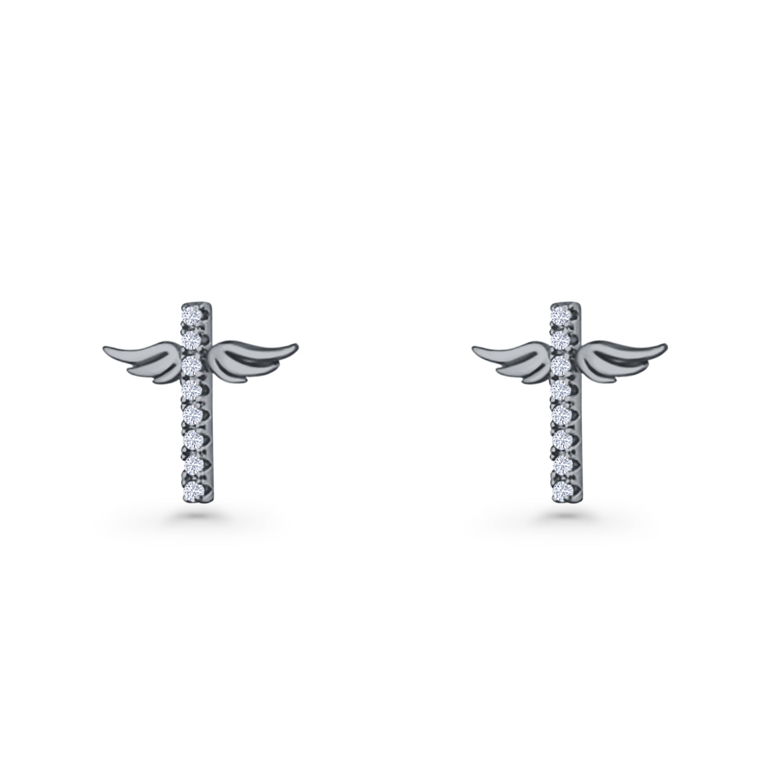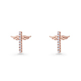 Design: Angel Wings Charms Cross CZ Stud Earrings.