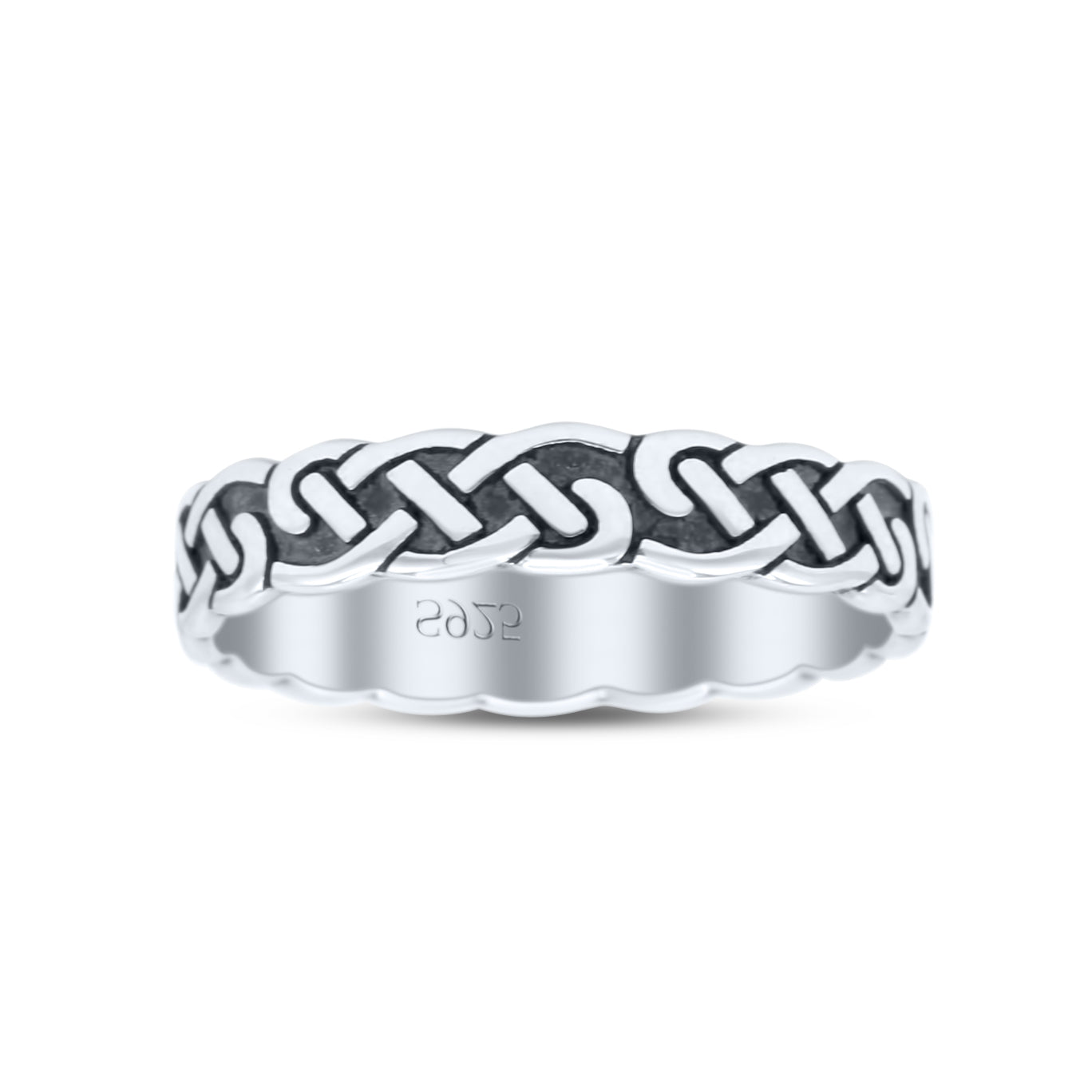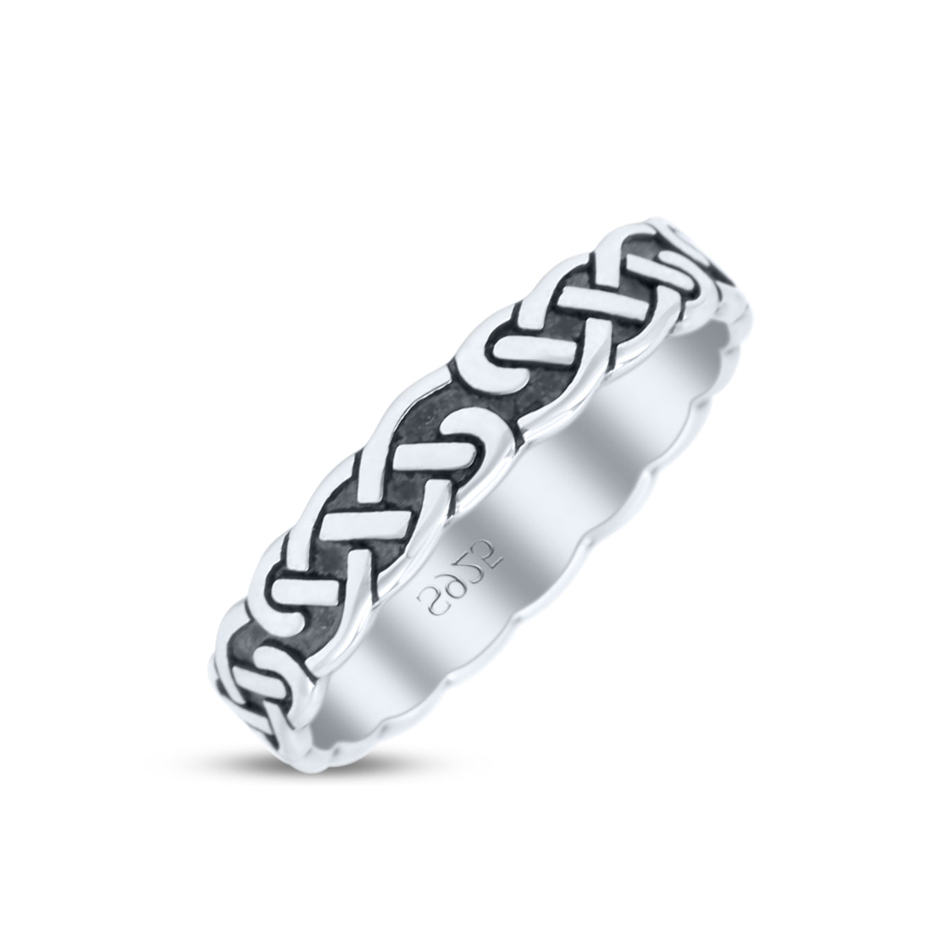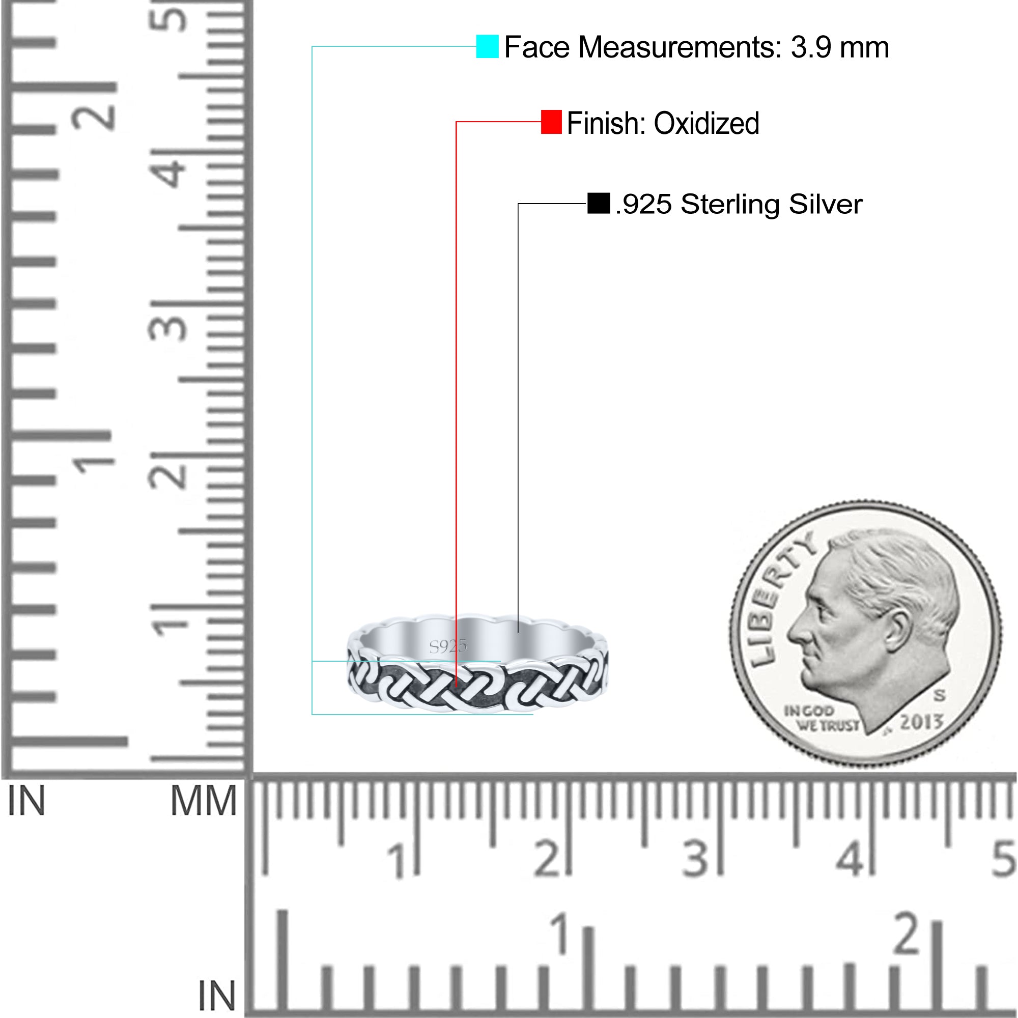 Antiquated Eternity Celtic Endless Knot Oxidized Circle Cultural Band Solid 925 Sterling Silver Thumb Ring (3.9mm)