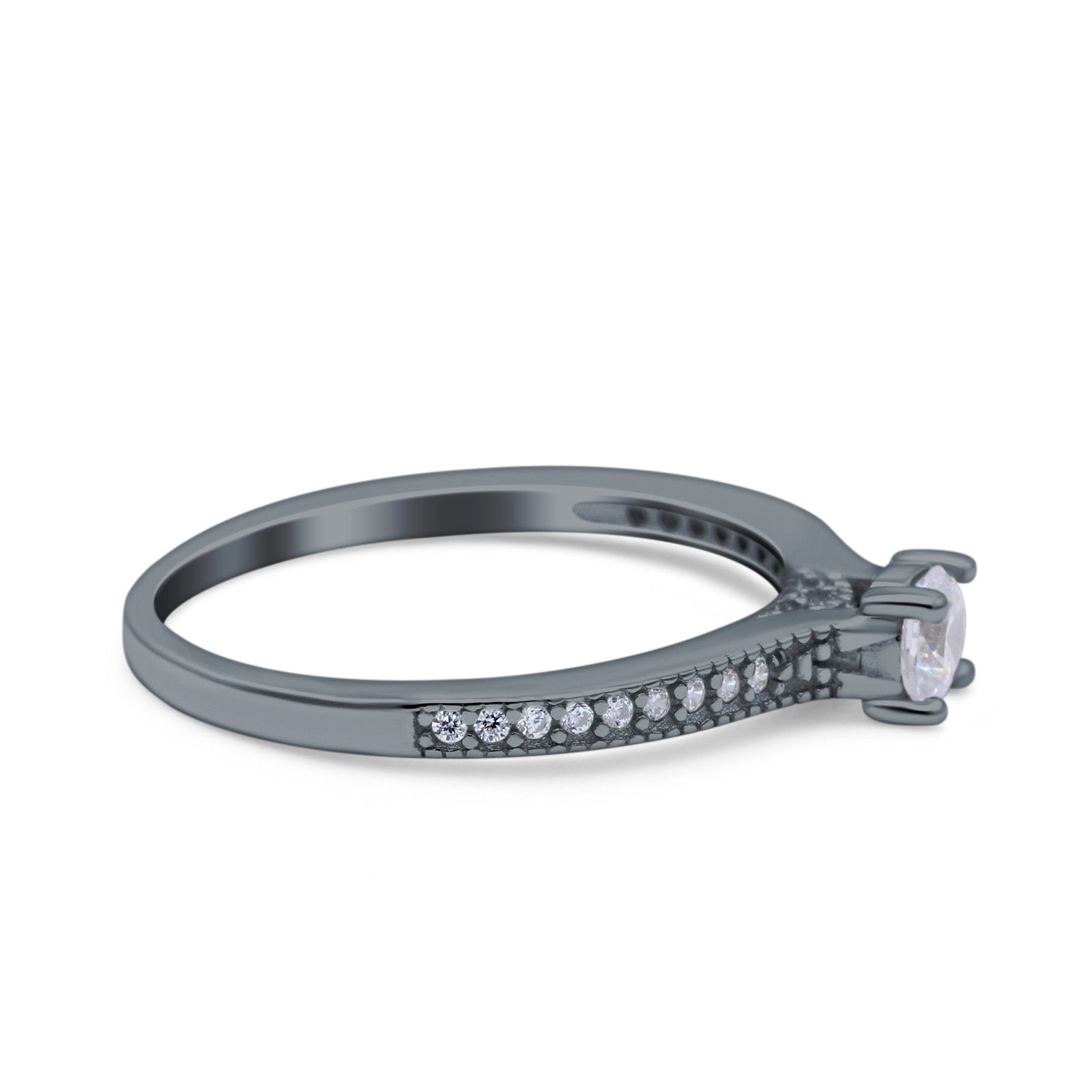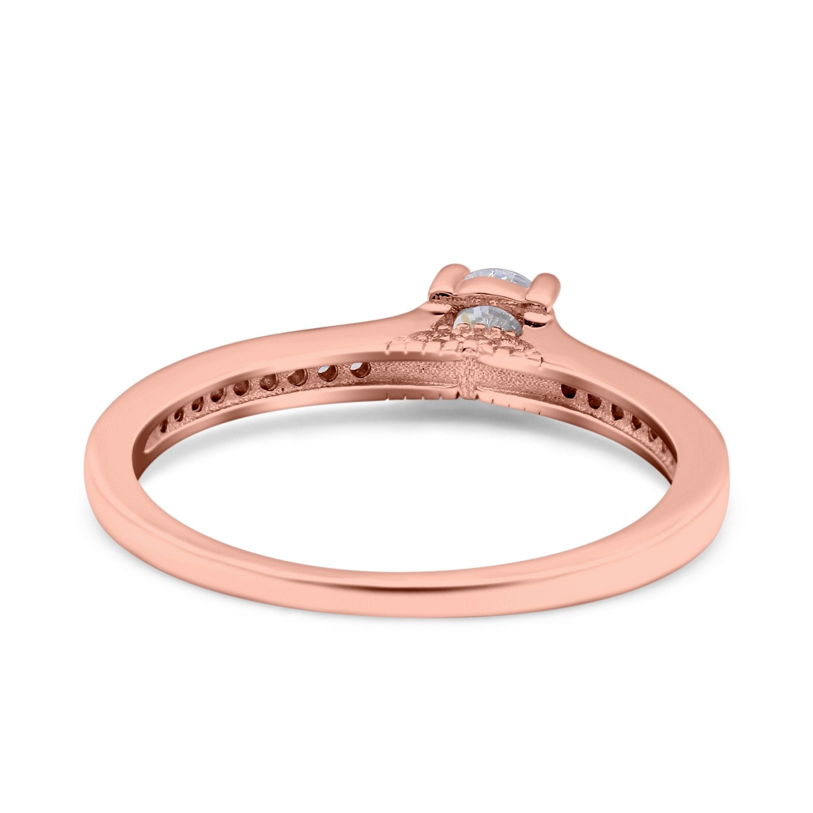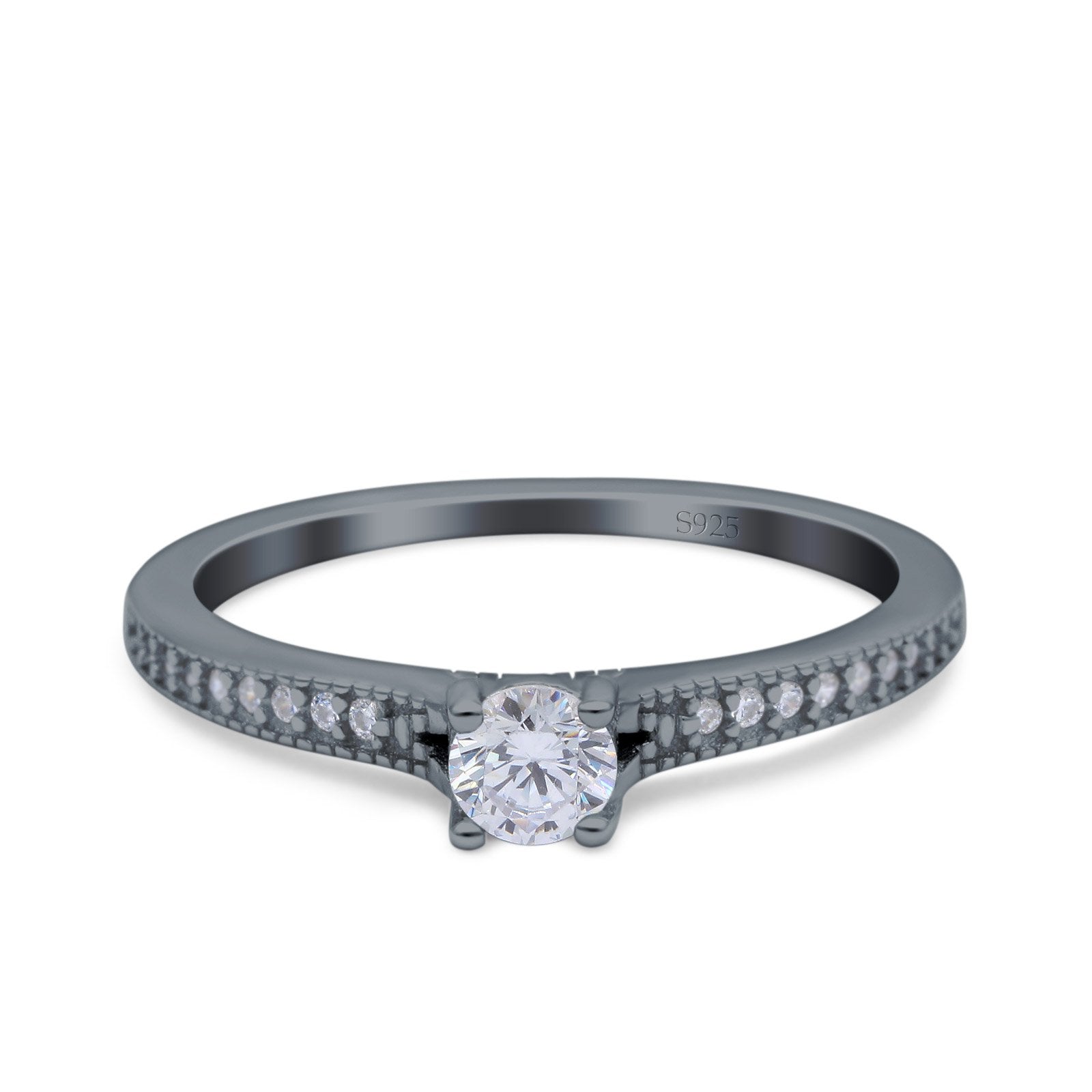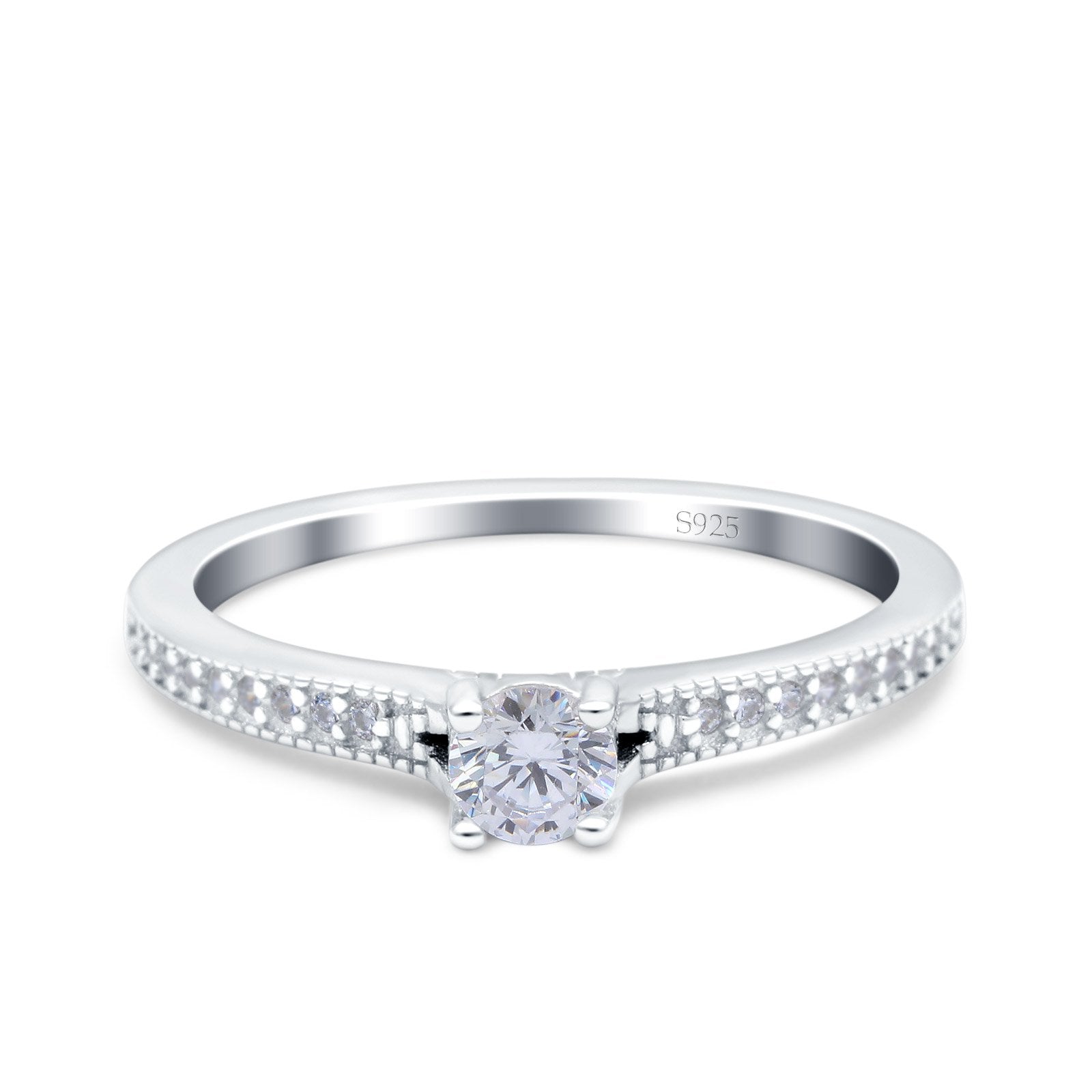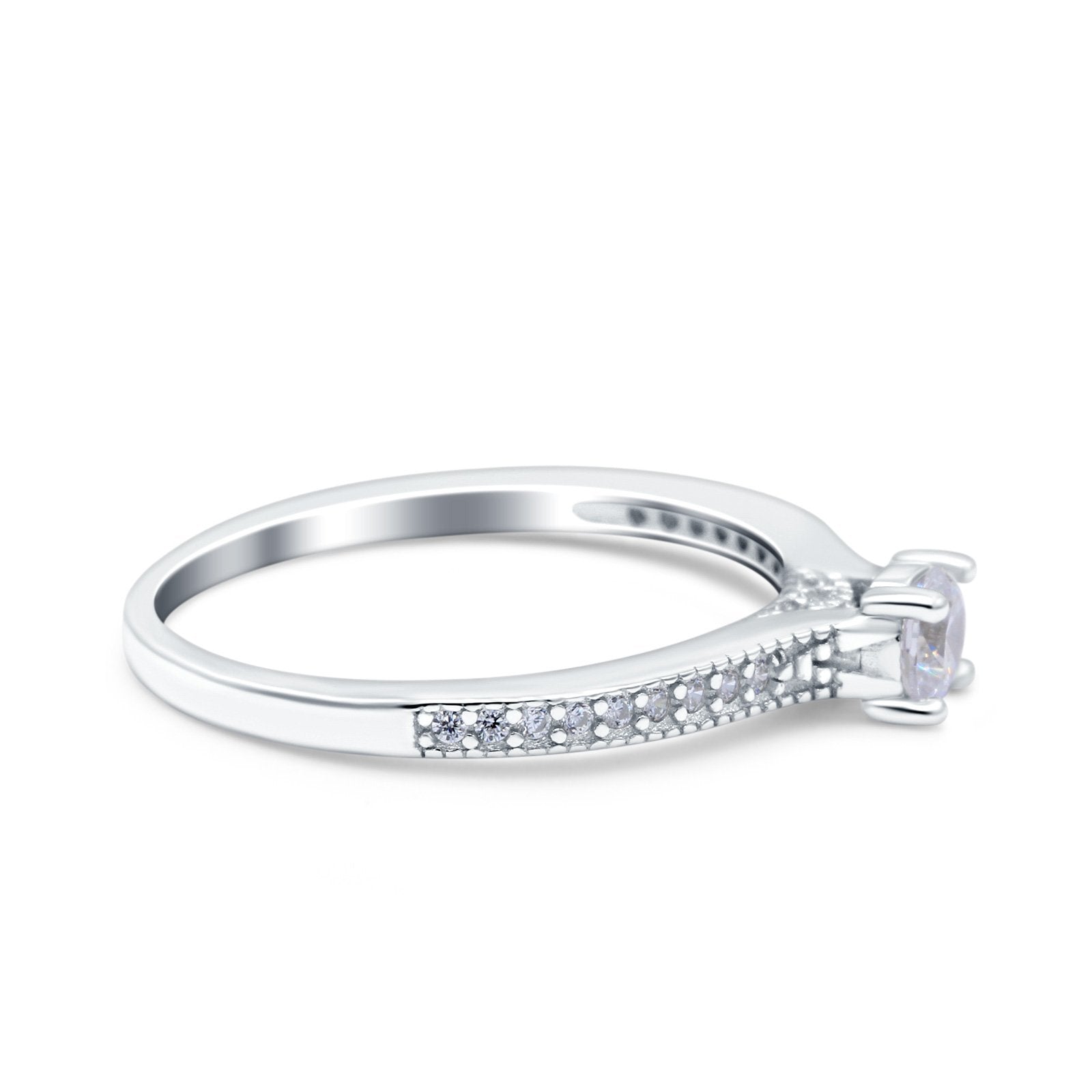 Art Deco Band Wedding Ring Round Pave Simulated Cubic Zirconia 925 Sterling Silver (4mm)