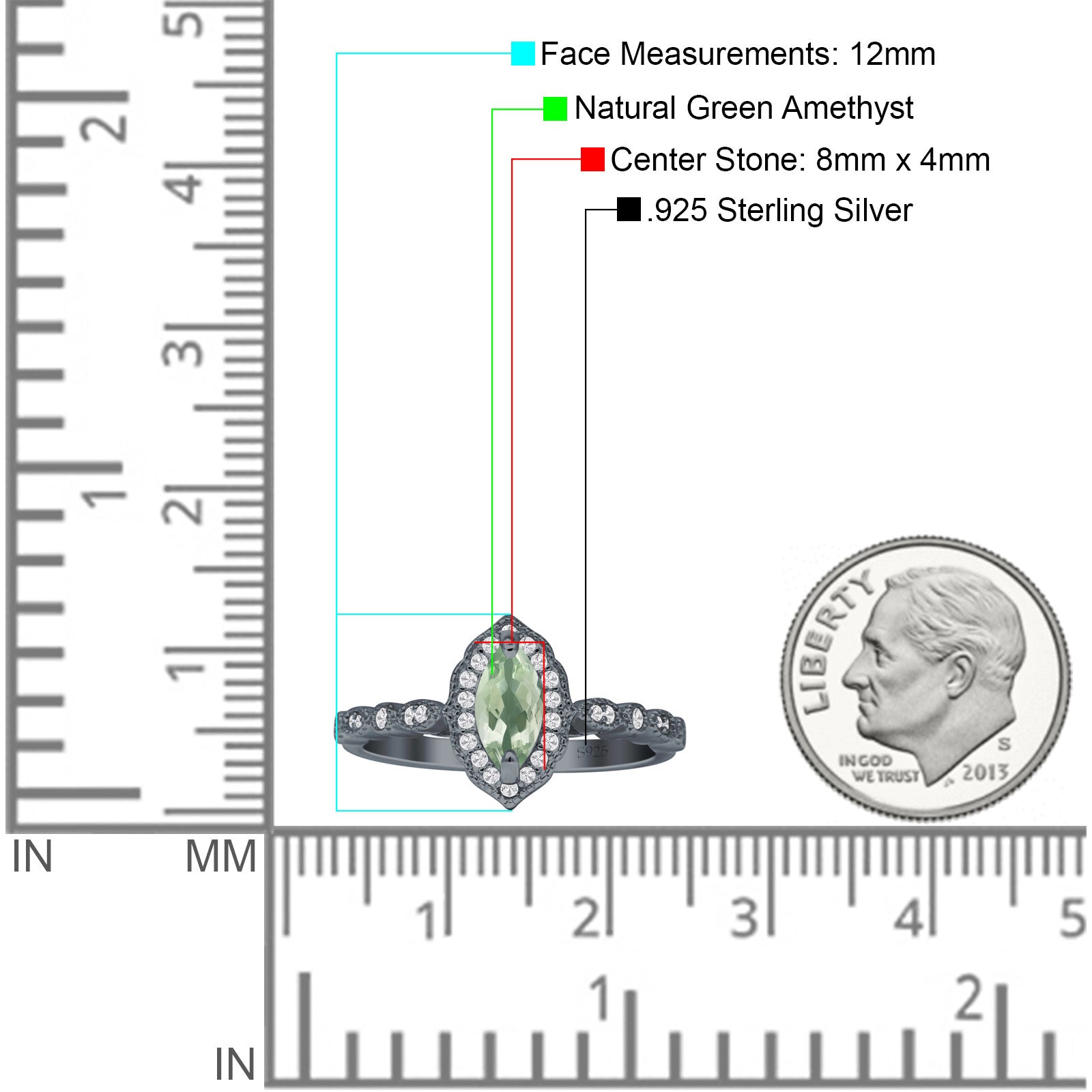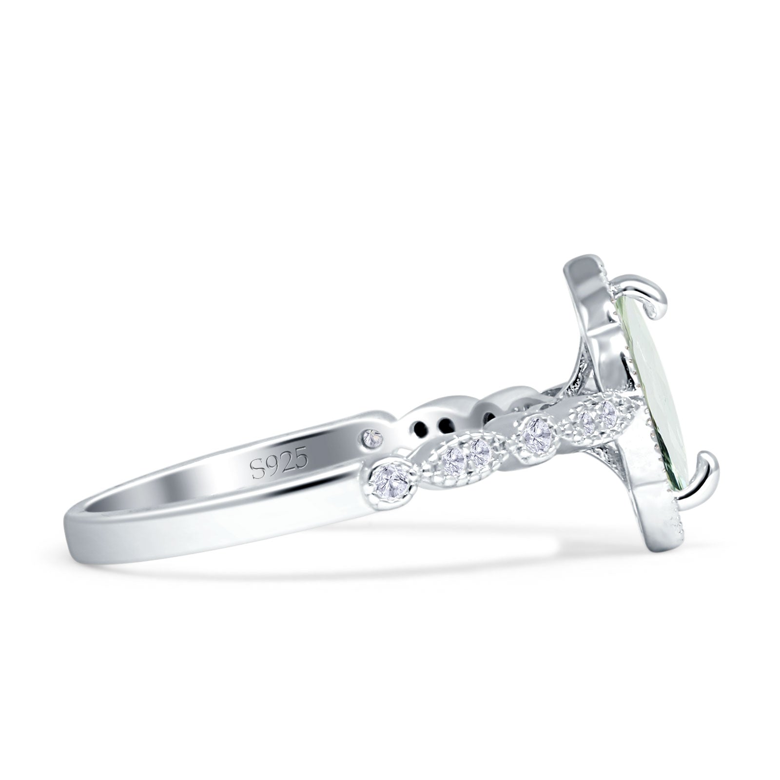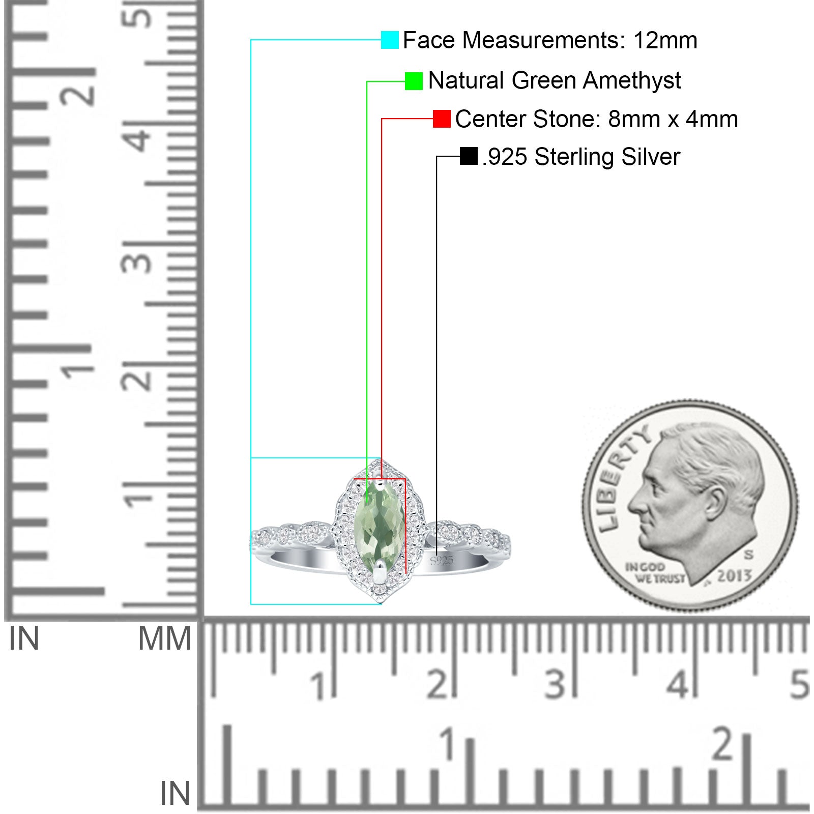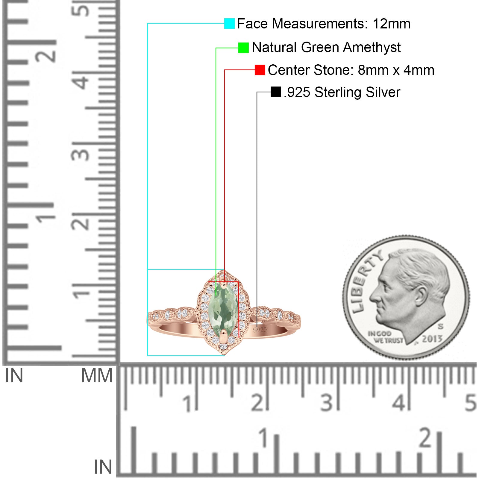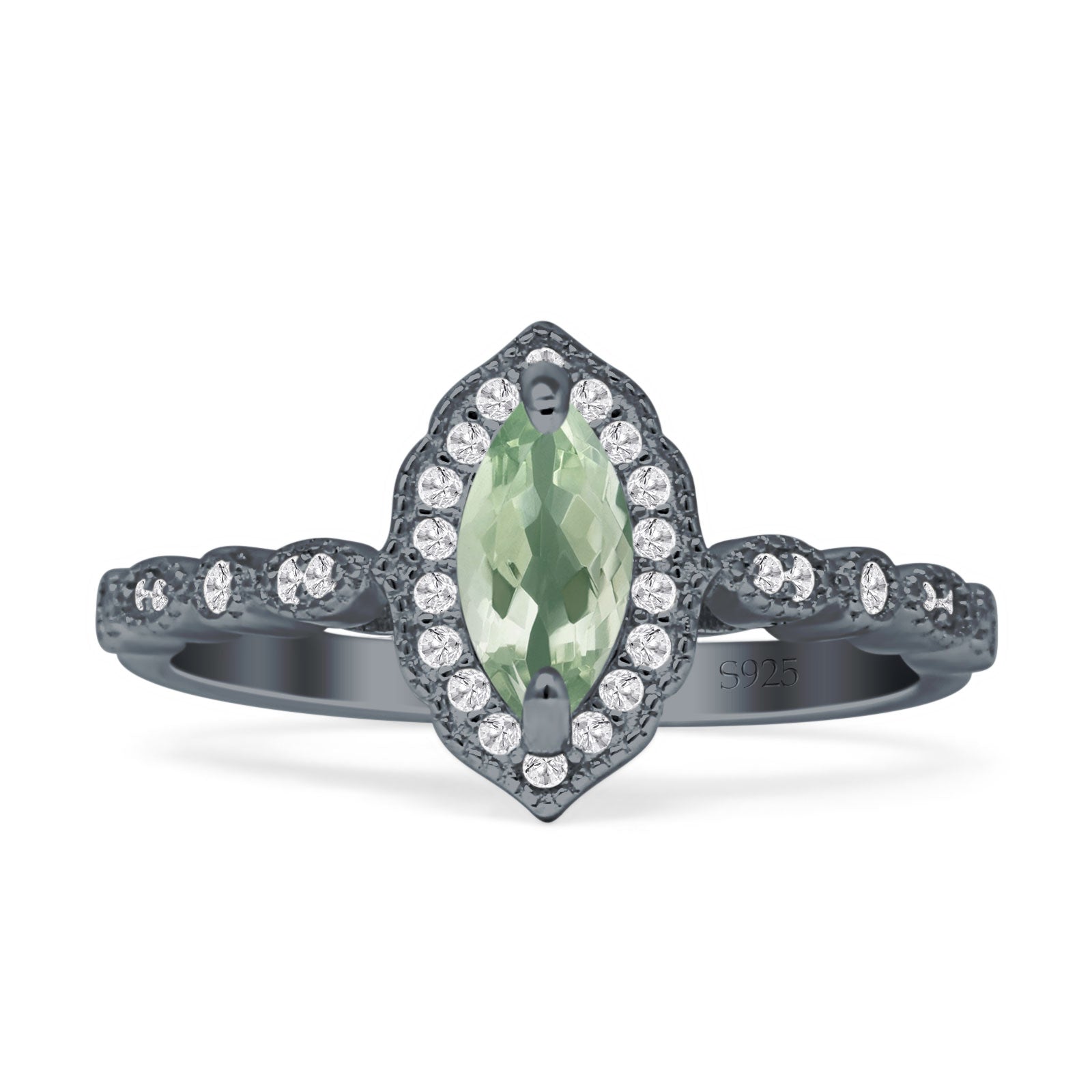 Art Deco Engagement Ring Halo Marquise Natural Green Amethyst Prasiolite 925 Sterling Silver
