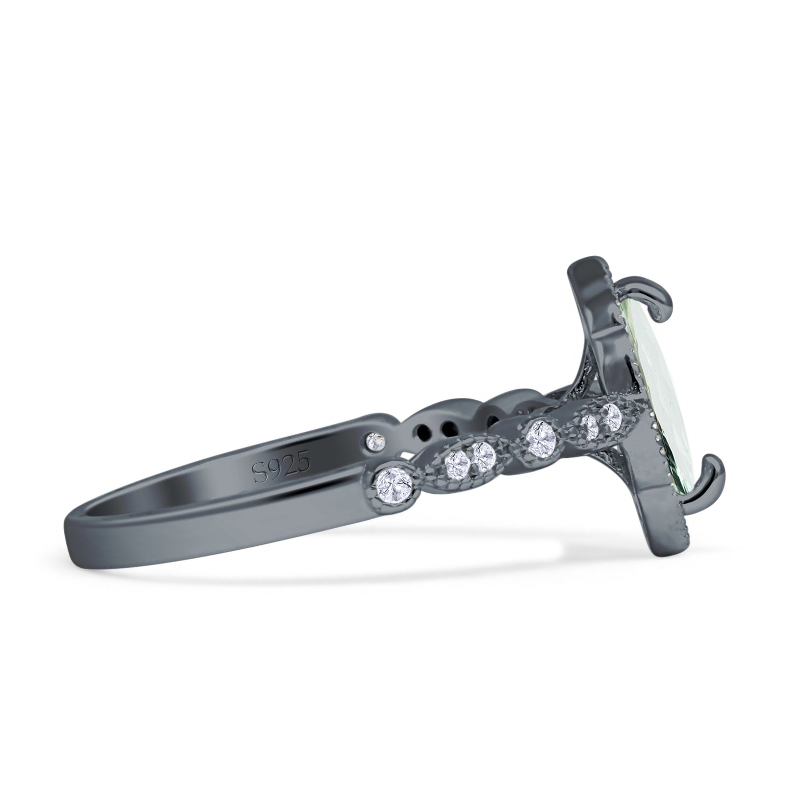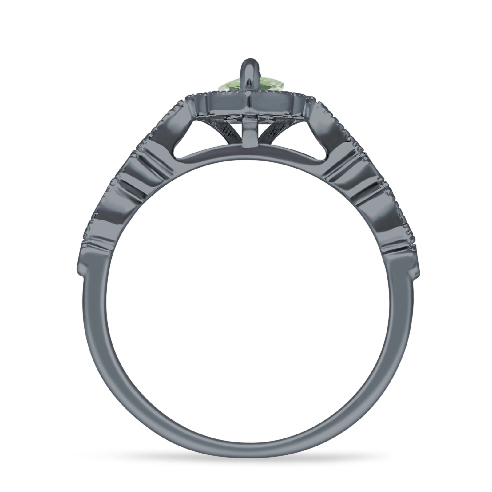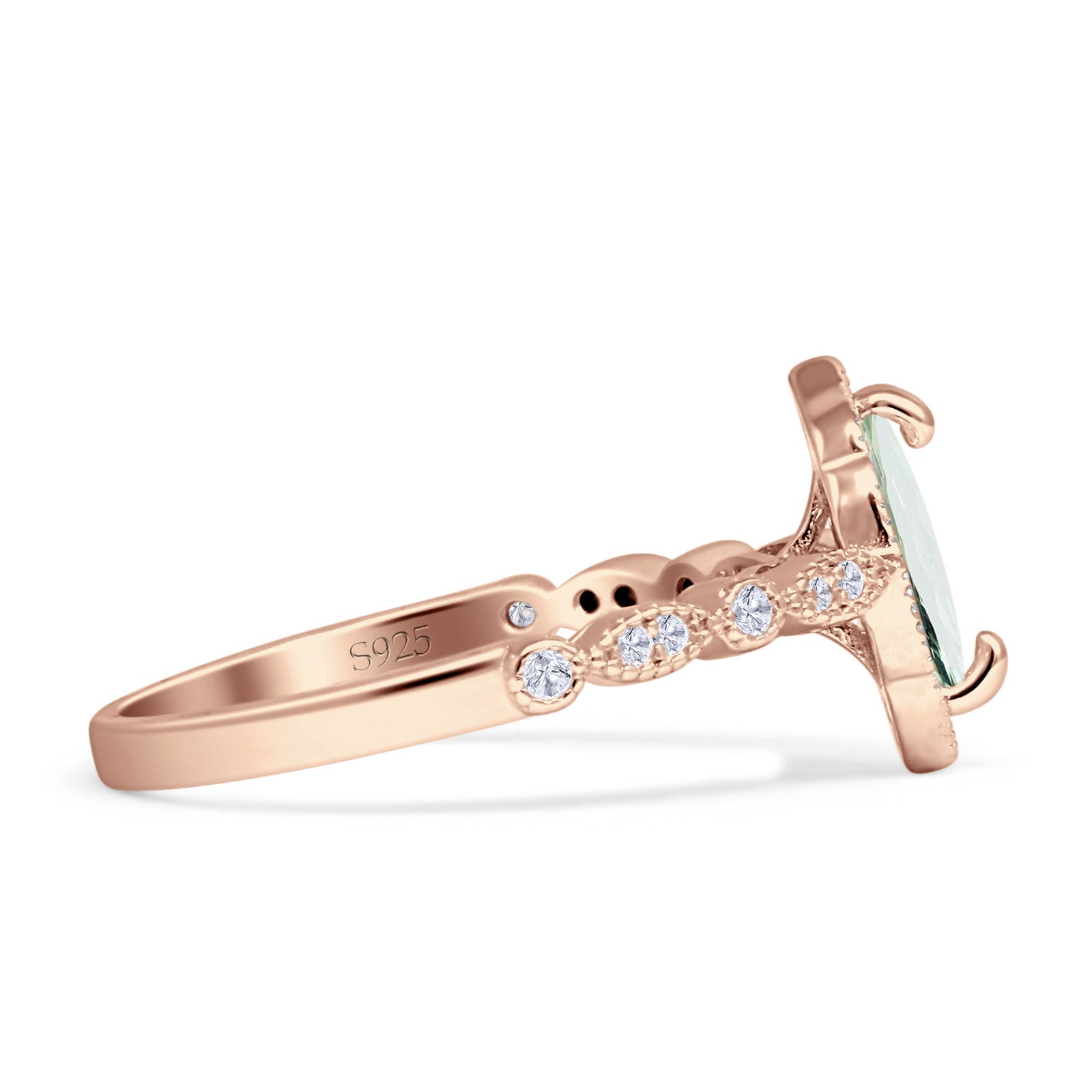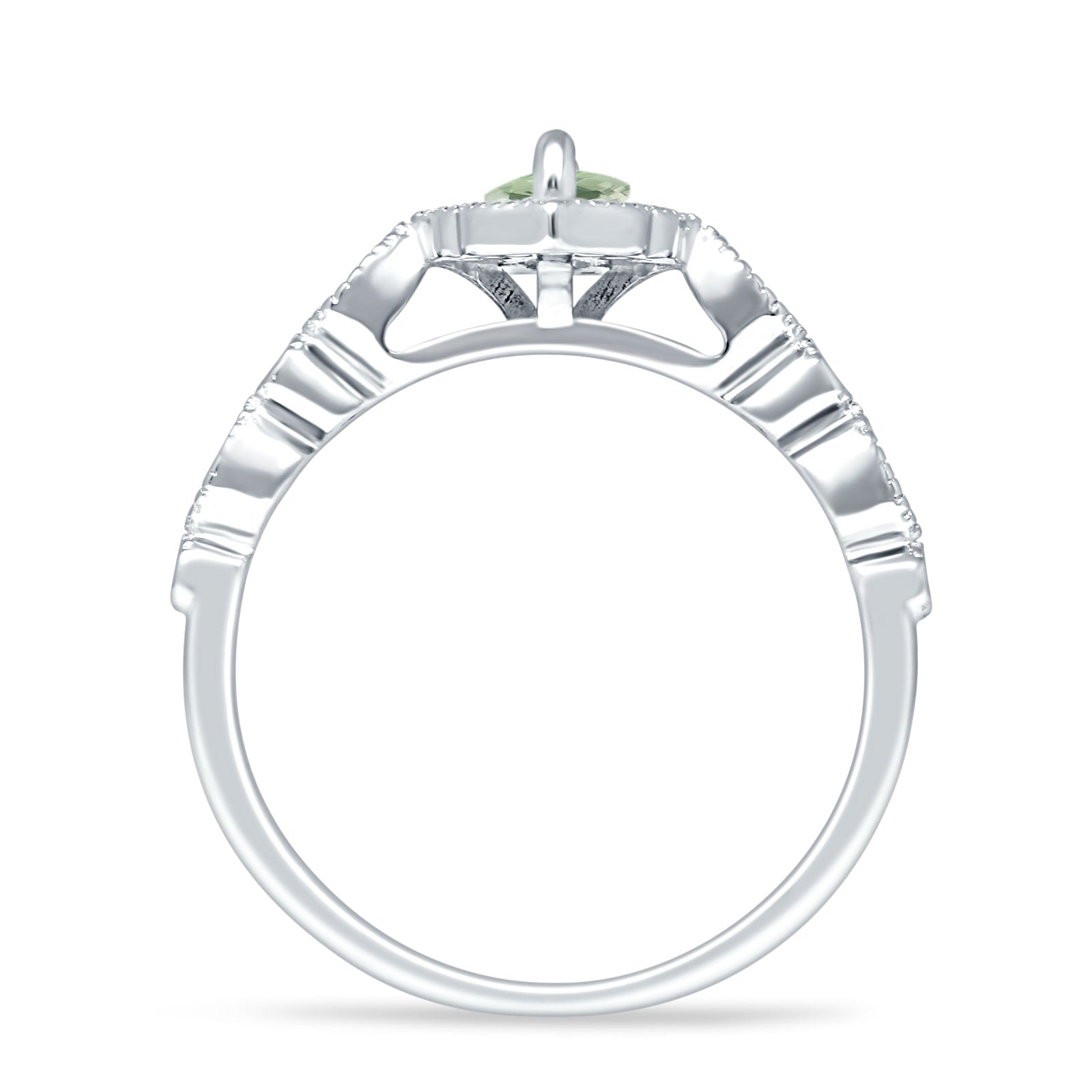 Art Deco Engagement Ring Halo Marquise Natural Green Amethyst Prasiolite 925 Sterling Silver