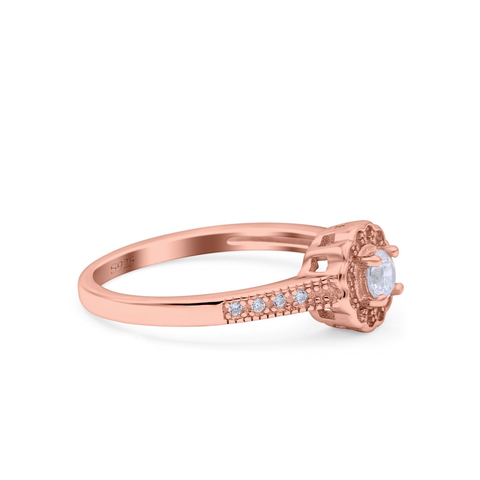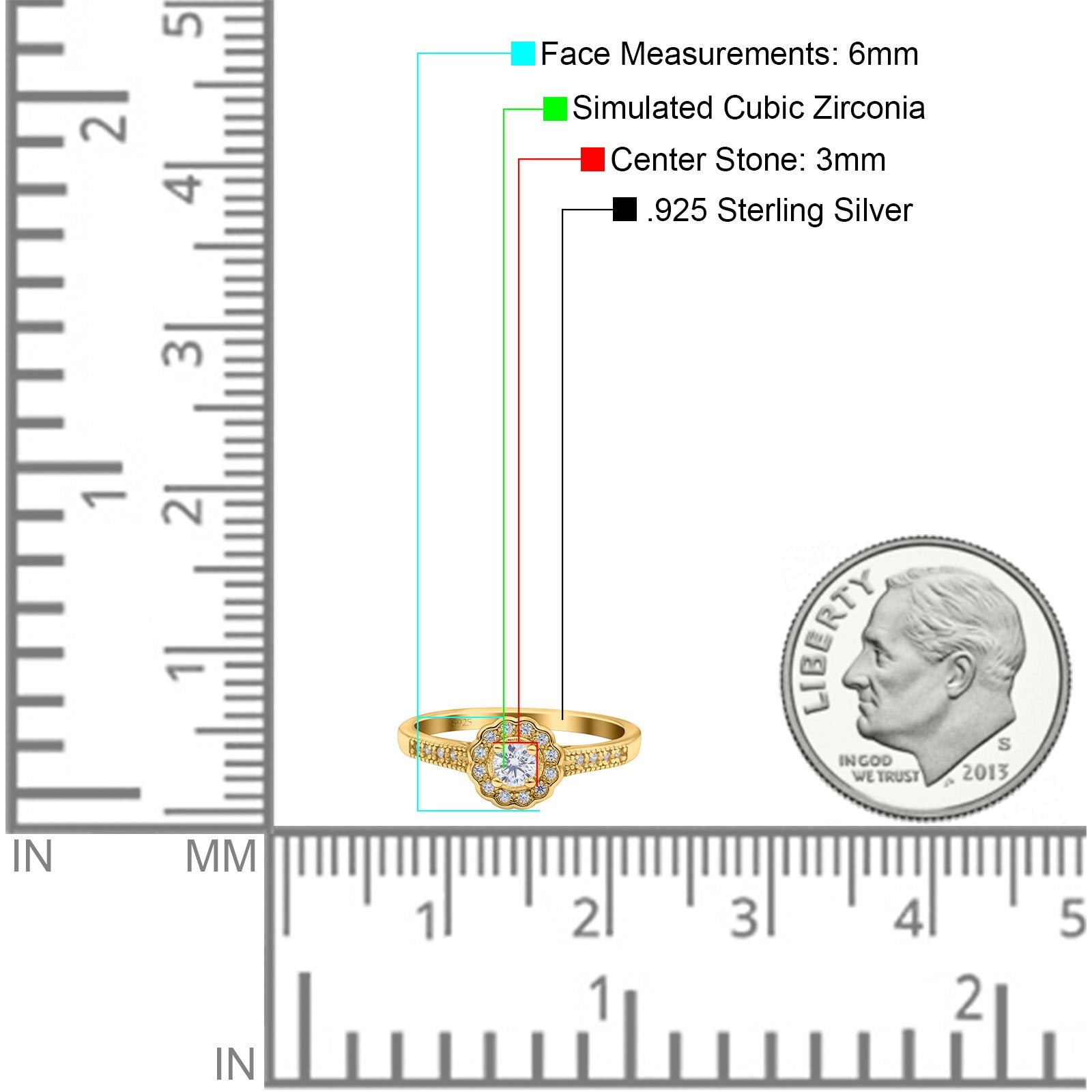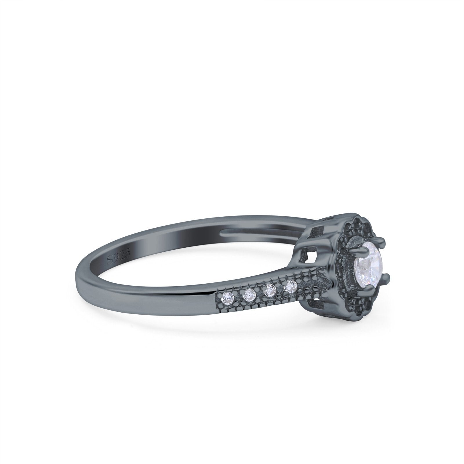 Art Deco Engagement Wedding Ring Band Round Pave Simulated Cubic Zirconia 925 Sterling Silver (6mm)