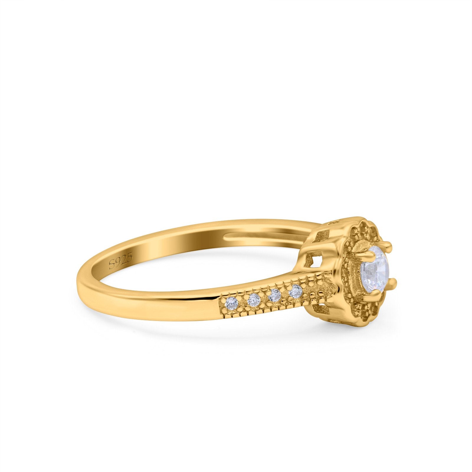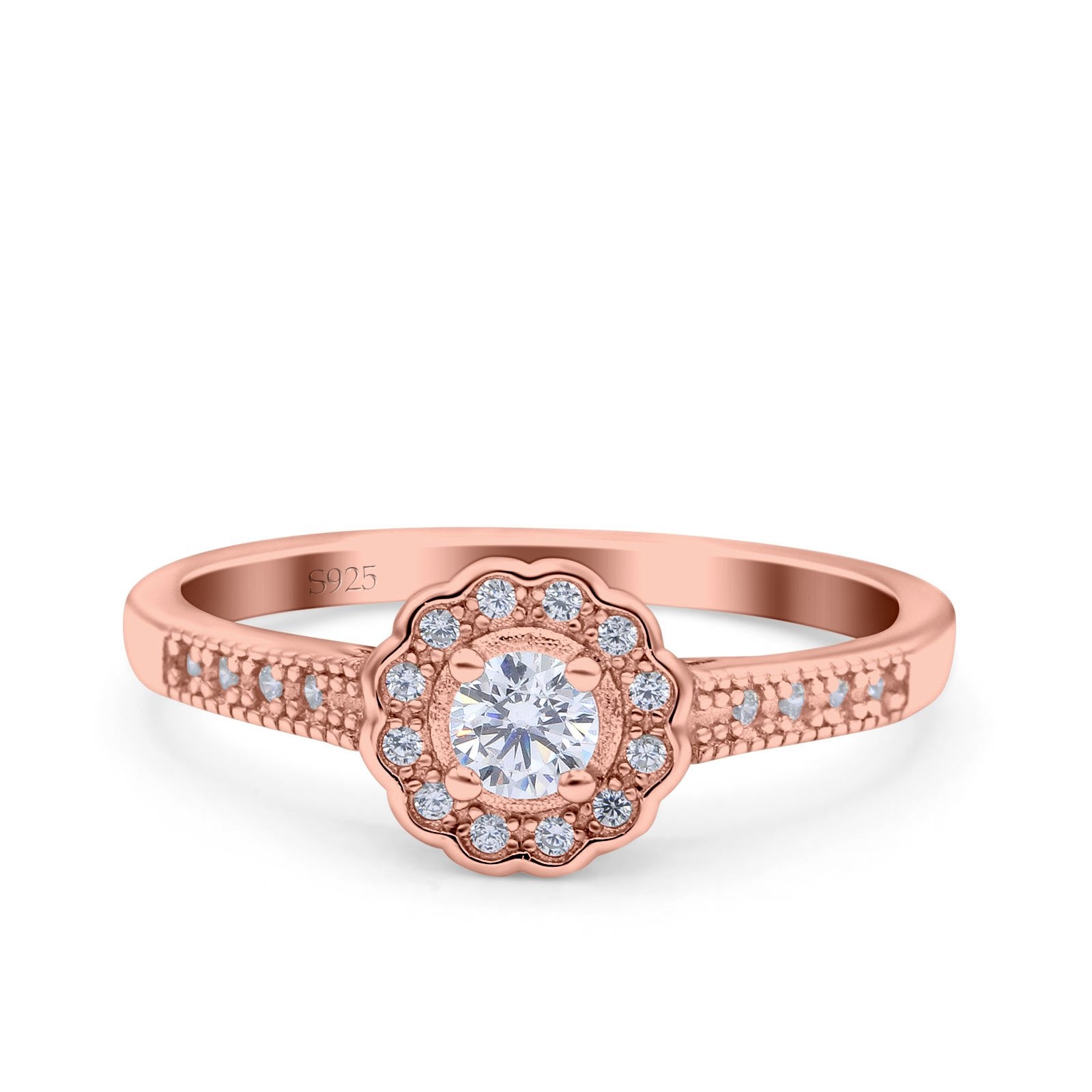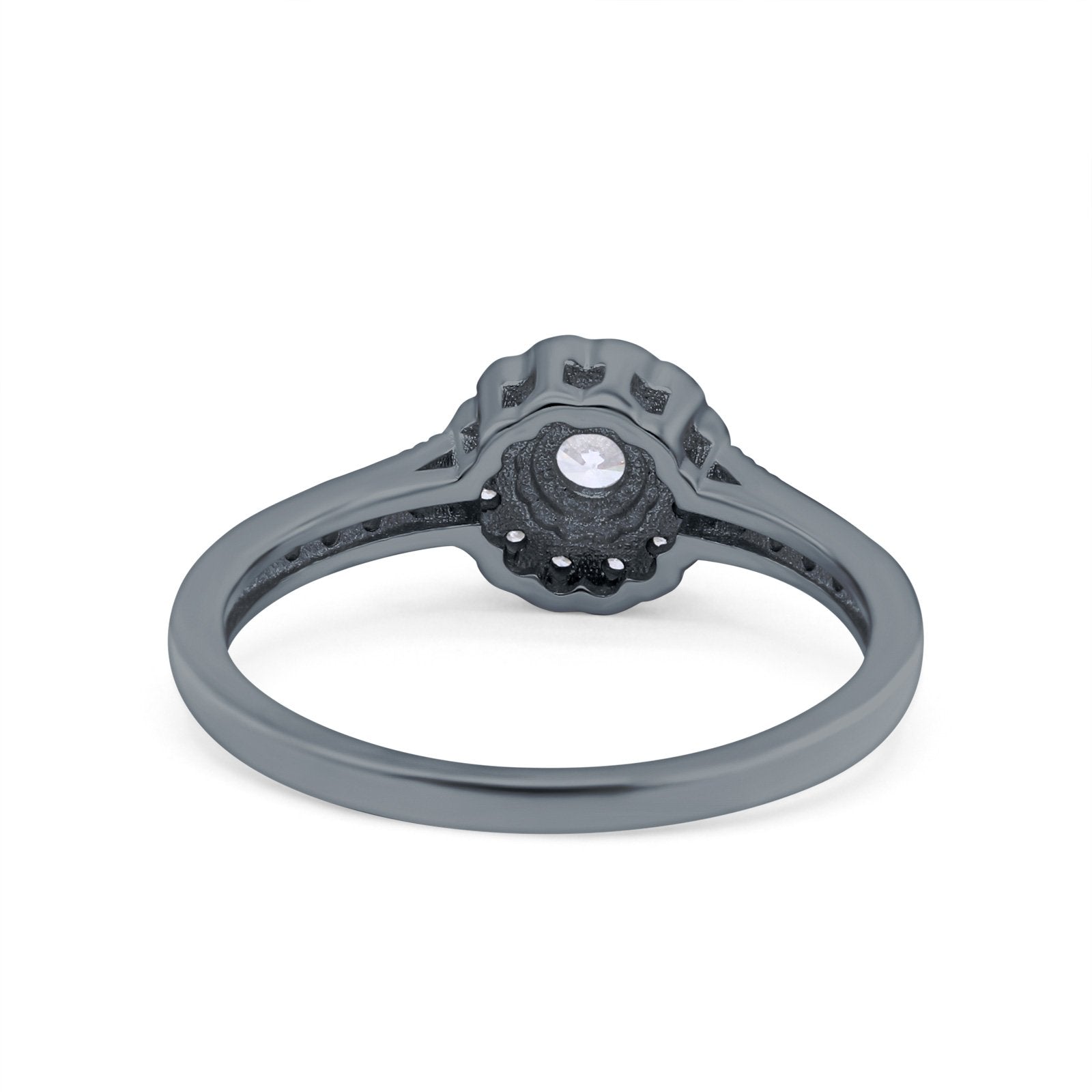 Art Deco Engagement Wedding Ring Band Round Pave Simulated Cubic Zirconia 925 Sterling Silver (6mm)