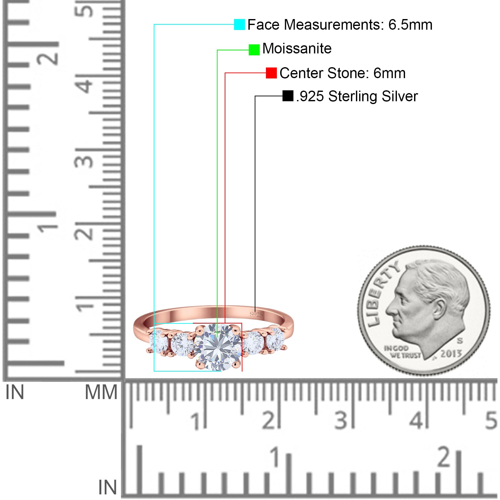 Art Deco Five Stone Round Moissanite Wedding Ring 925 Sterling Silver