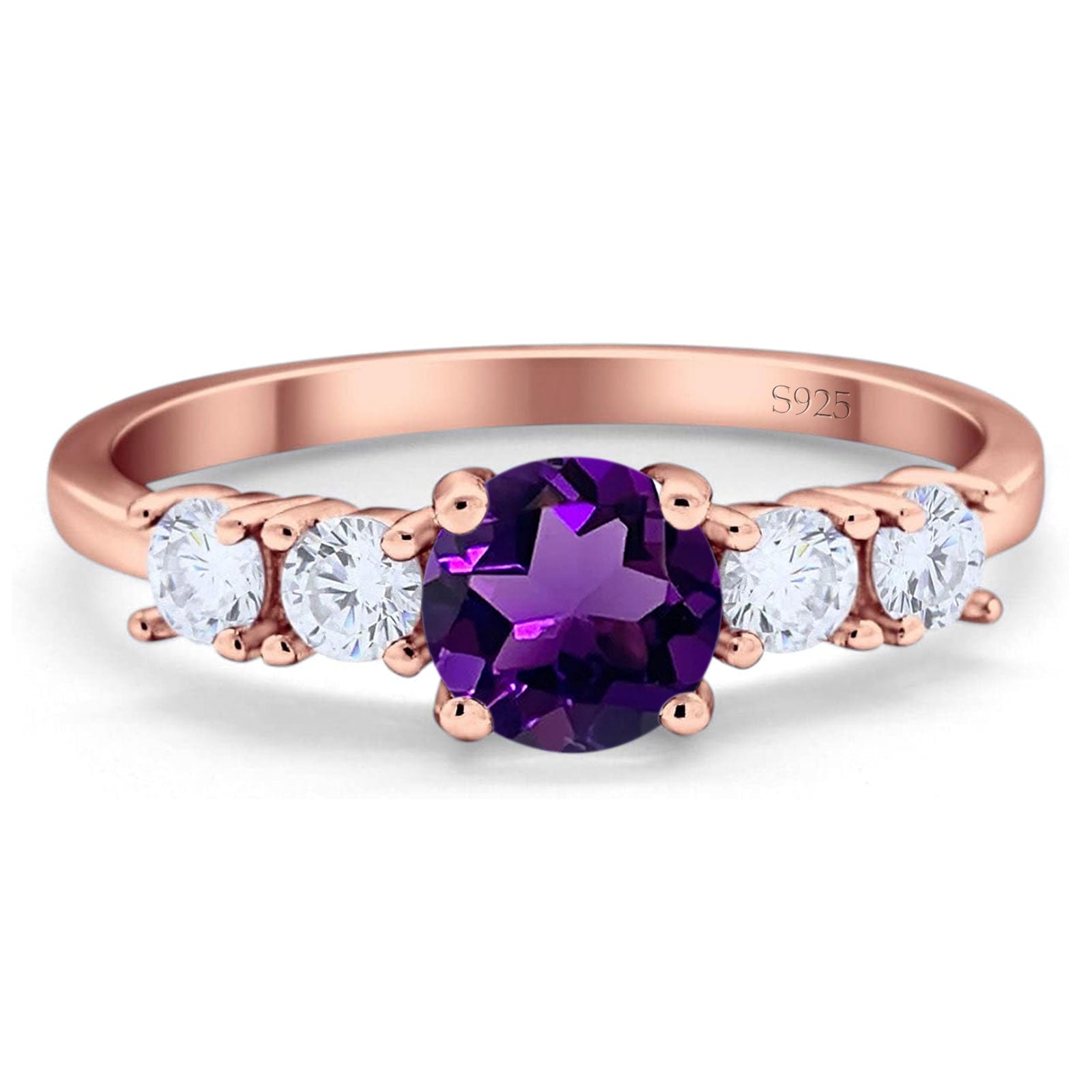 Art Deco Five Stone Round Natural Amethyst Wedding Ring 925 Sterling Silver