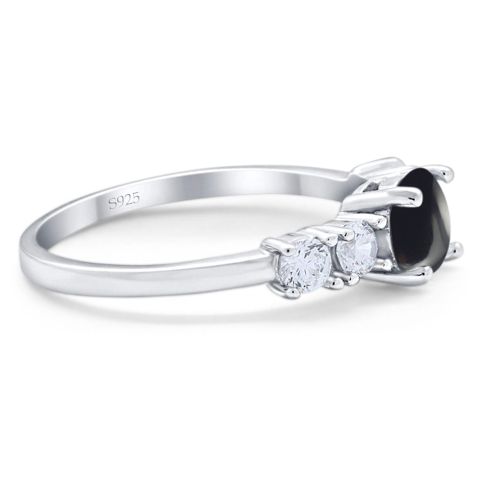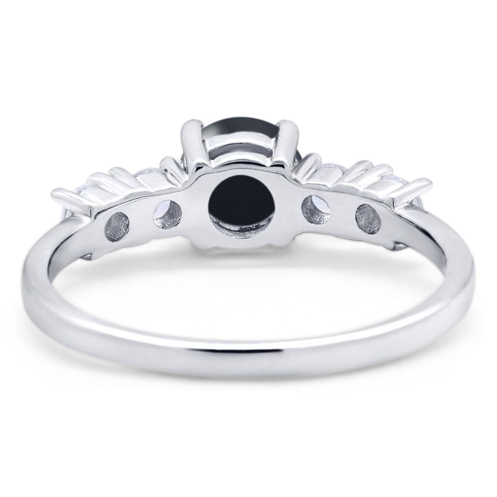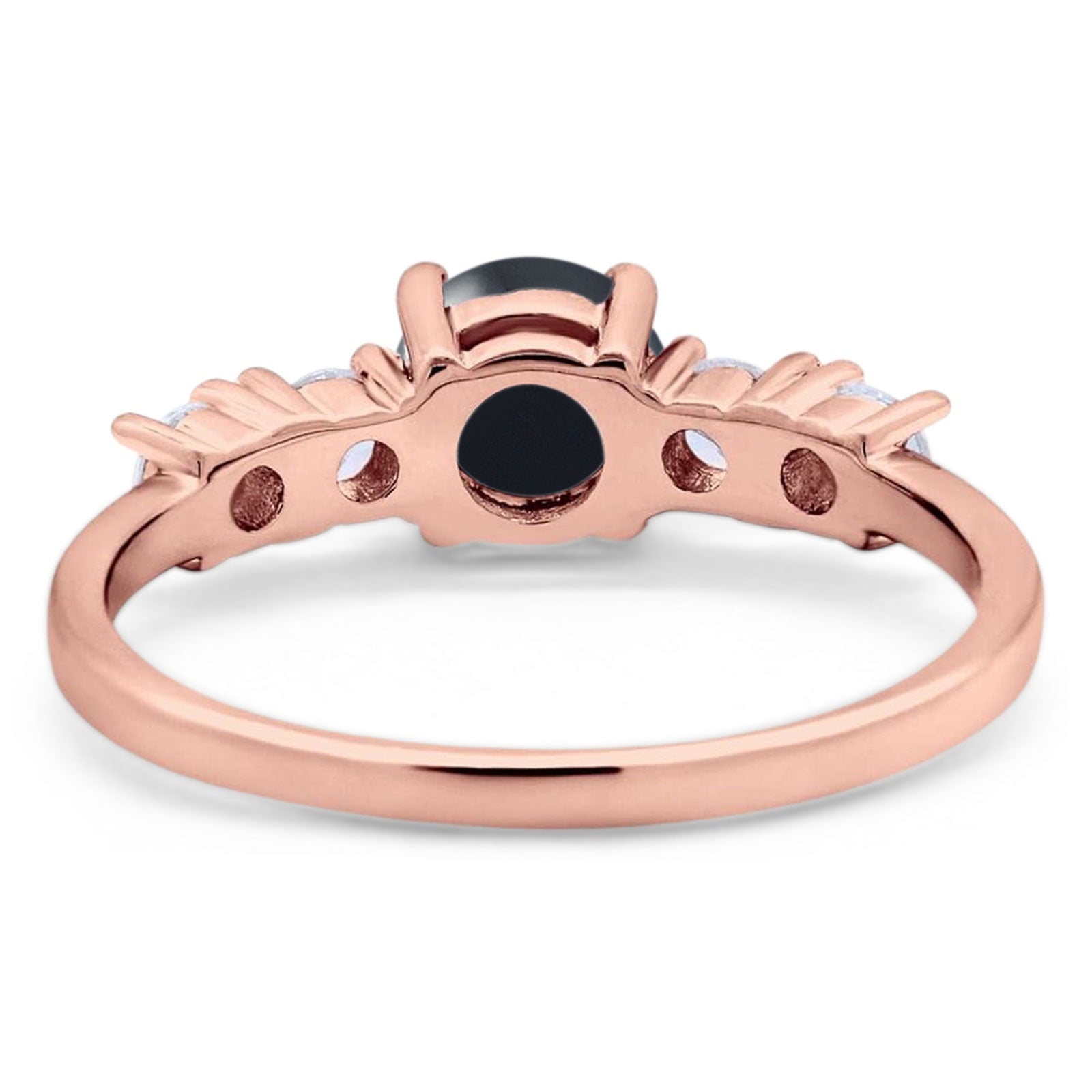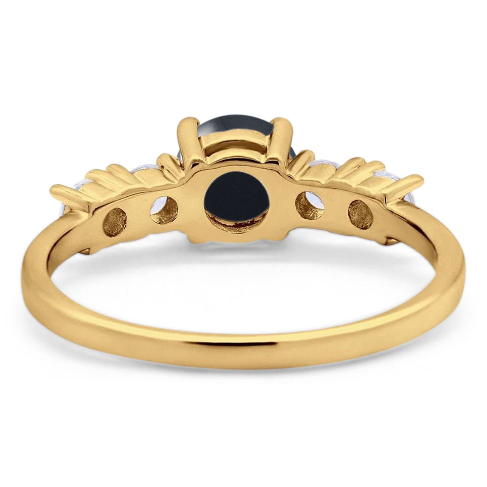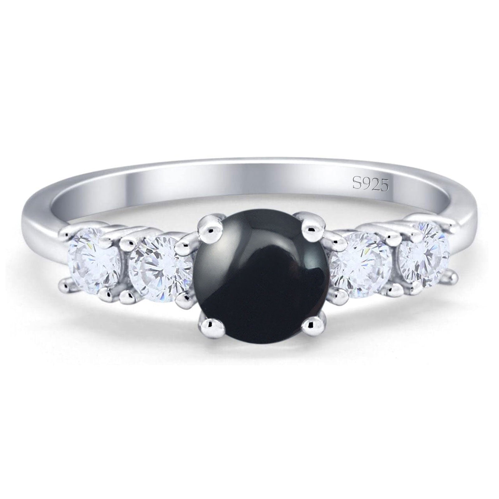 Art Deco Five Stone Round Natural Black Onyx Wedding Ring 925 Sterling Silver