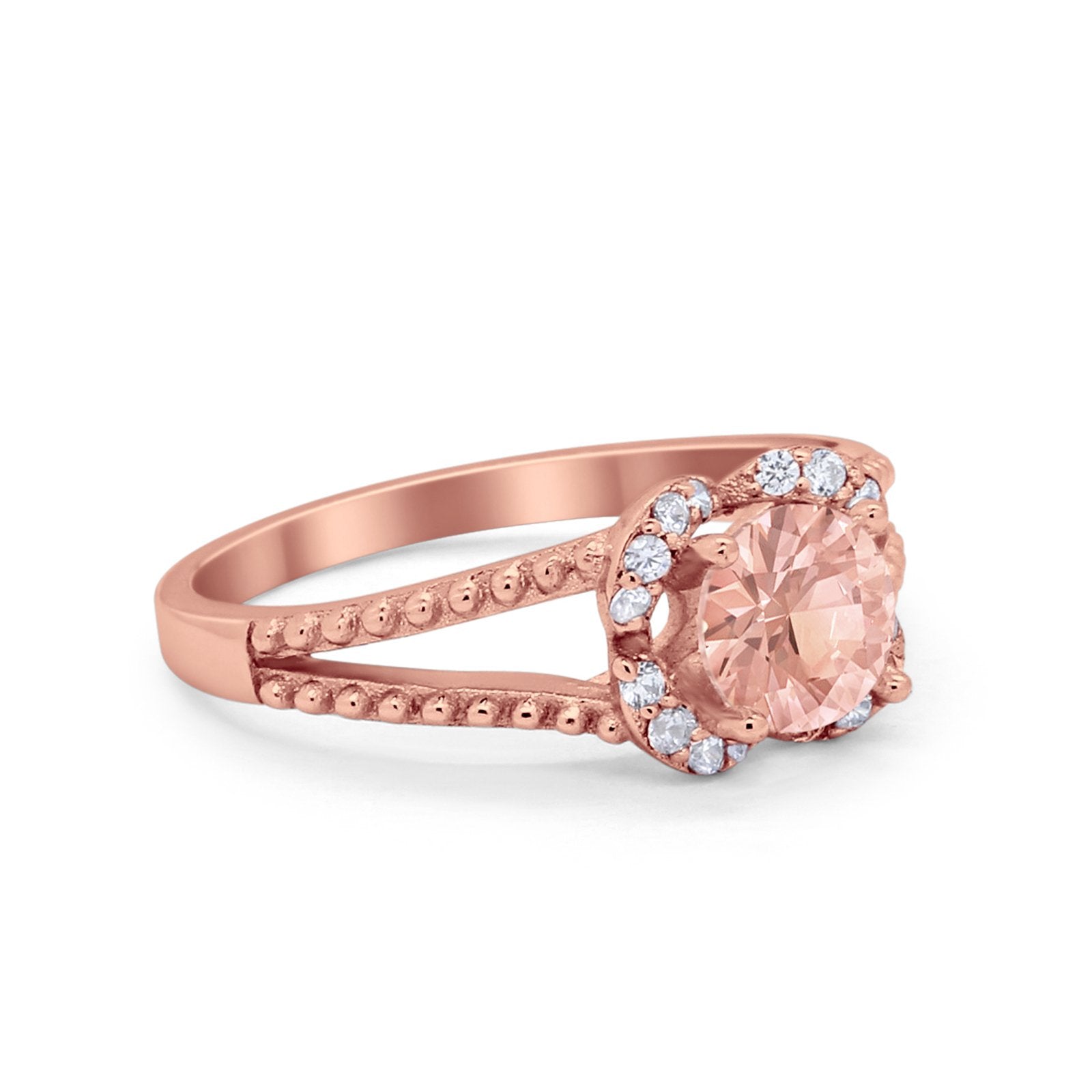 Art Deco Halo Wedding Engagement Ring Round Cubic Zirconia 925 Sterling Silver