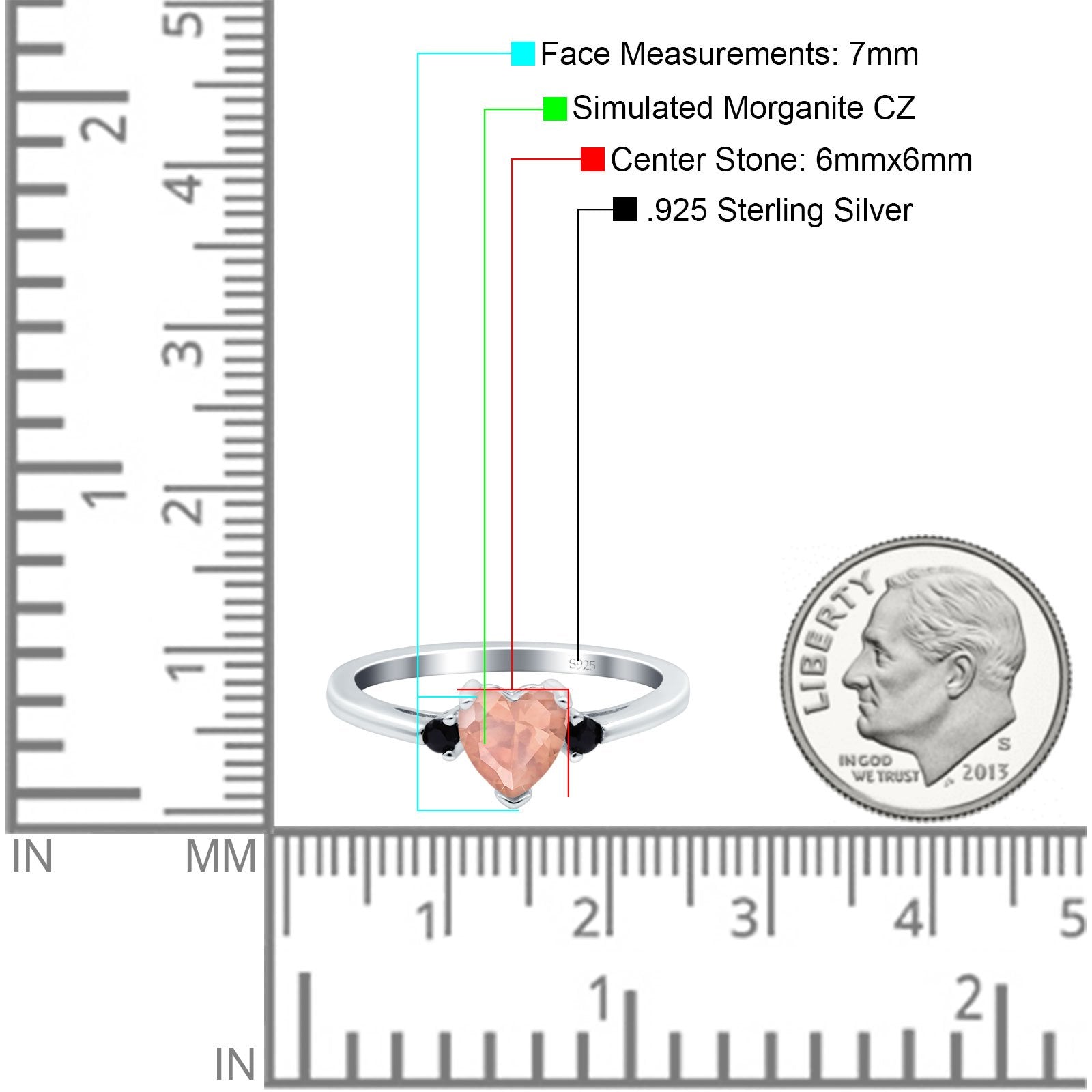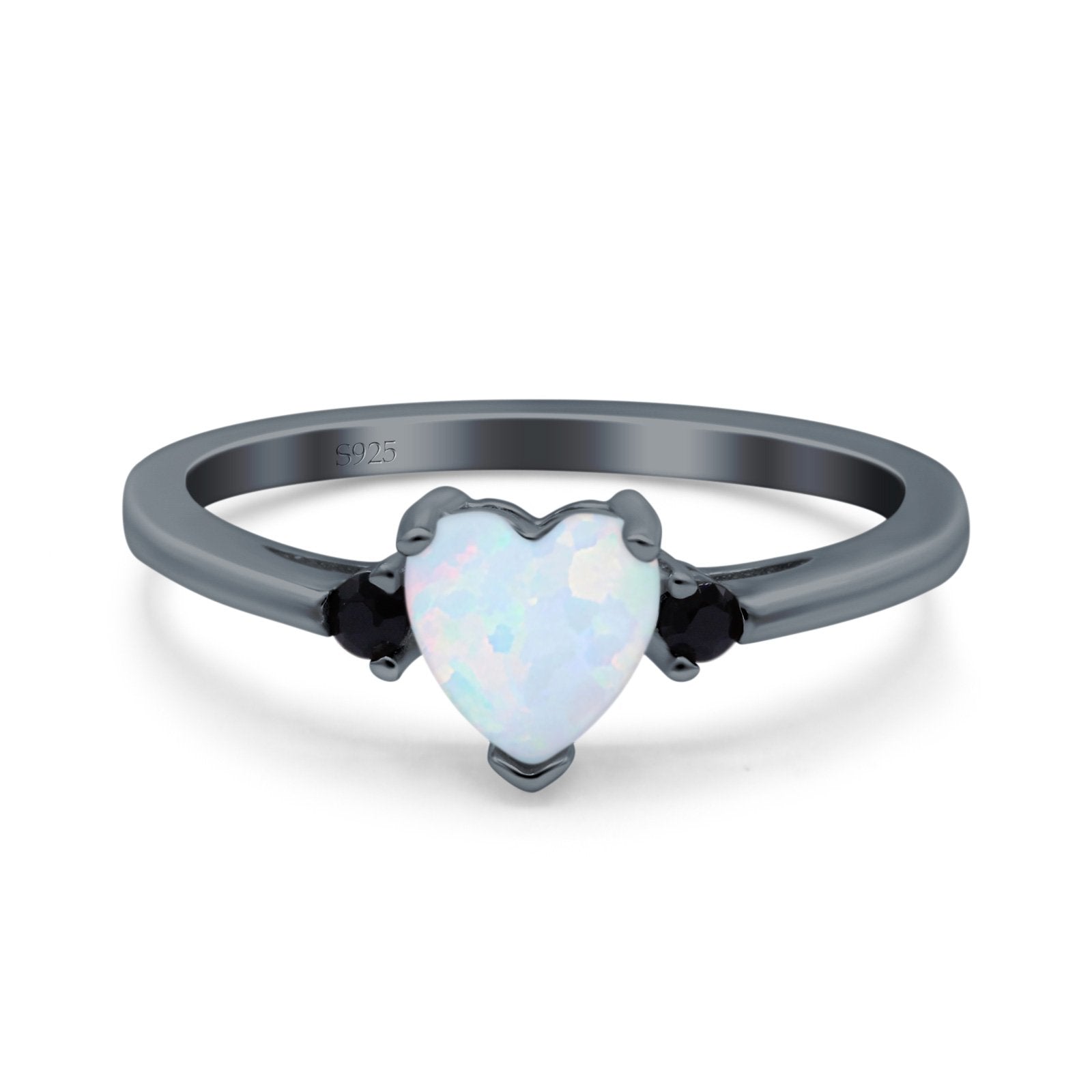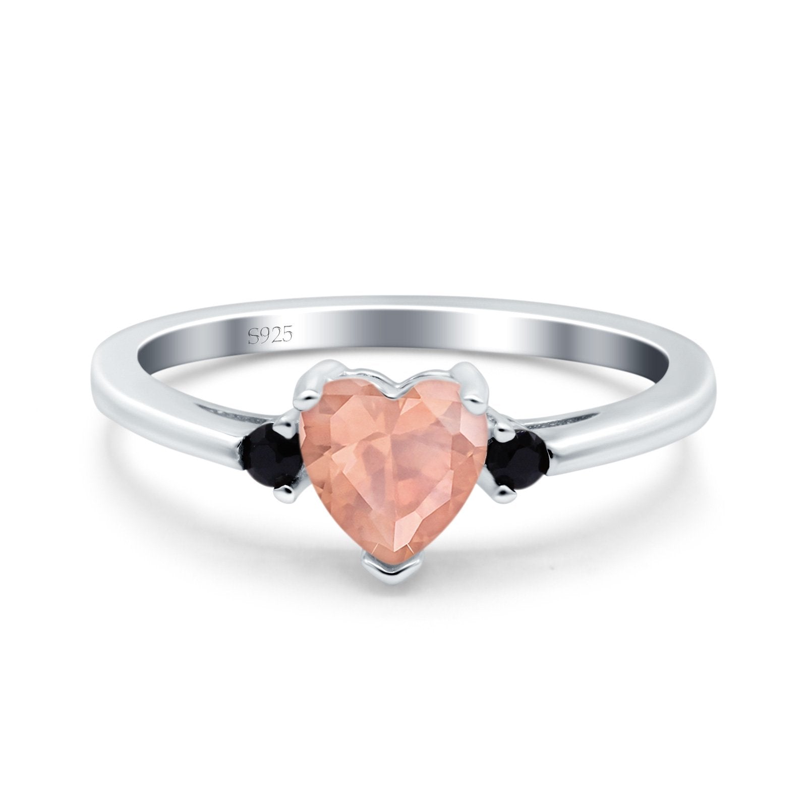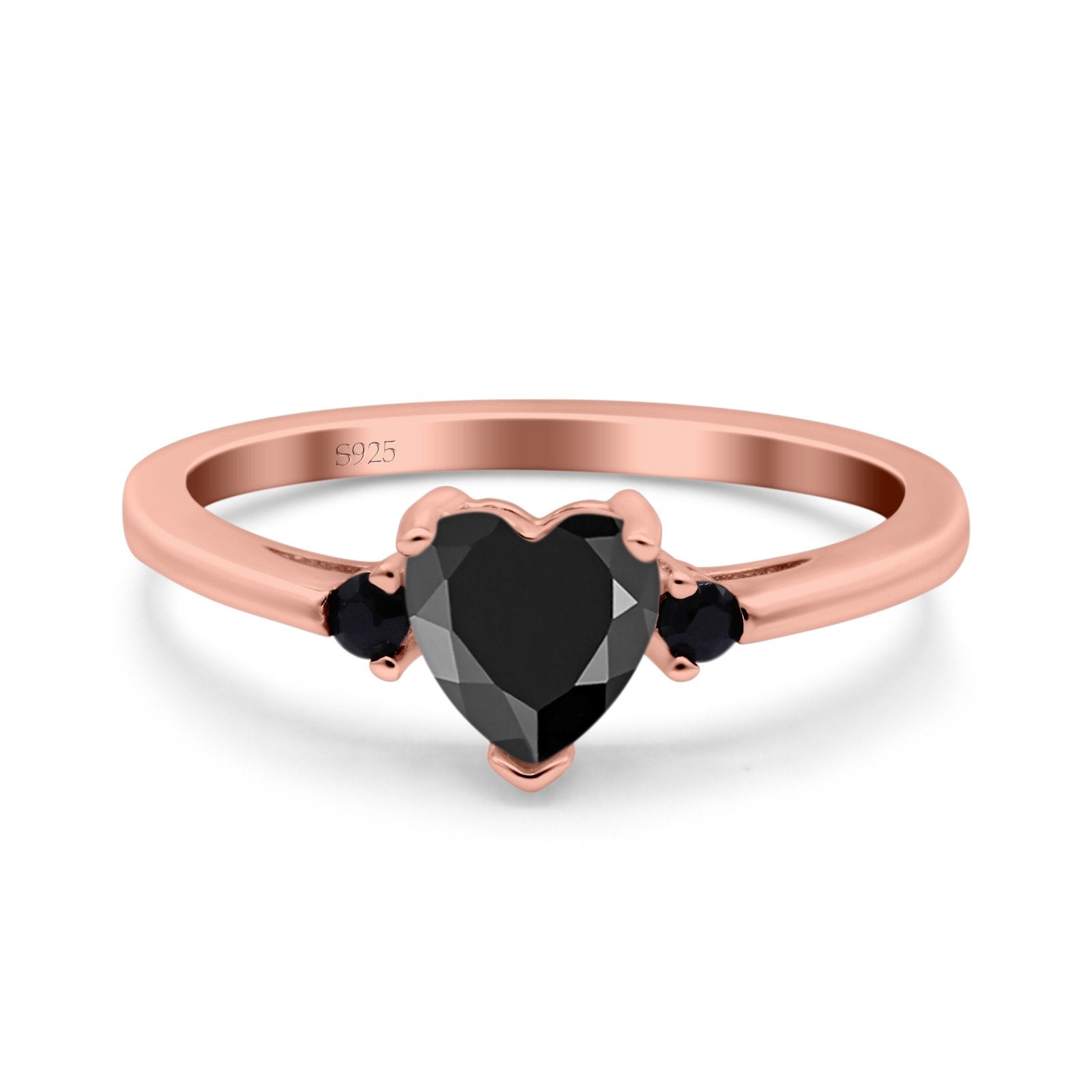 Art Deco Heart Three Stone Wedding Bridal Ring Round Black Simulated Cubic Zirconia 925 Sterling Silver