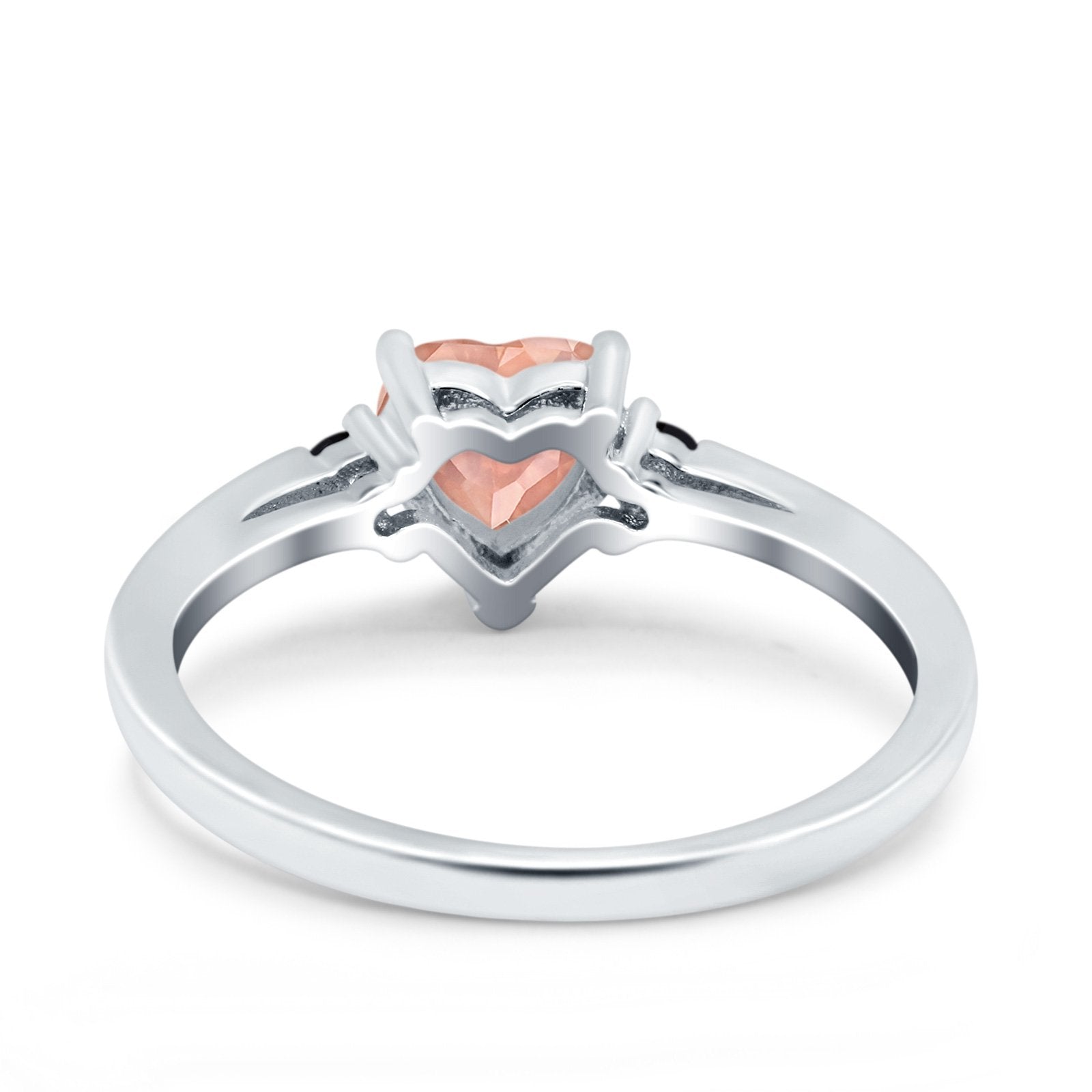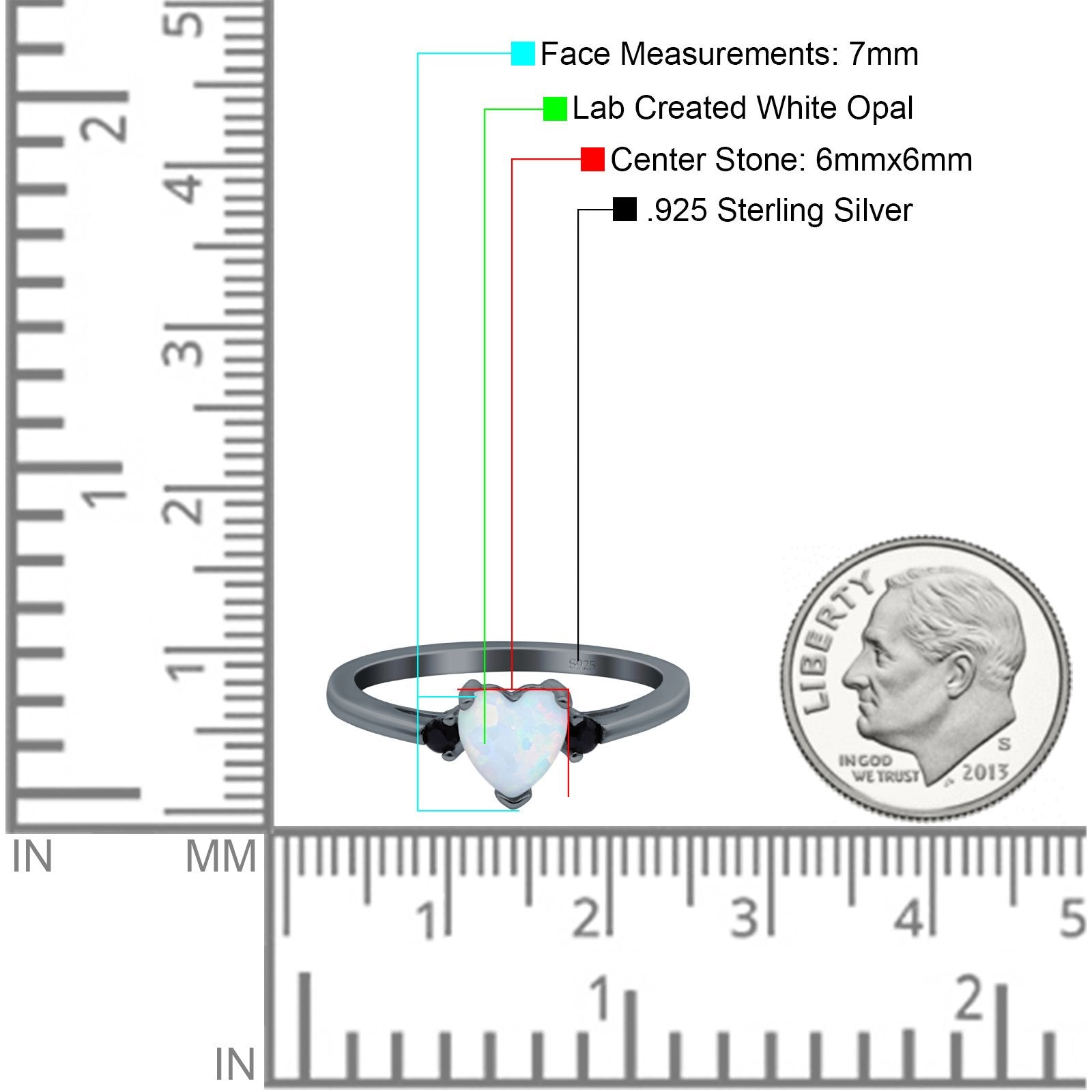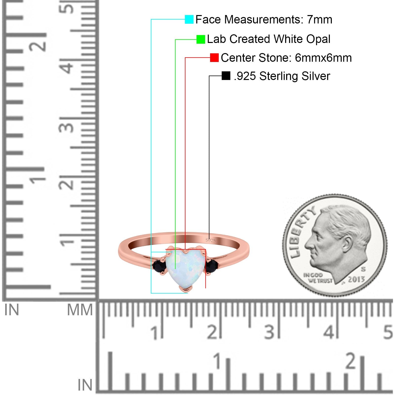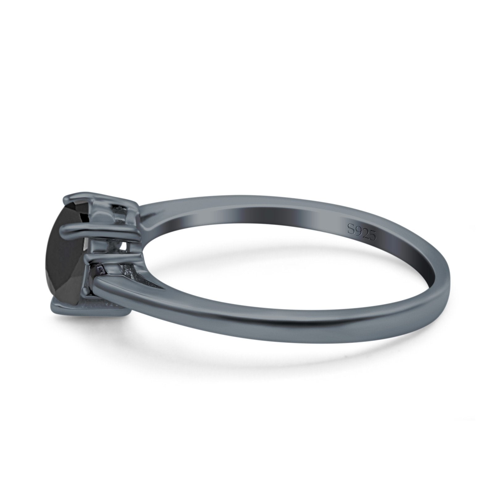 Art Deco Heart Three Stone Wedding Bridal Ring Round Black Simulated Cubic Zirconia 925 Sterling Silver