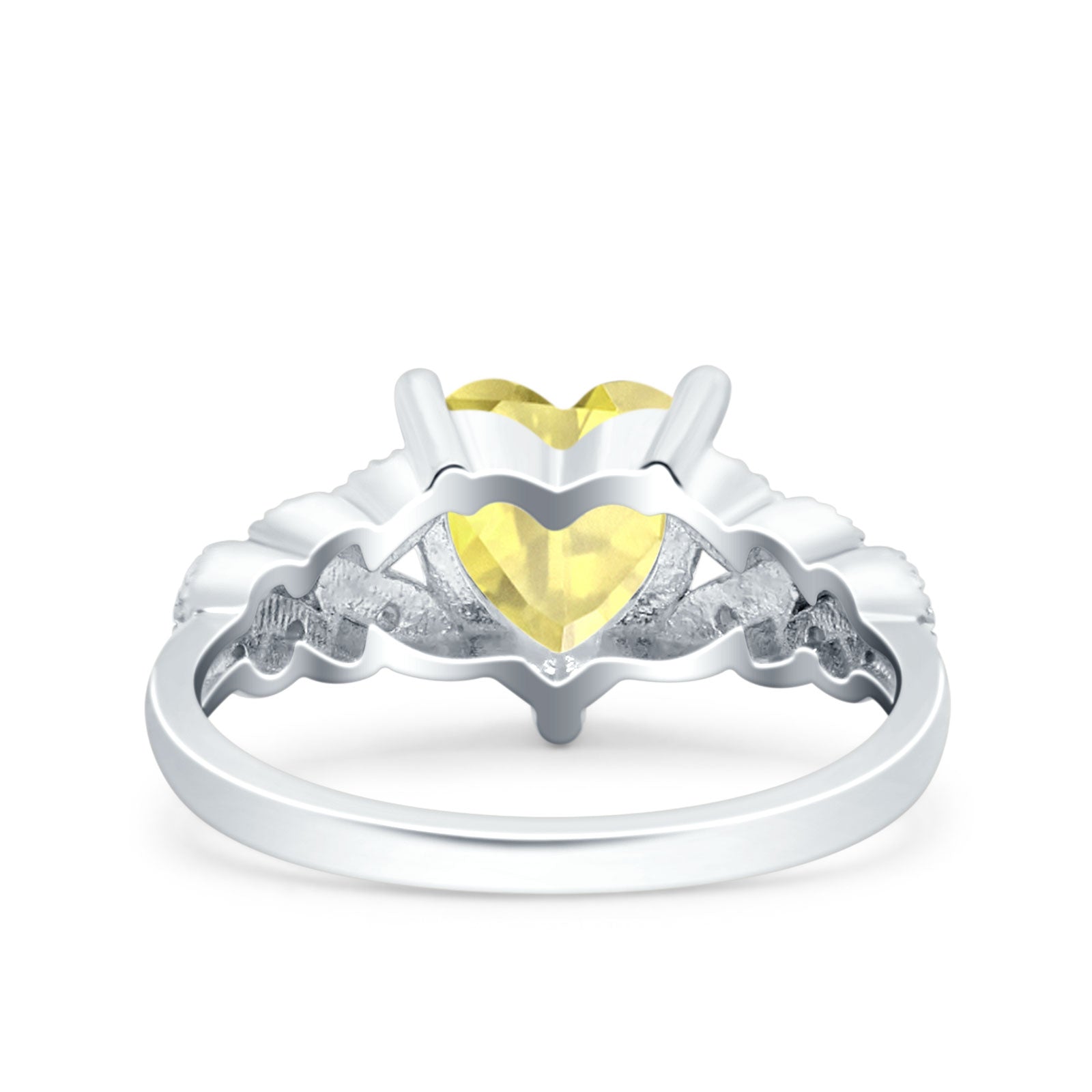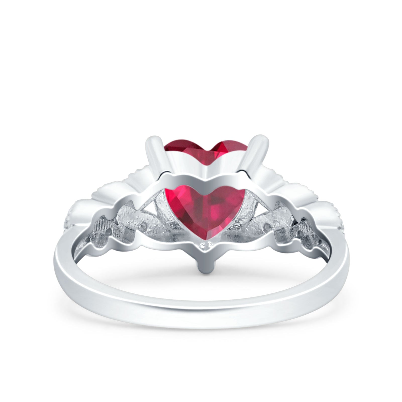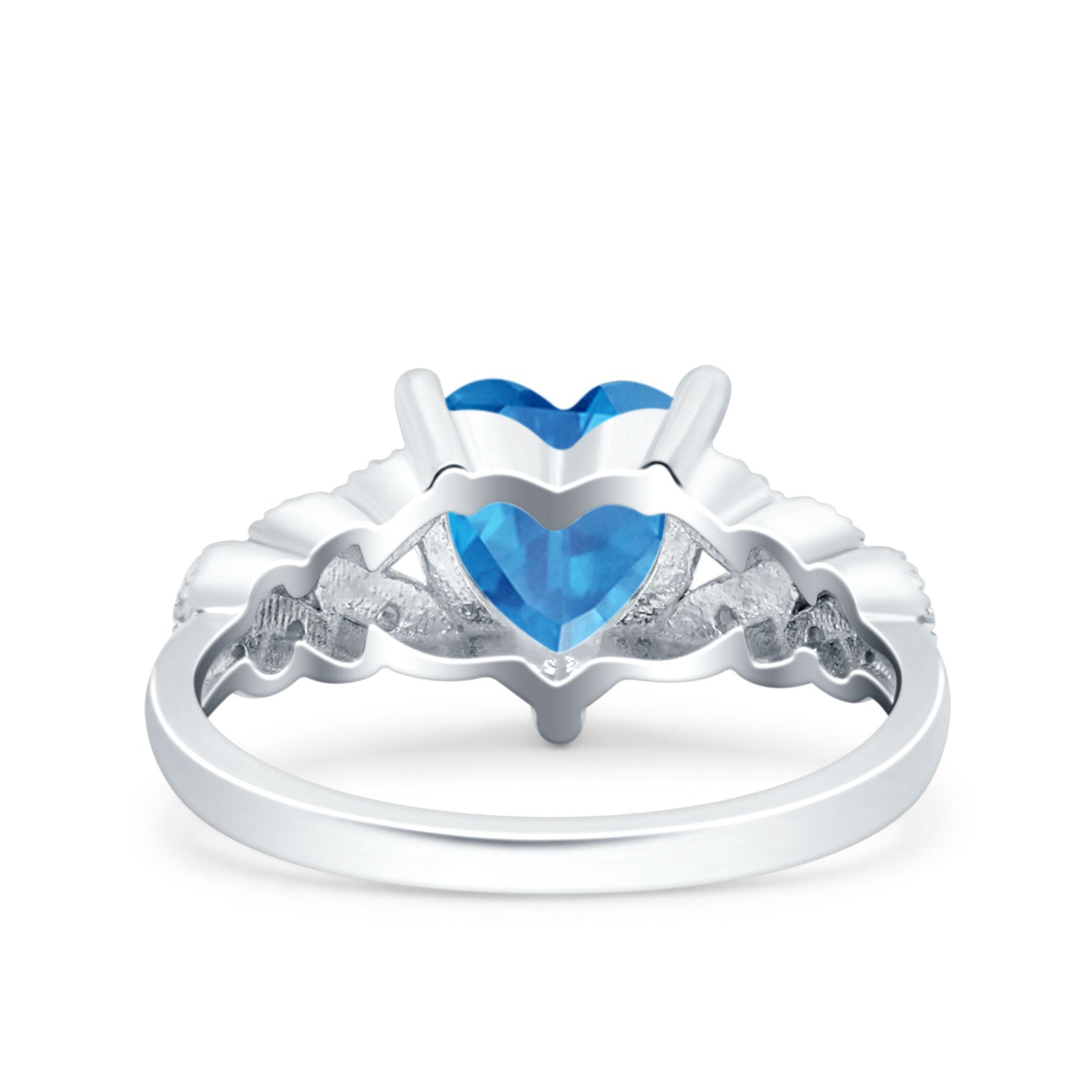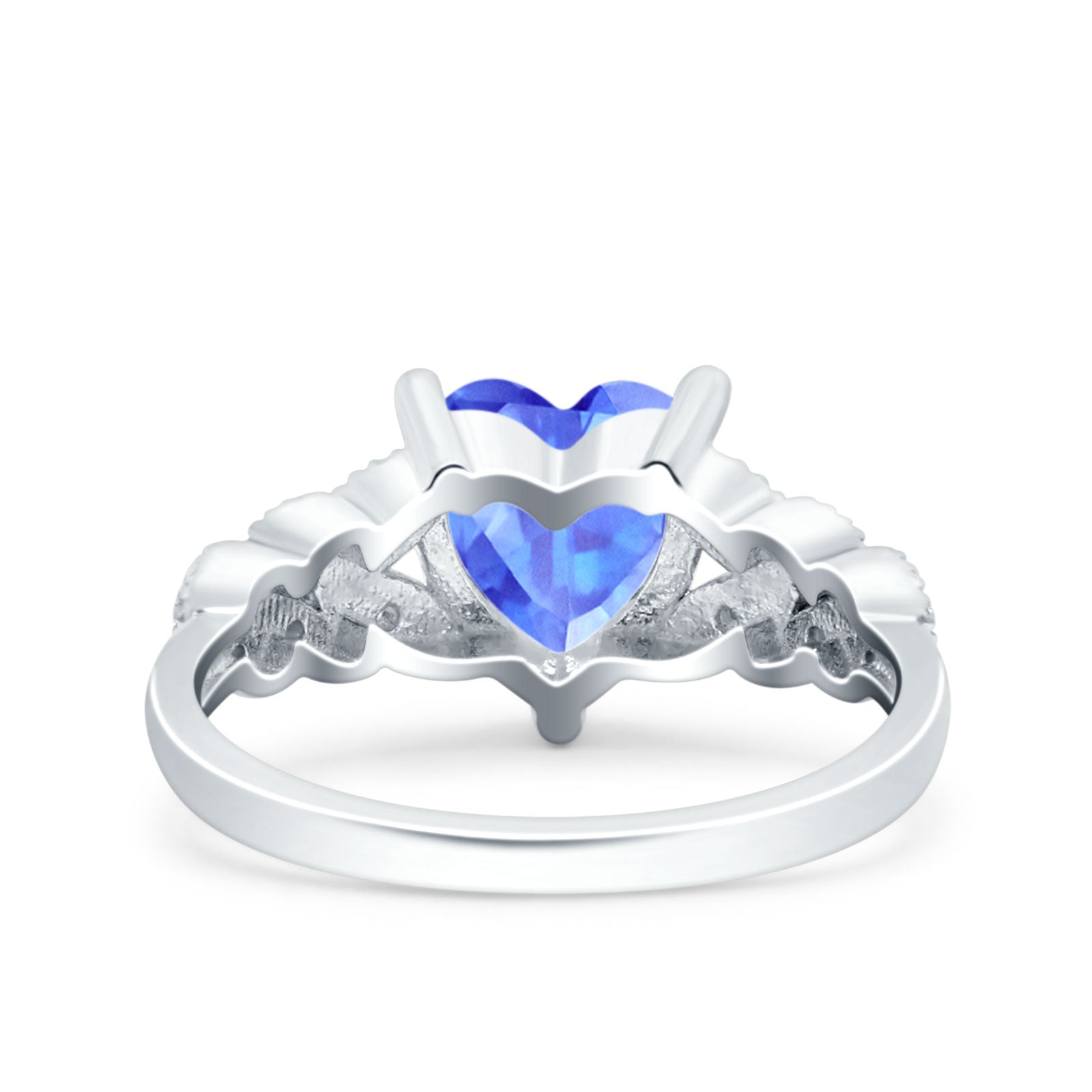 Art Deco Heart Wedding Engagement Bridal Ring Simulated Cubic Zirconia 925 Sterling Silver