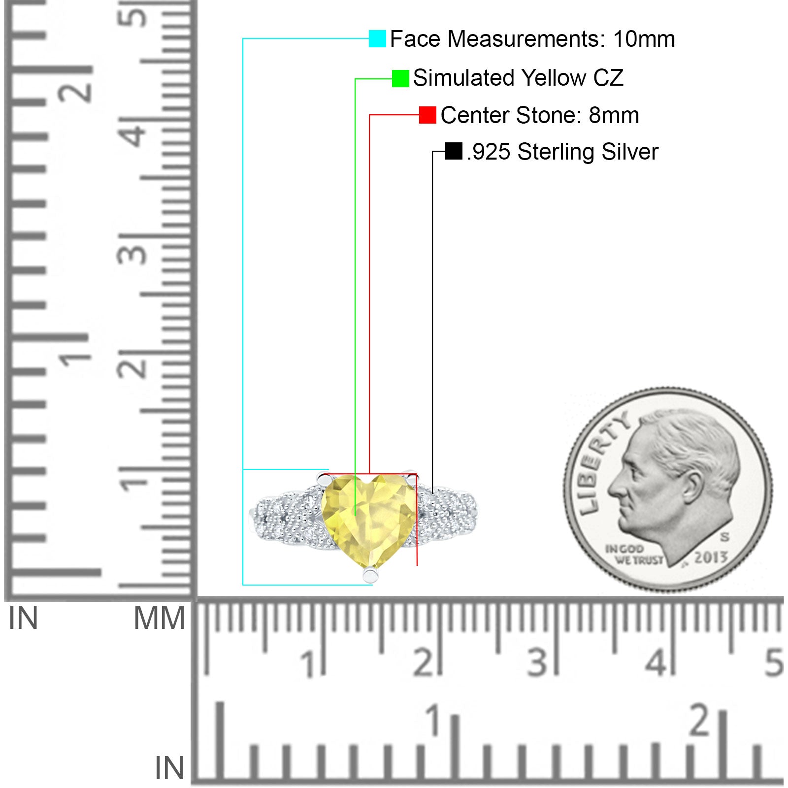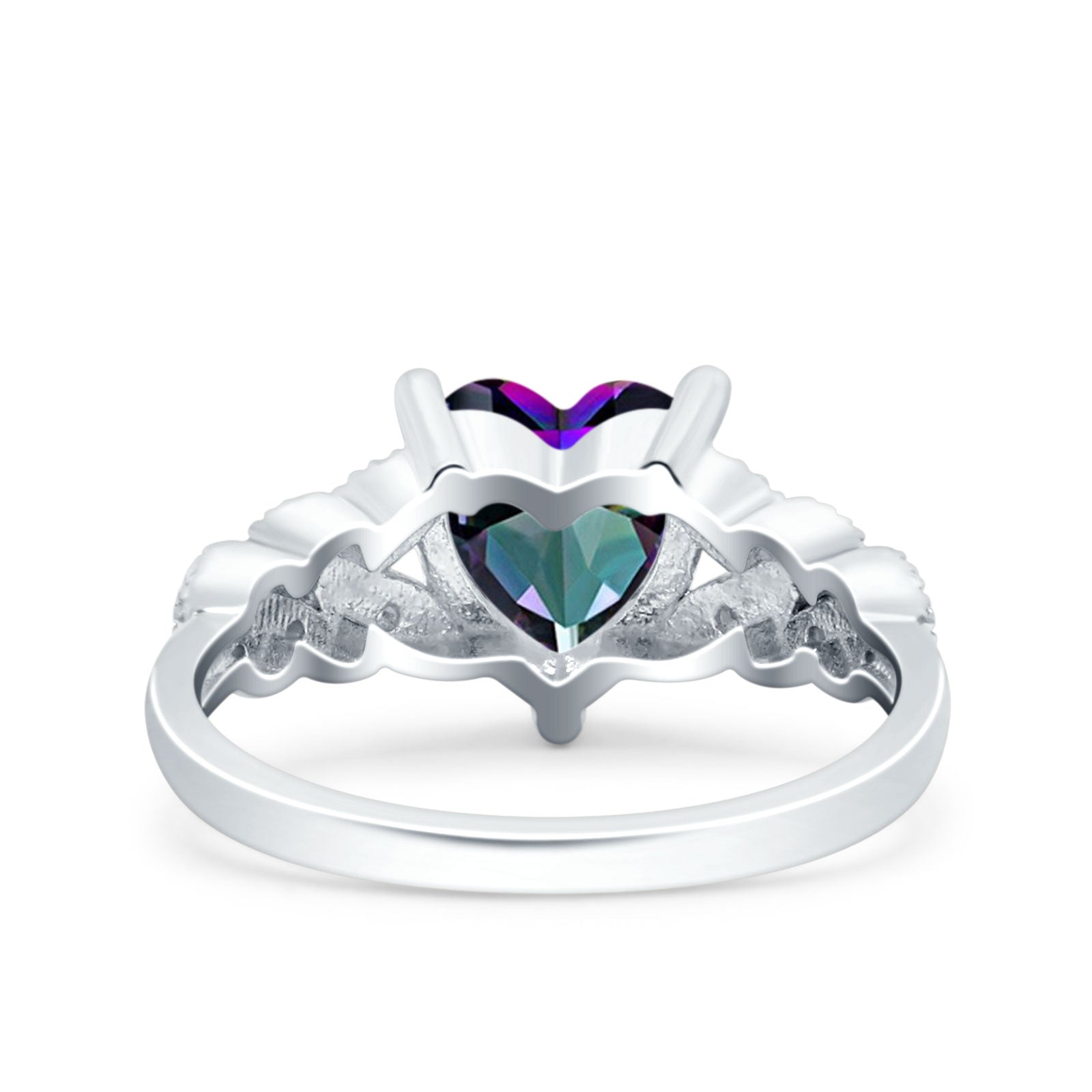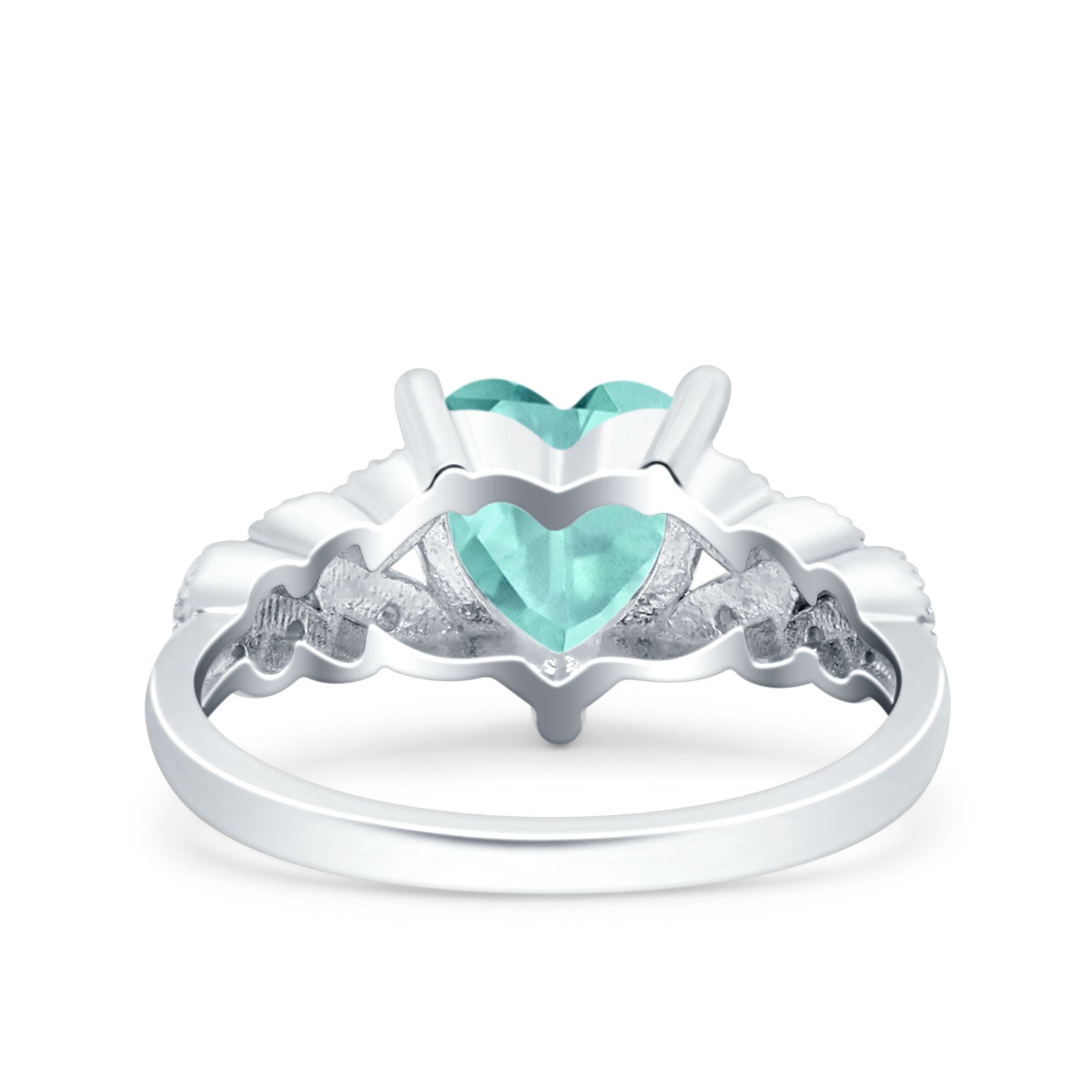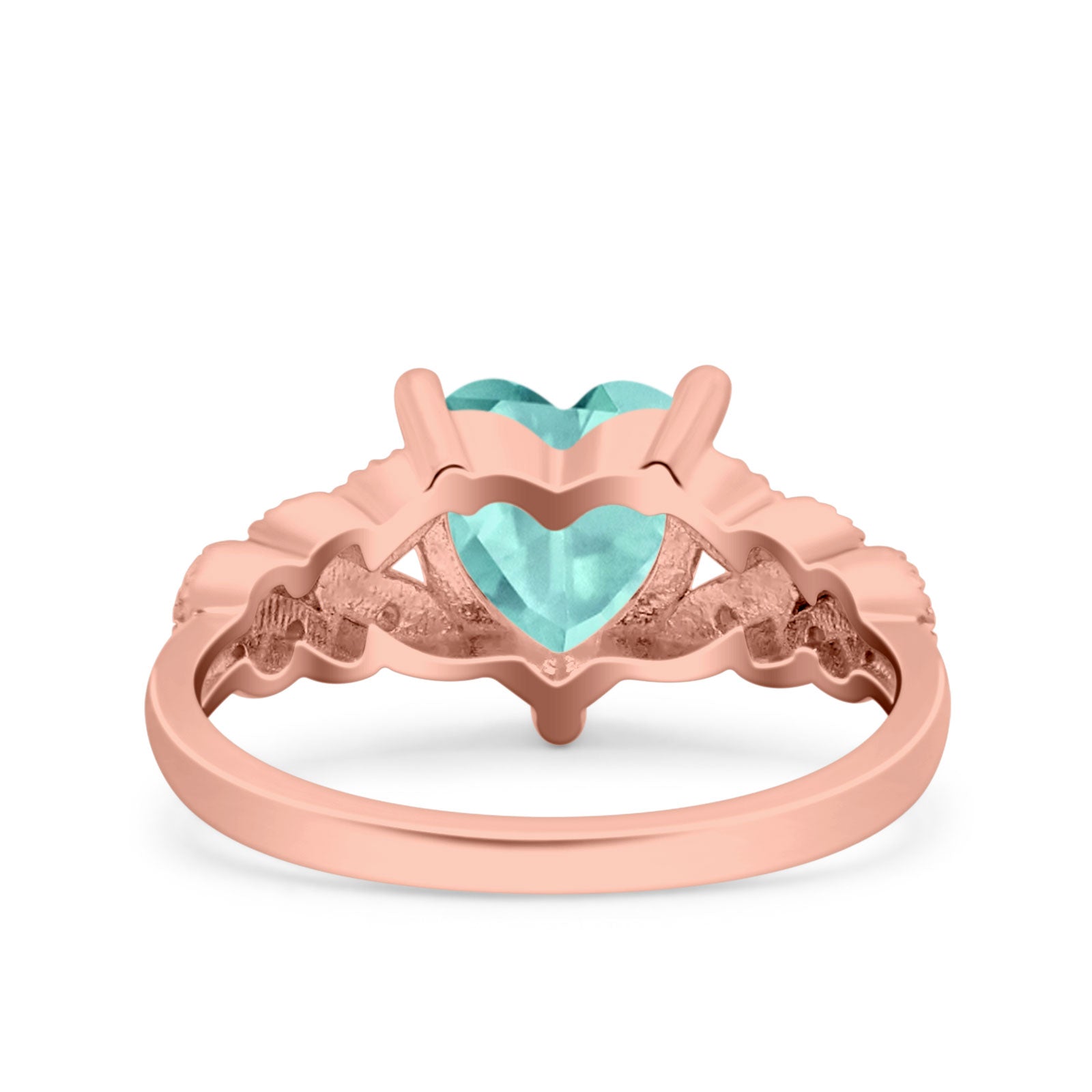 Art Deco Heart Wedding Engagement Bridal Ring Simulated Cubic Zirconia 925 Sterling Silver