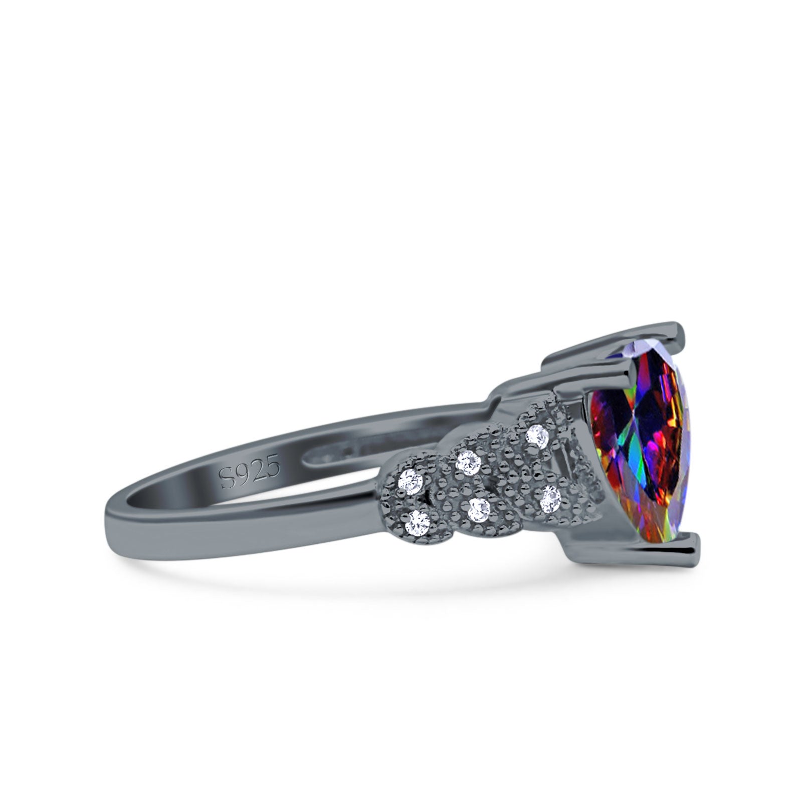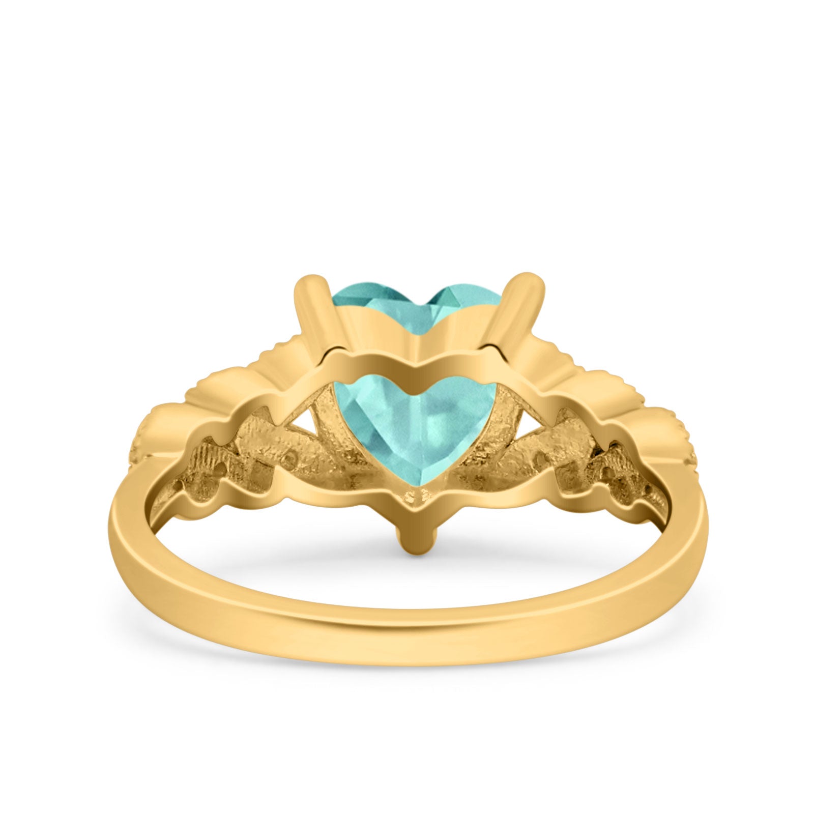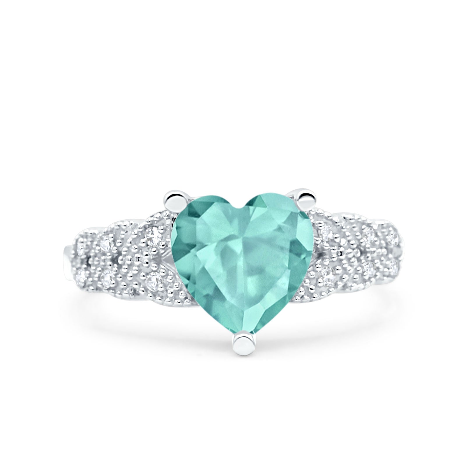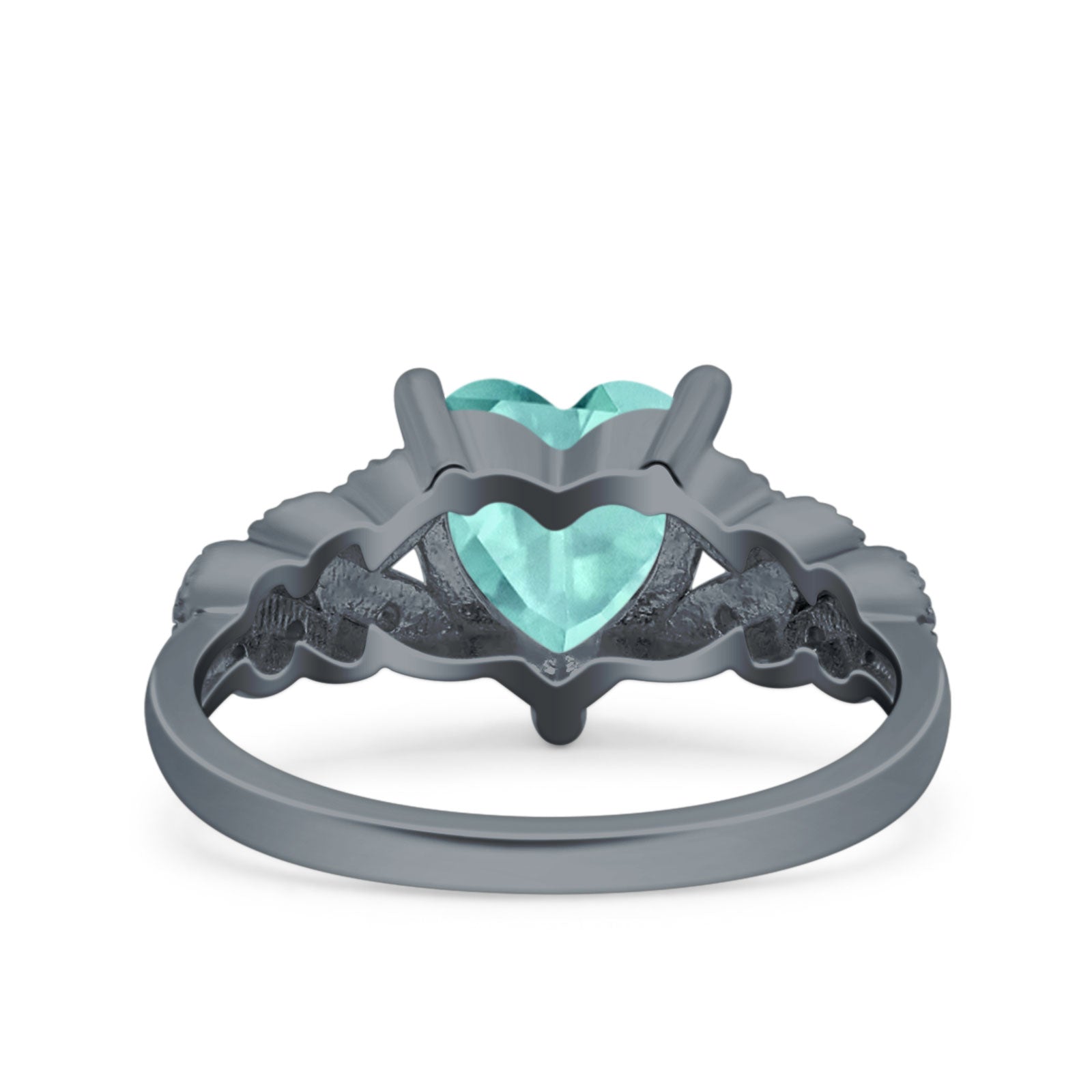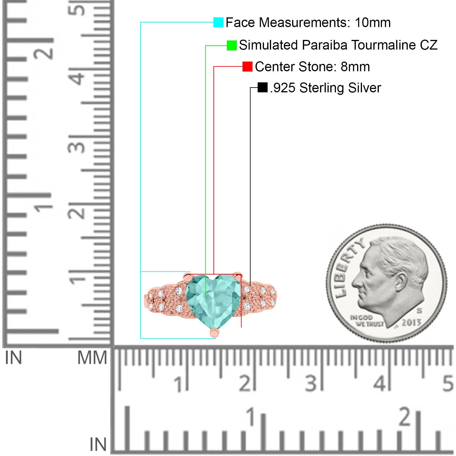 Art Deco Heart Wedding Engagement Bridal Ring Simulated Cubic Zirconia 925 Sterling Silver