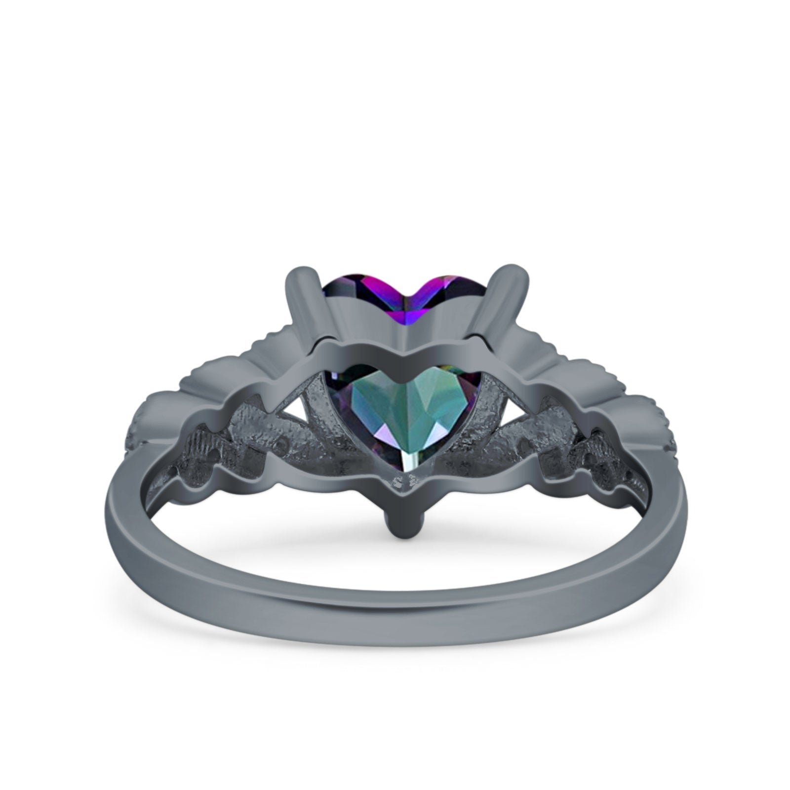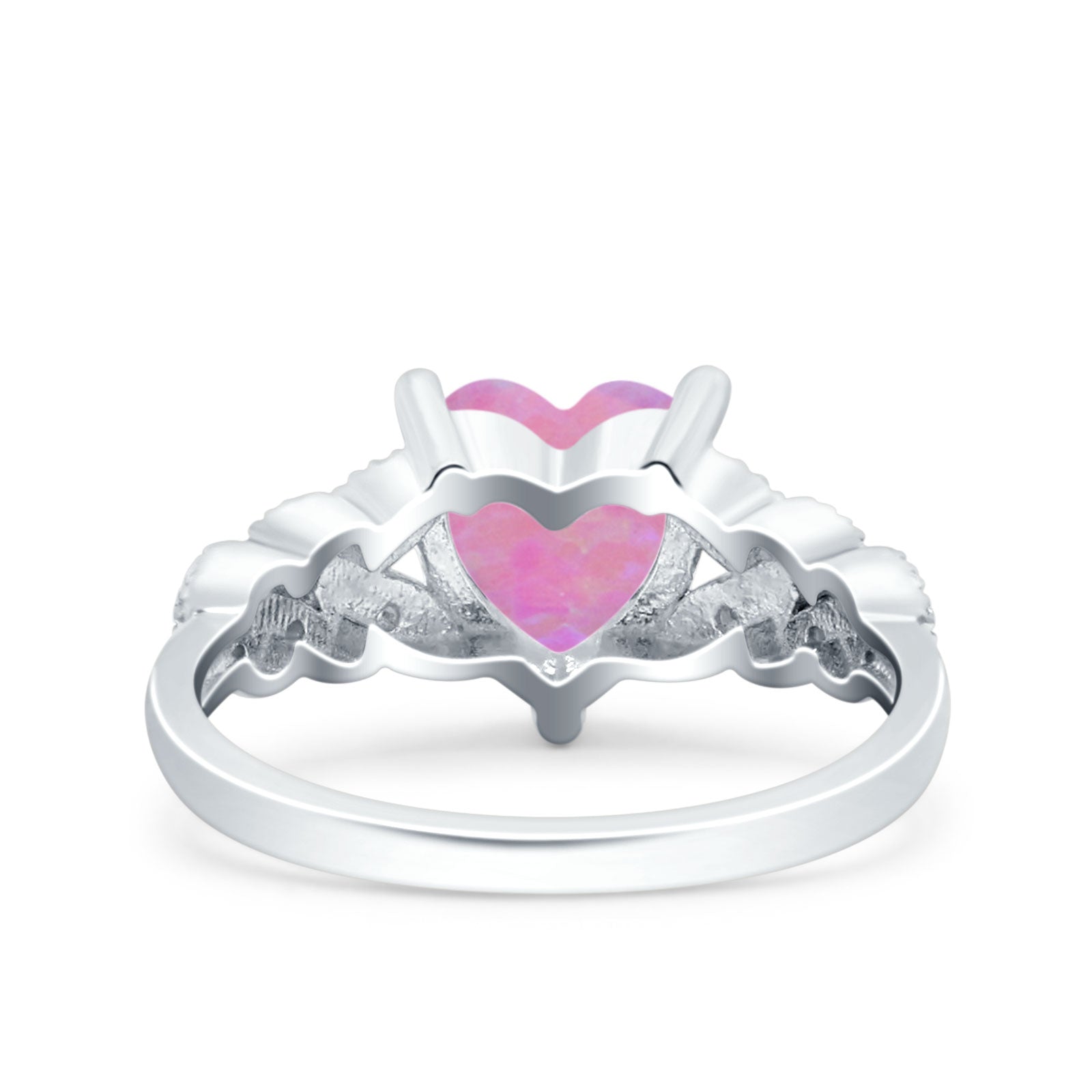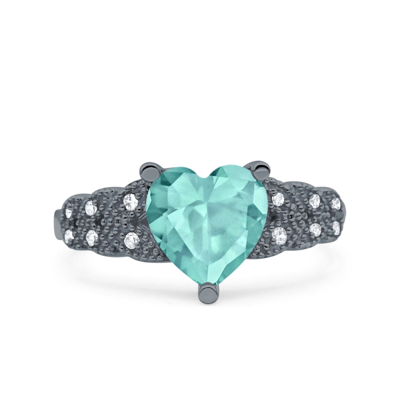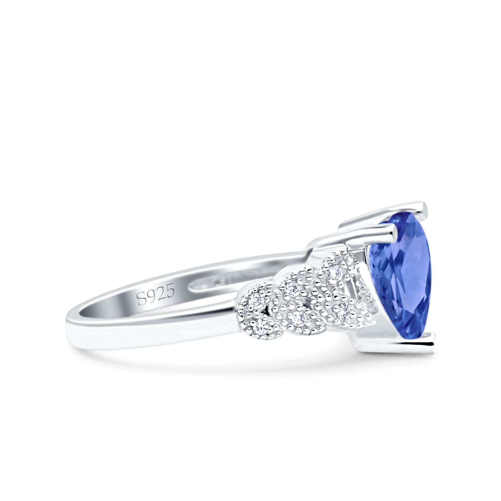 Art Deco Heart Wedding Engagement Bridal Ring Simulated Cubic Zirconia 925 Sterling Silver