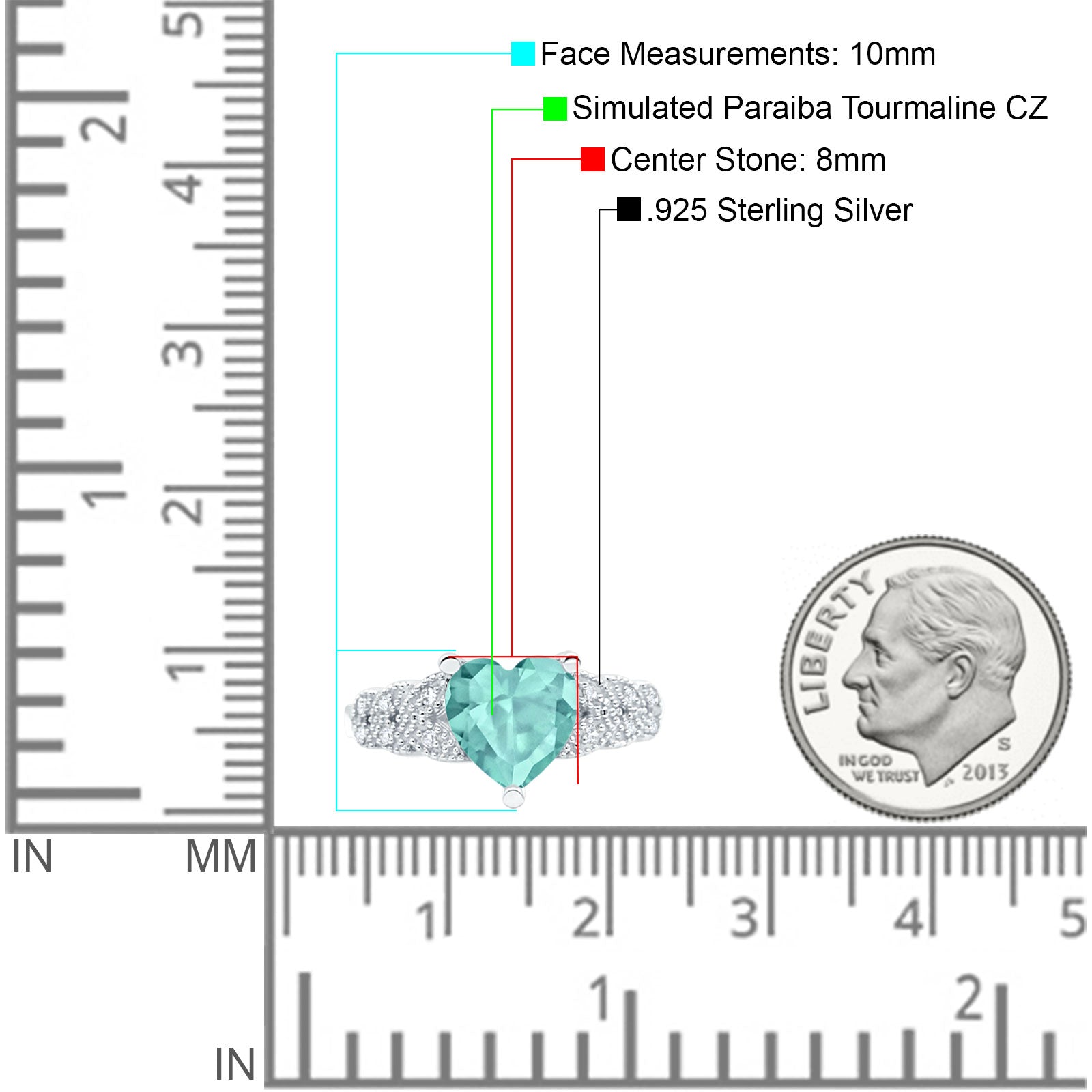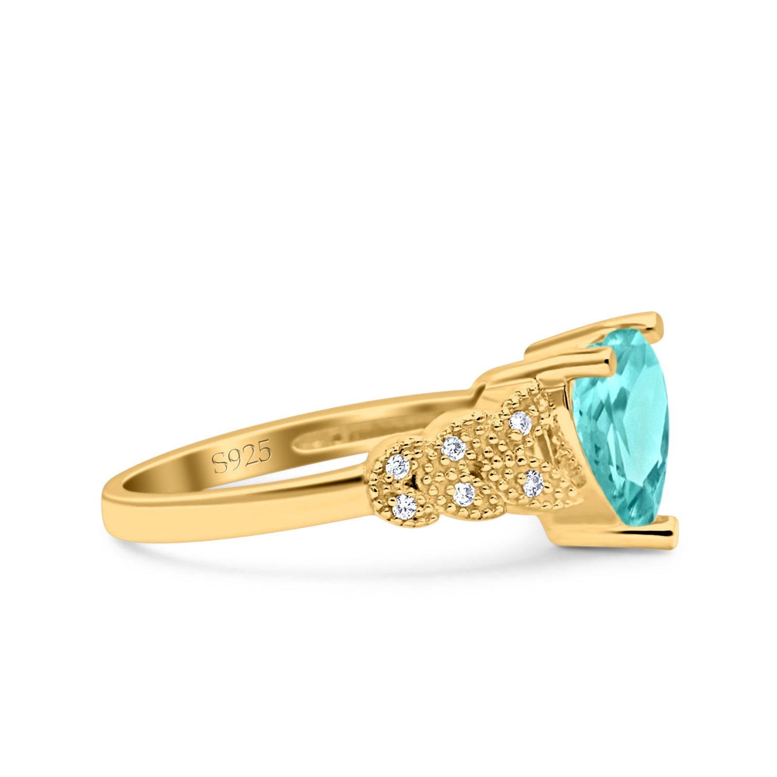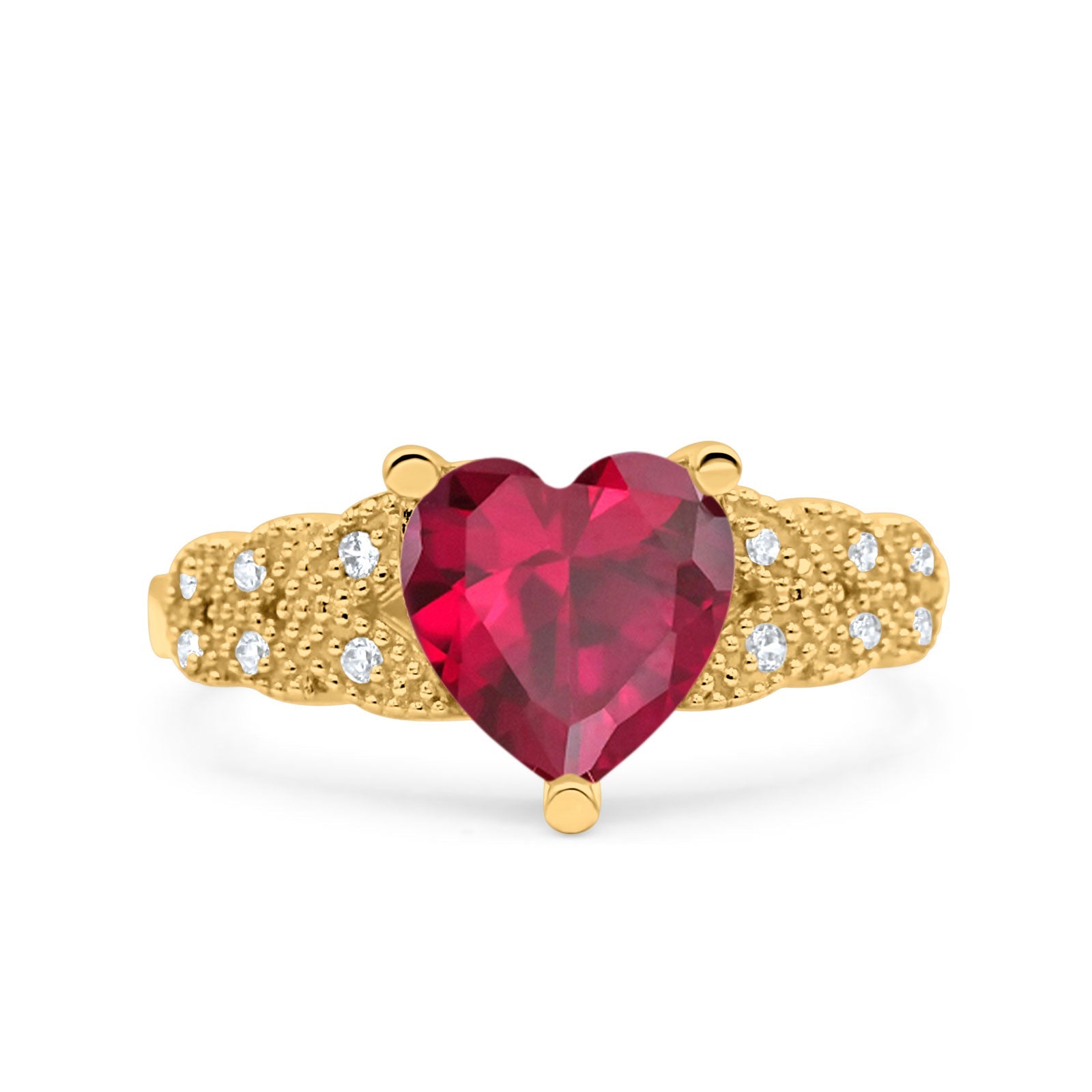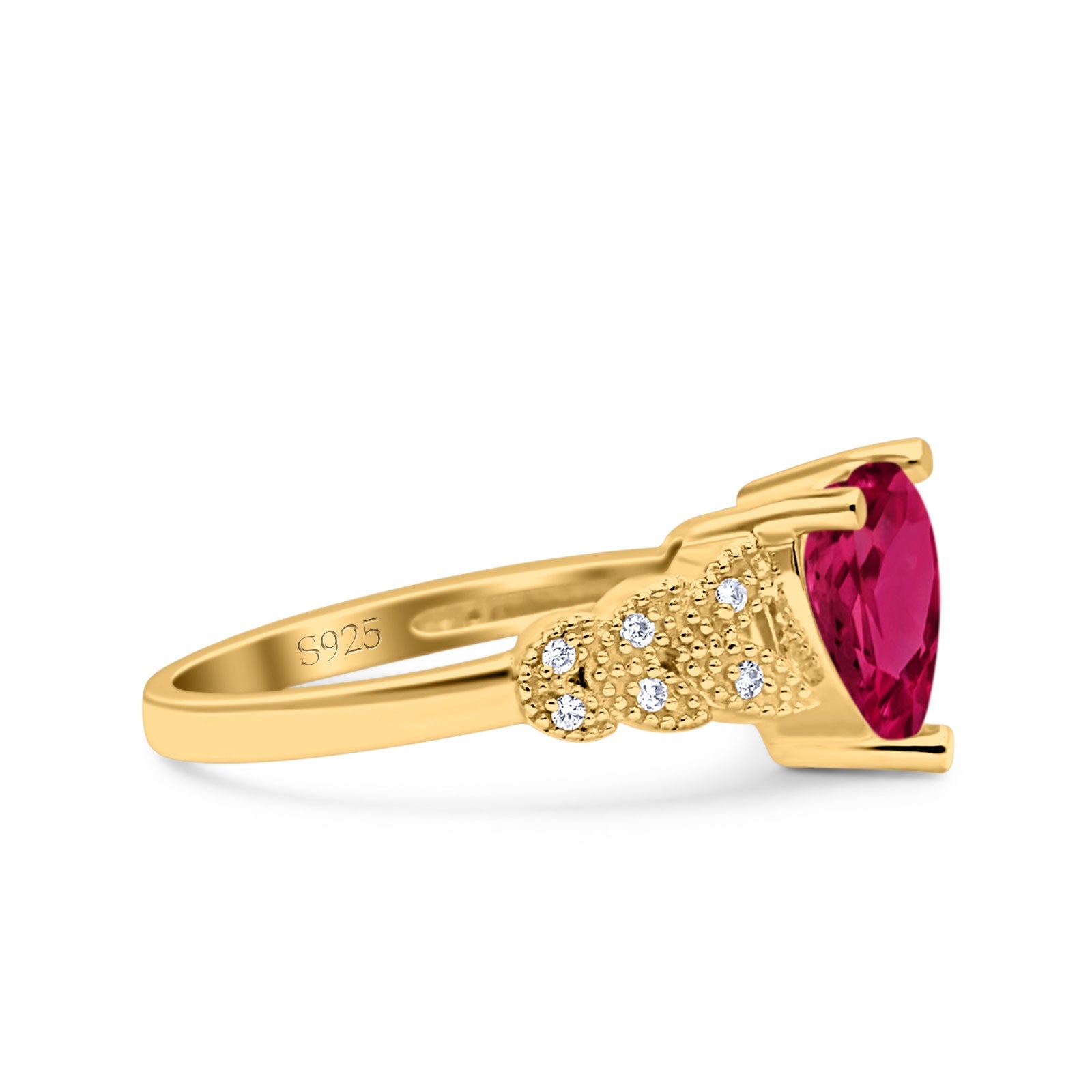 Art Deco Heart Wedding Engagement Bridal Ring Simulated Cubic Zirconia 925 Sterling Silver