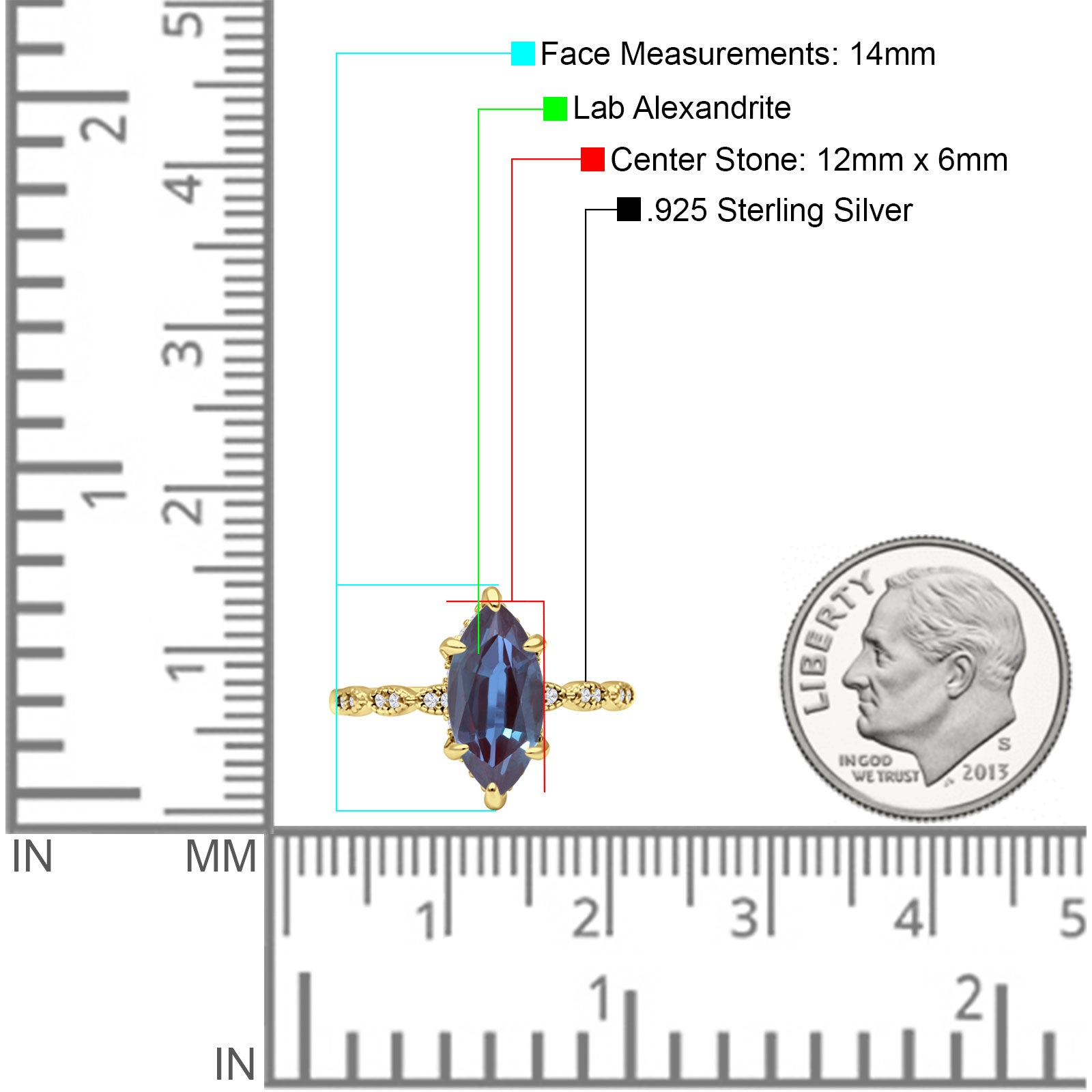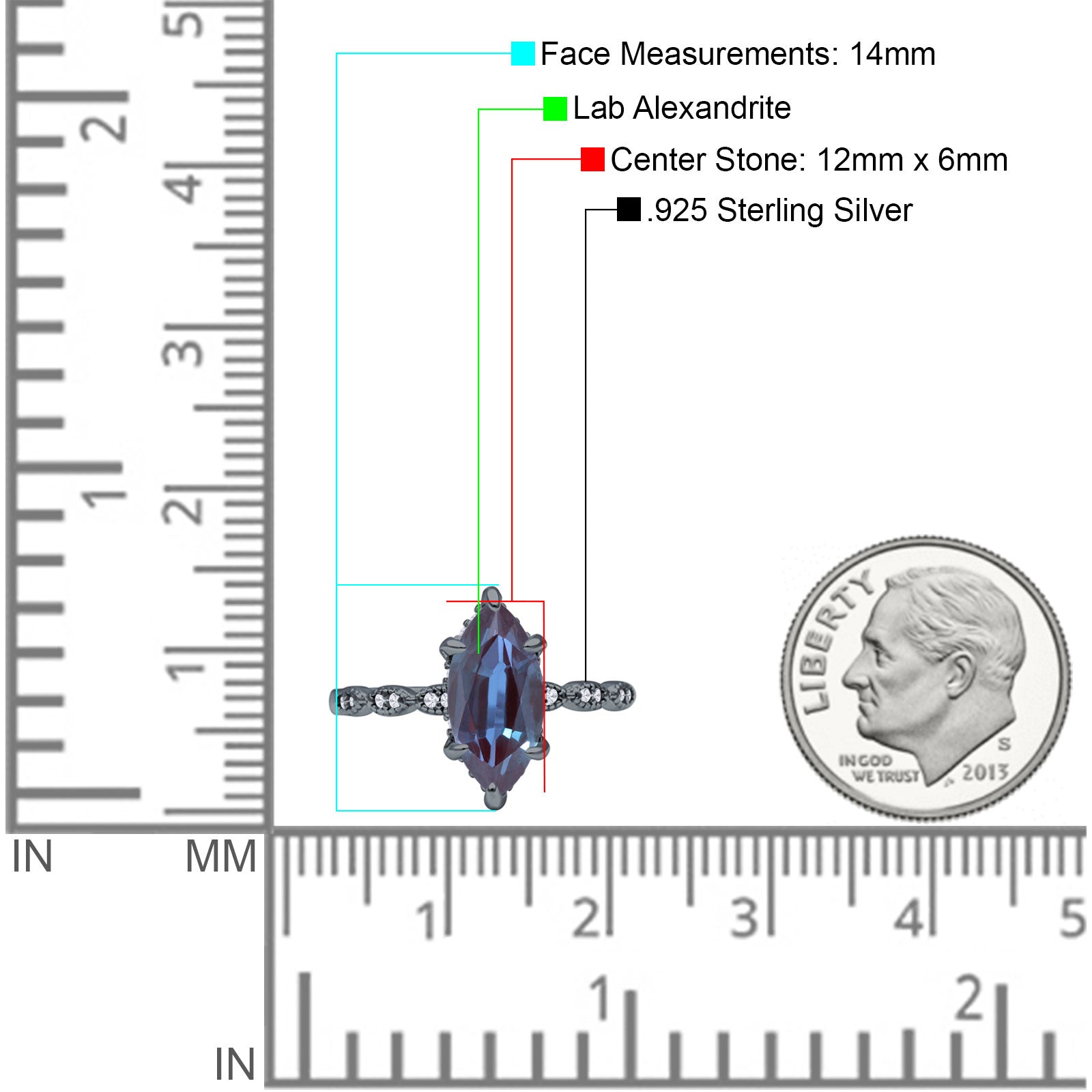 Center Stone Measurements: 12mmX6mm.