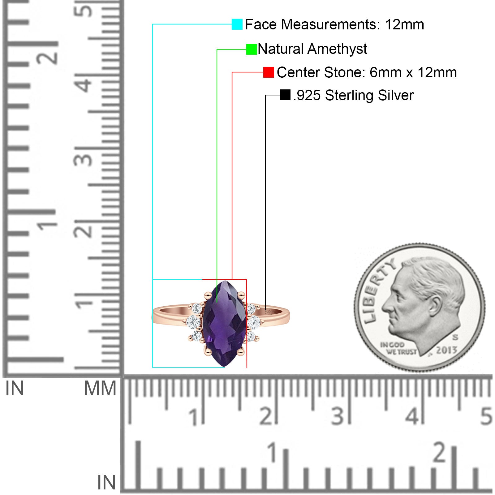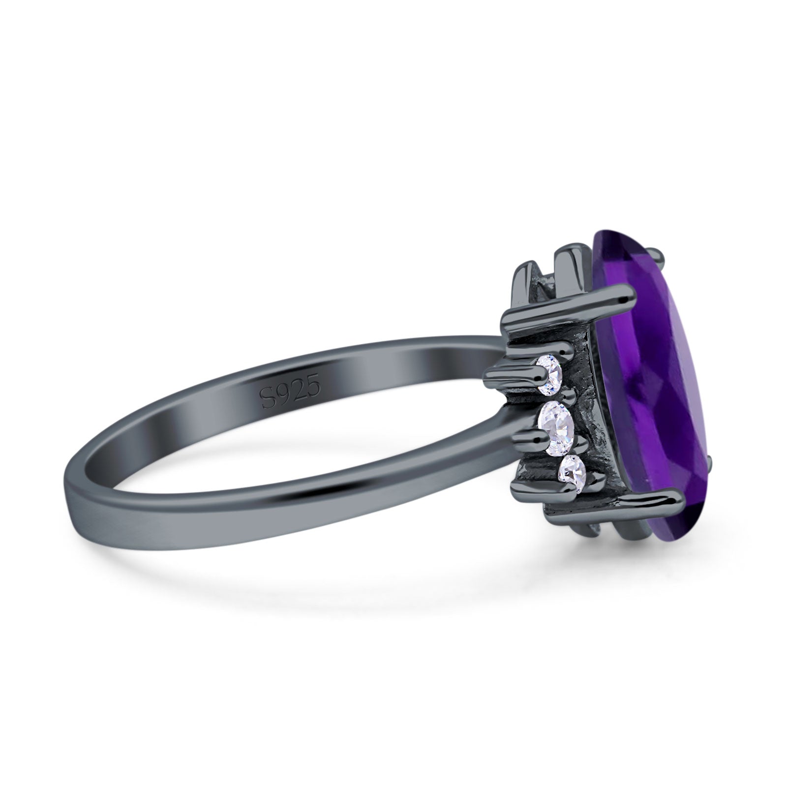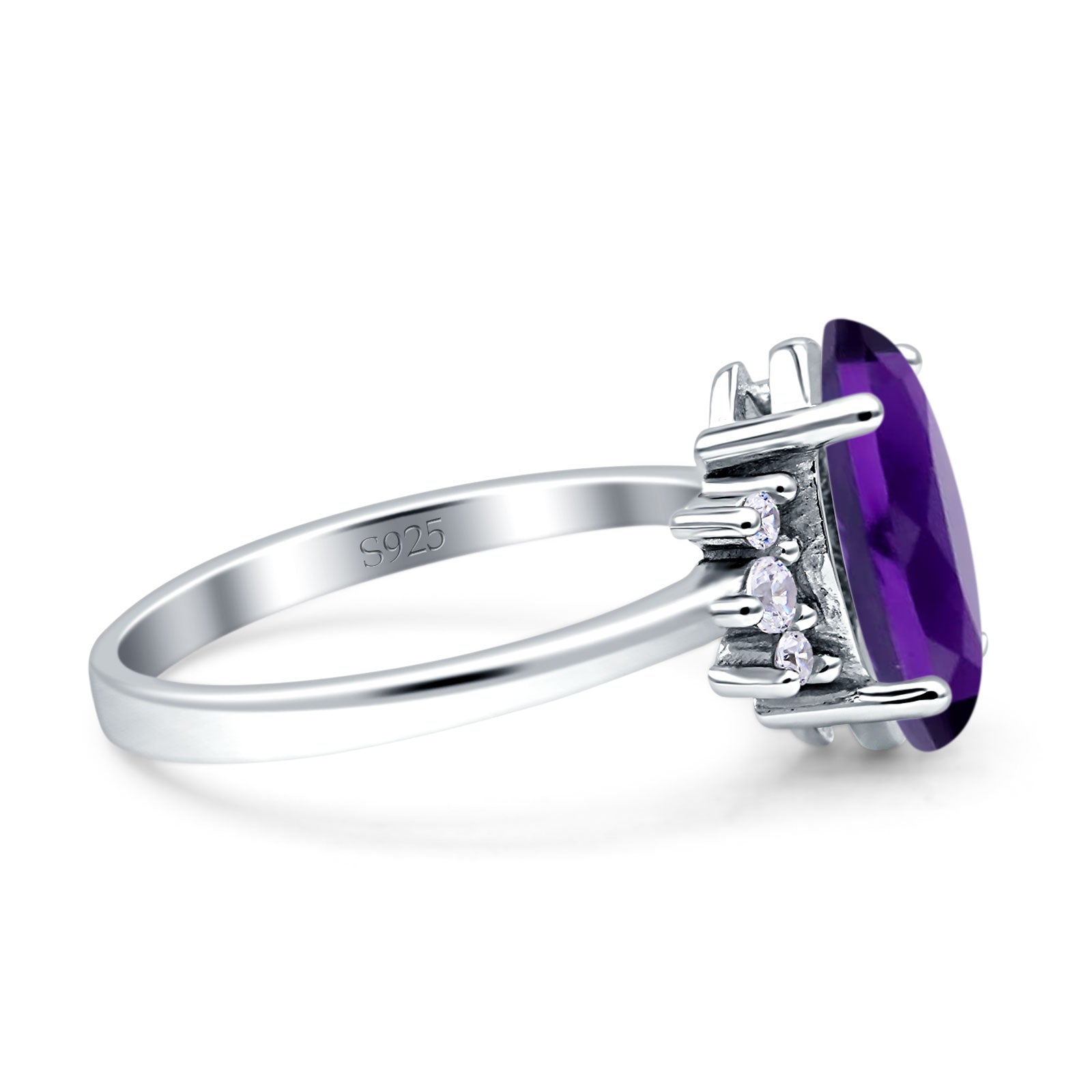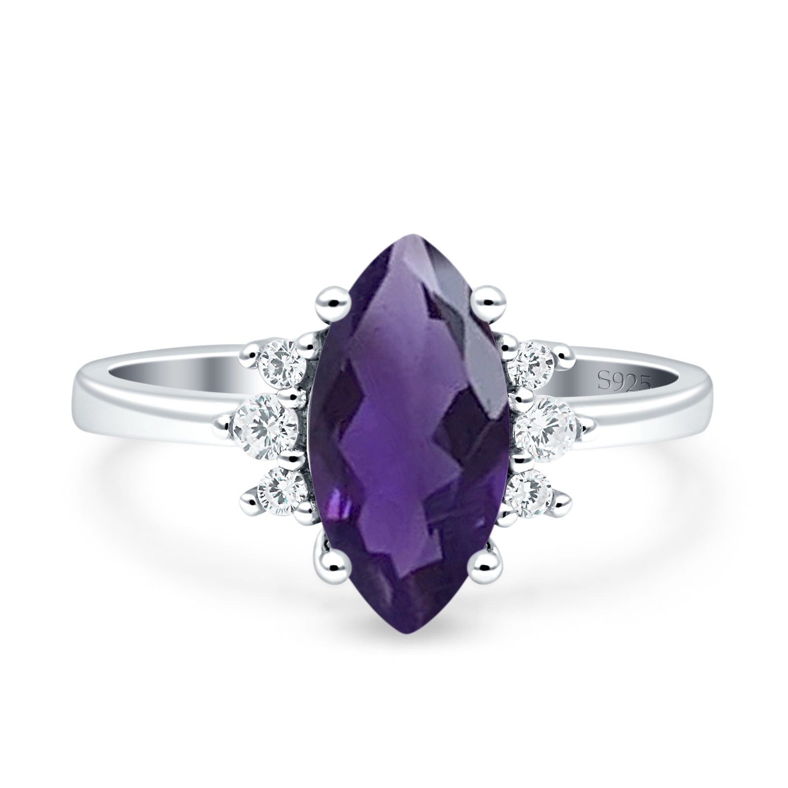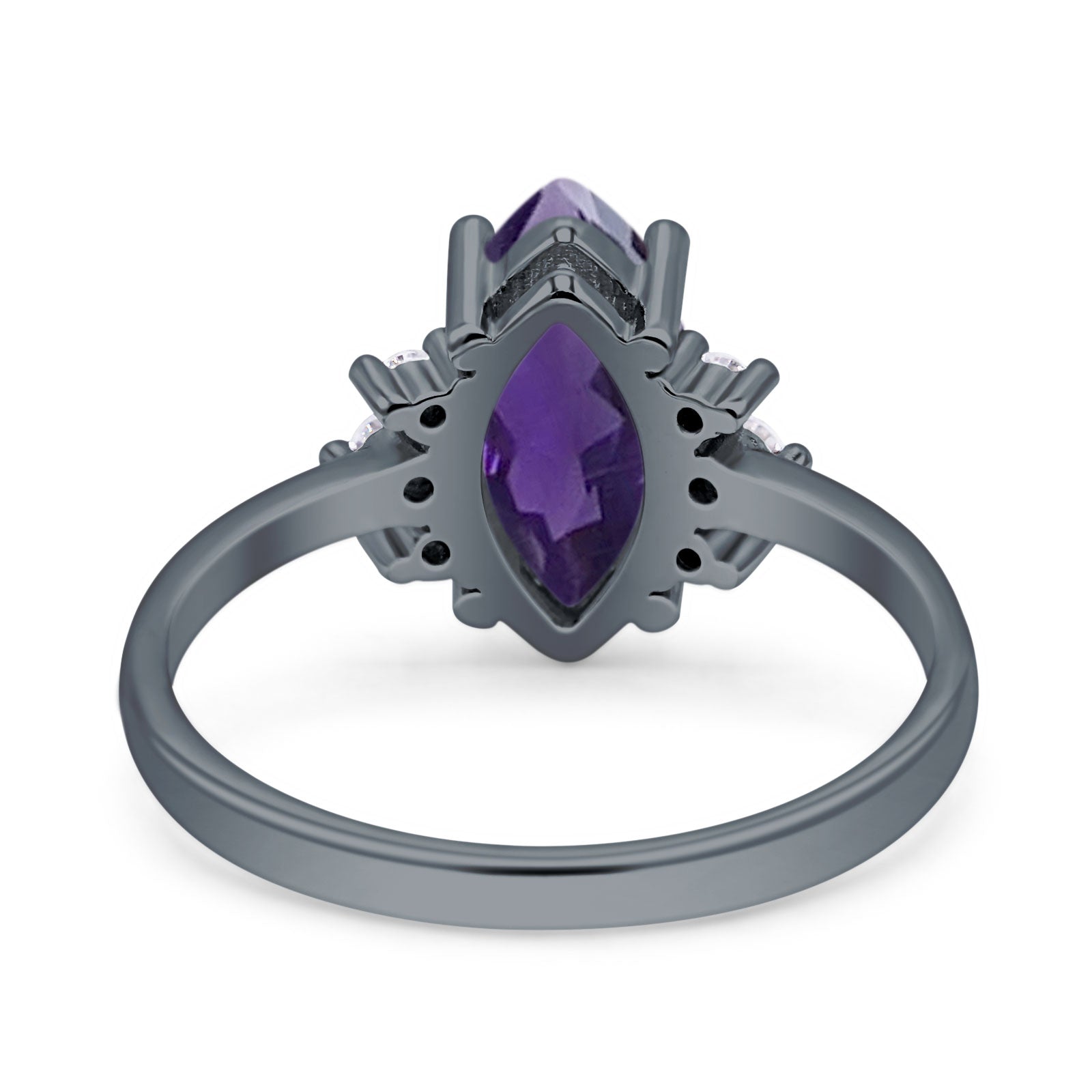 Art Deco Marquise Natural Amethyst Tapered Cubic Zirconia Ring 925 Sterling Silver