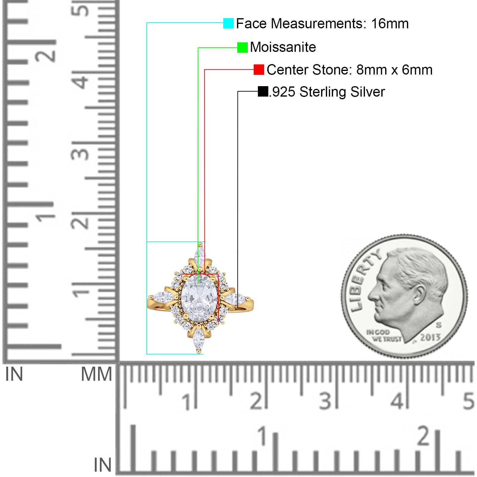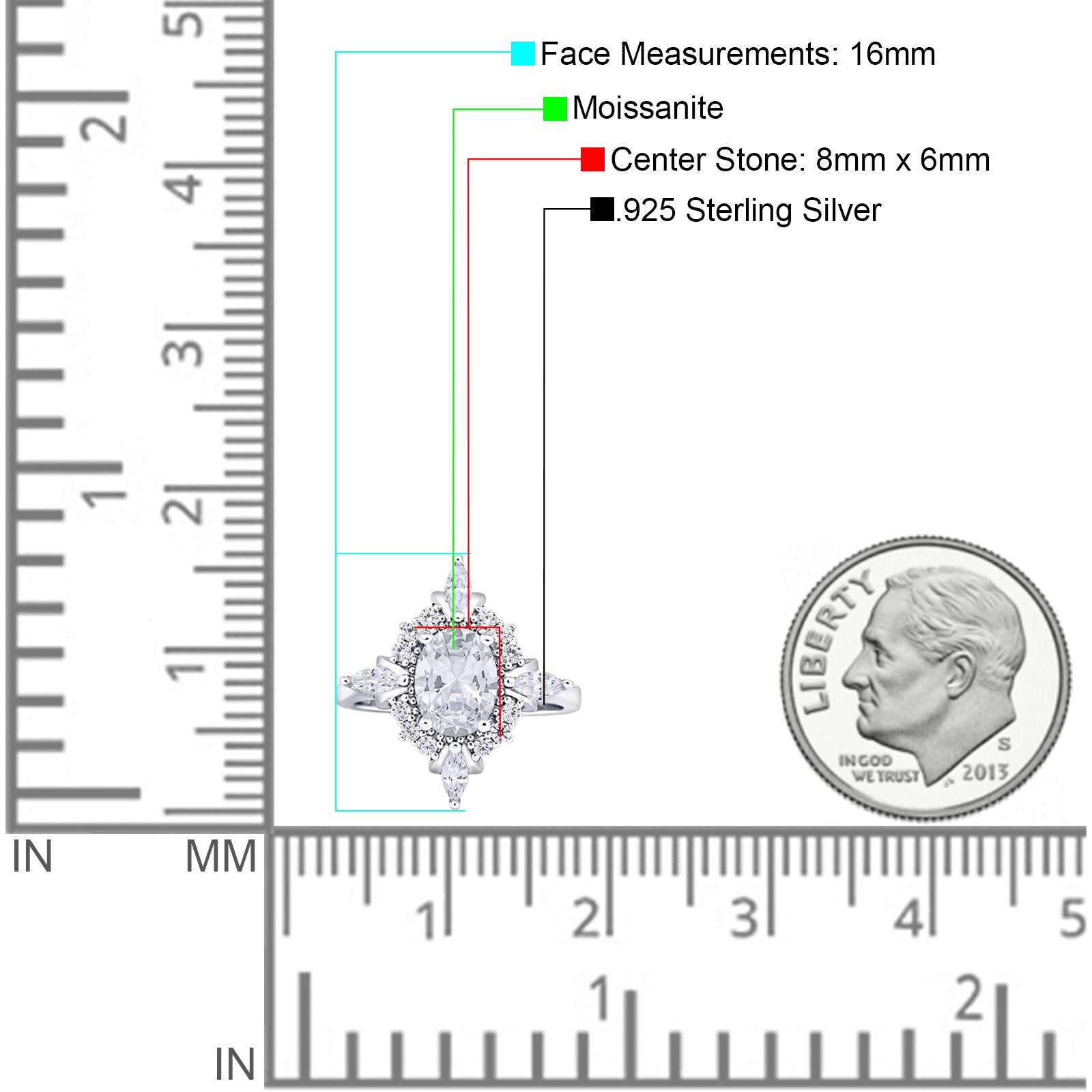 Center Stone Measurements: 8mmx6mm.